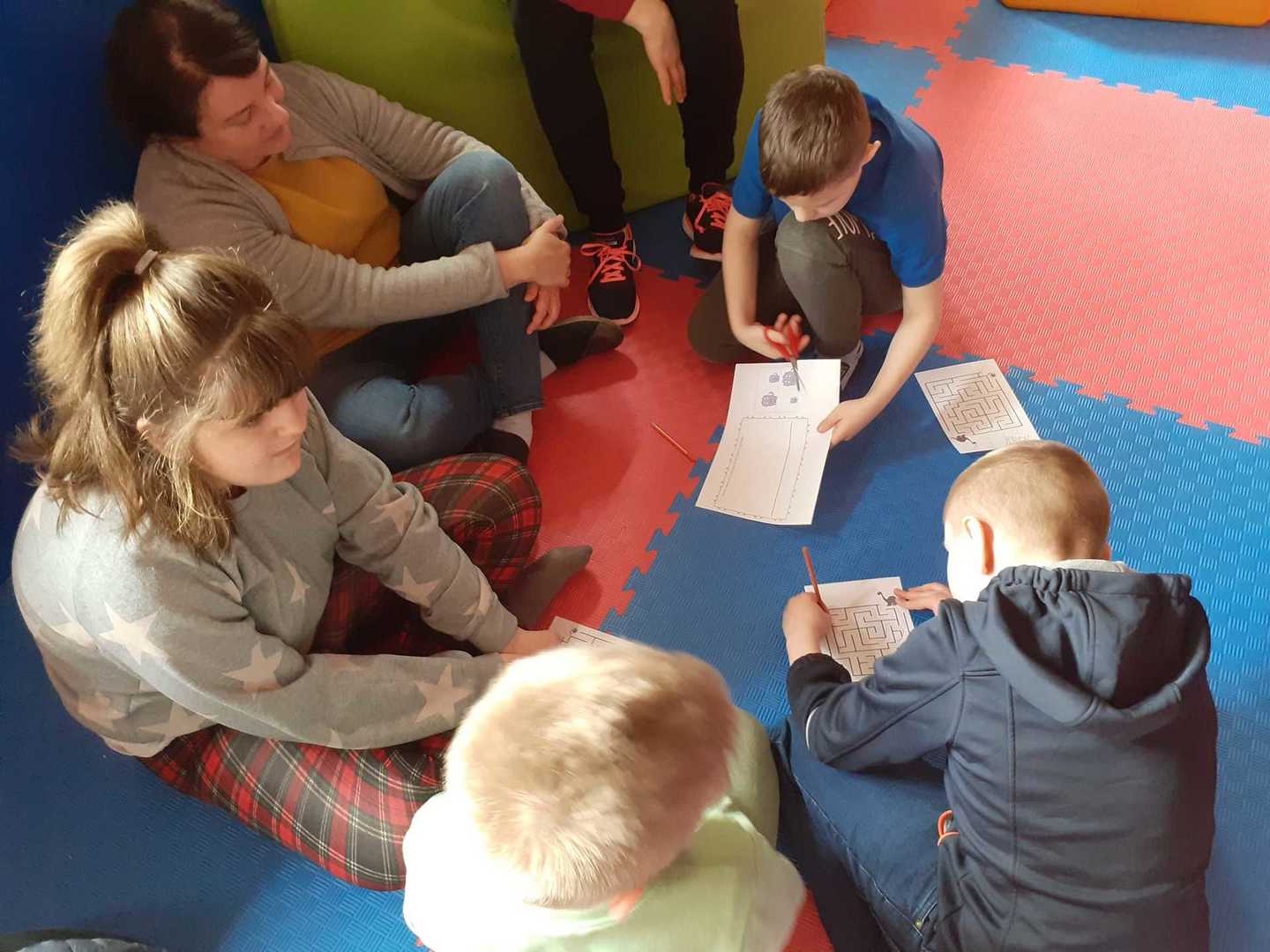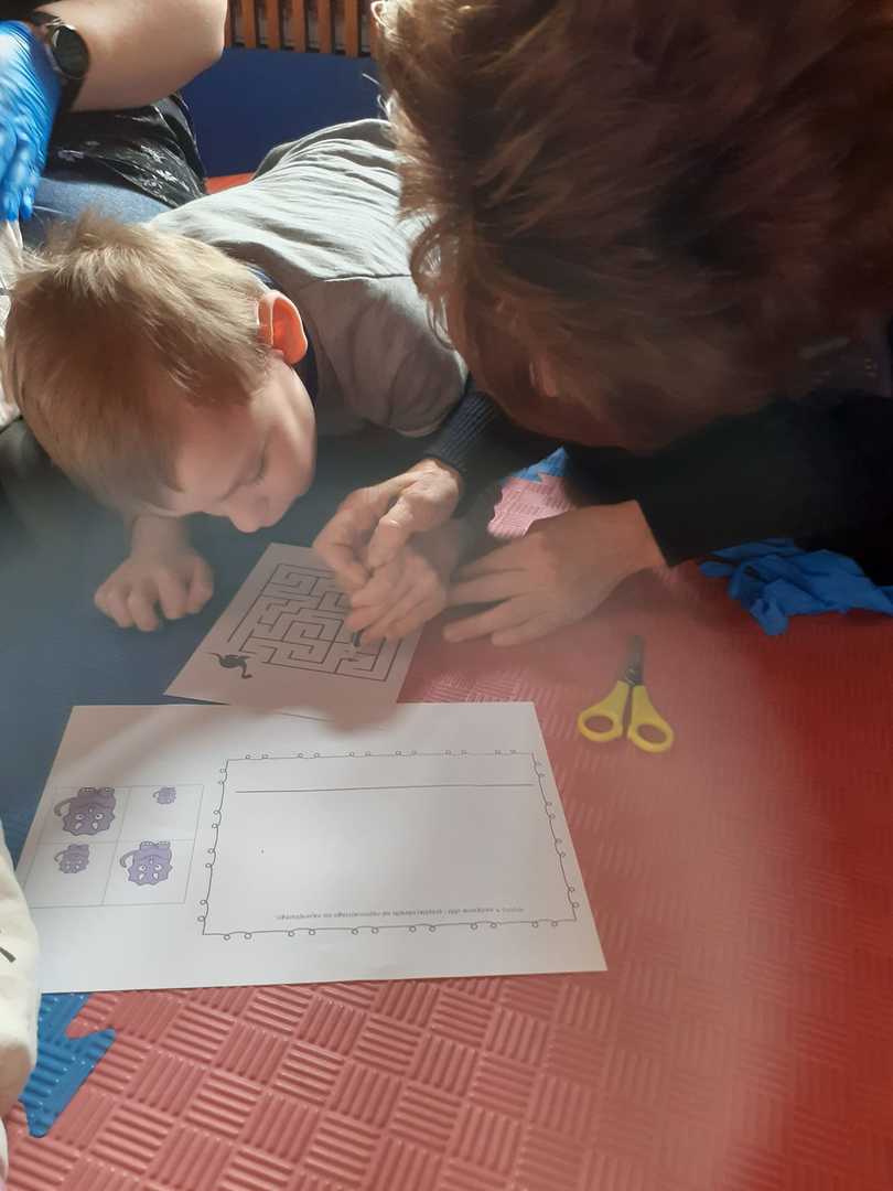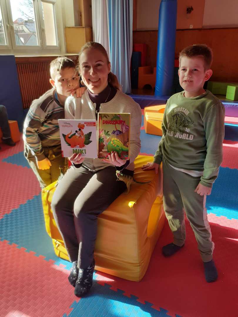Zajęcia z cyklu "Bajkoterapia" cieszyły się dzisiaj powodzeniem, ponieważ motywem przewodnim były dinozaury. Chcieliśmy w ten sposób uczcić Światowy Dzień Dinozaura, który wypada 26 lutego. Po wysłuchaniu bajek o przygodach dinozaurów na uczestników czekały dodatkowe zadania: labirynt, wycinanka oraz zabawa. Wszyscy poradzili sobie świetnie!