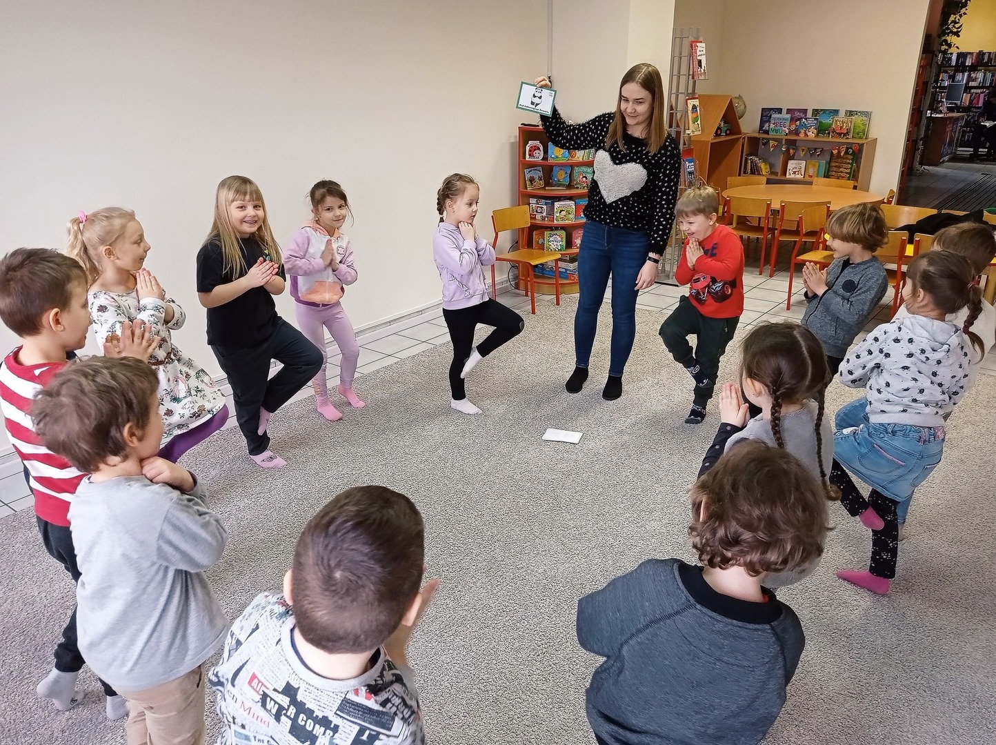 Dziś obchodzimy Międzynarodowy Dzień Pandy. Z tej okazji przedszkolaki wysłuchały opowiadania "Śpij dobrze, pando" Amandy Wood, z którego dowiedziały się co jest przysmakiem tego sympatycznego zwierzaka. Oczywiście nie mogło zabraknąć wspólnej zabawy - dzieci wzięły udział w wyzwaniu pn. "Kung Fu Panda", podczas którego musiały zaprezentować różne style np. "Styl gilgotania chmurki", "Styl tanecznej baletnicy", "Styl szalonej rozgwiazdy" itp.