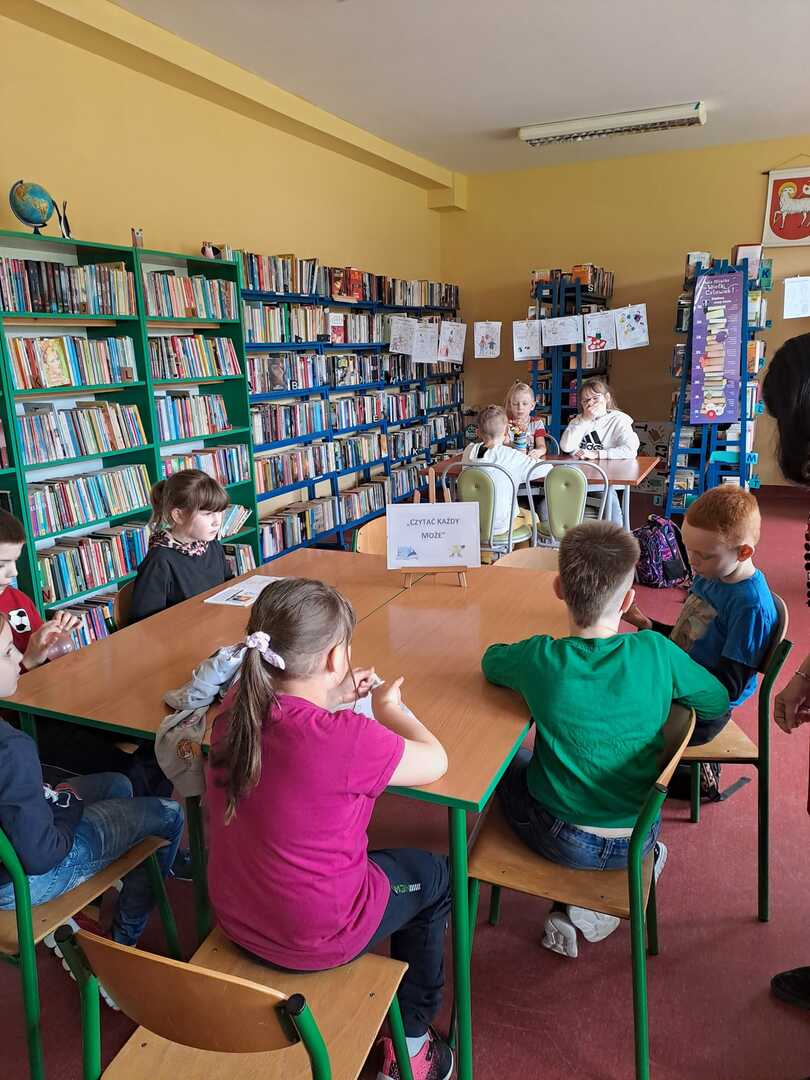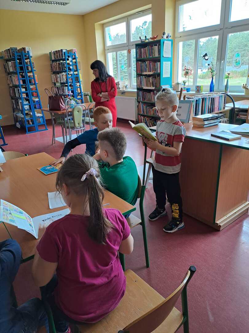 Podczas dzisiejszych zajęć z cyklu,, czytać każdy może "" uczniowie z Dargini wysłuchali książki Joanny Olech ,,Tytus w cyrku"" czytanej przez Filipa. Bibliotekarka poleciła do przeczytania nowe książki oraz rozdała zakładki do książek wykonane przez czytelników.