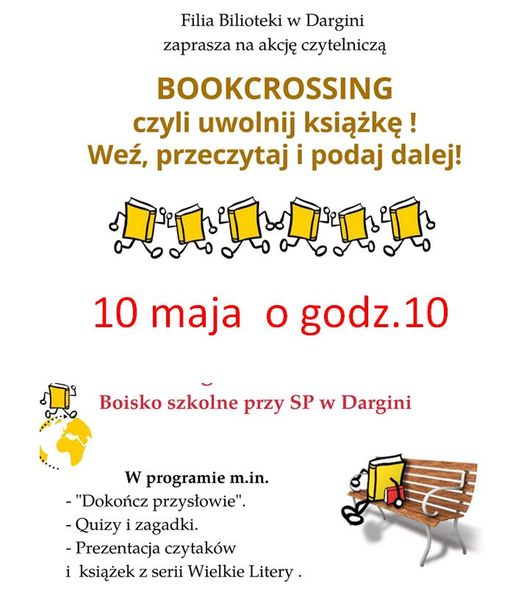 W dniu dzisiejszym w Dargini odbyła się akcją czytelnicy Bookcrossing. Uwolnij książki - weź, przeczytaj podaj dalej. Młodzi czytelnicy wraz z panem Łukaszem Firem mieli okazję zapoznać się z twórczością Aleksandra Fredry. Chociaż Fredro urodził się 230 lat temu morały jego utworów są aktualne do dnia dzisiejszego. Następnie uczestnicy zajęć rozwiązali krzyżówki o bibliotece.