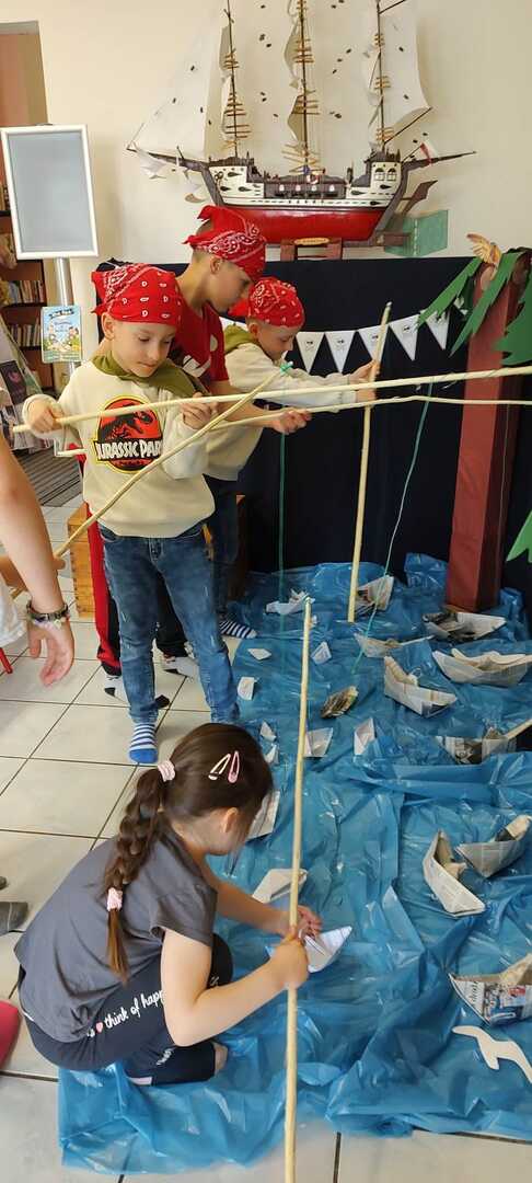 Obchody Dnia Dziecka z Piratami w Bibliotece już za nami, Ahoj! Atrakcji było mnóstwo, od tańców, zabaw po zawody w łowieniu statków i warsztaty z tworzenia czapek pirackich. Na deser kamraci zjedli morską galaretkę i owoce, za które dziękujemy Radnej Rady Miejskiej w Bobolicach Agnieszce Kurpiewskiej. Do zobaczenia na kolejnej zabawie w Bibliotece!