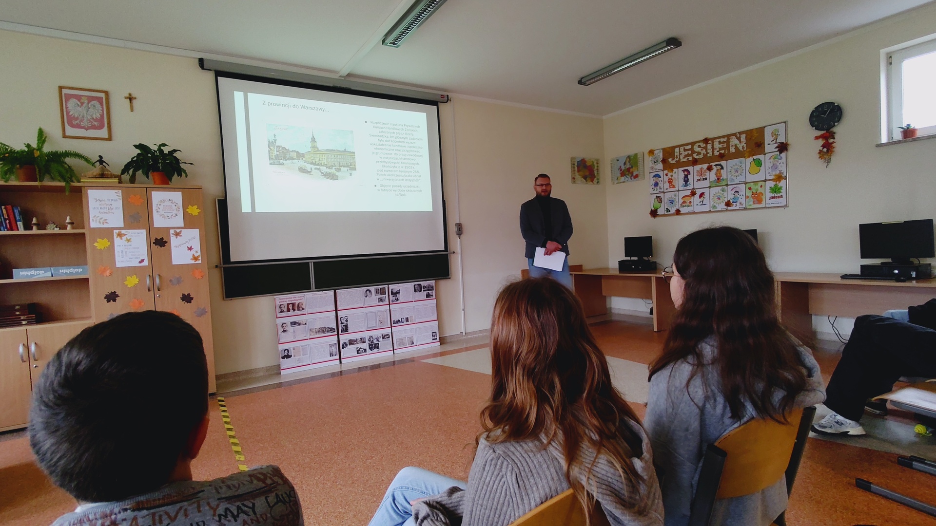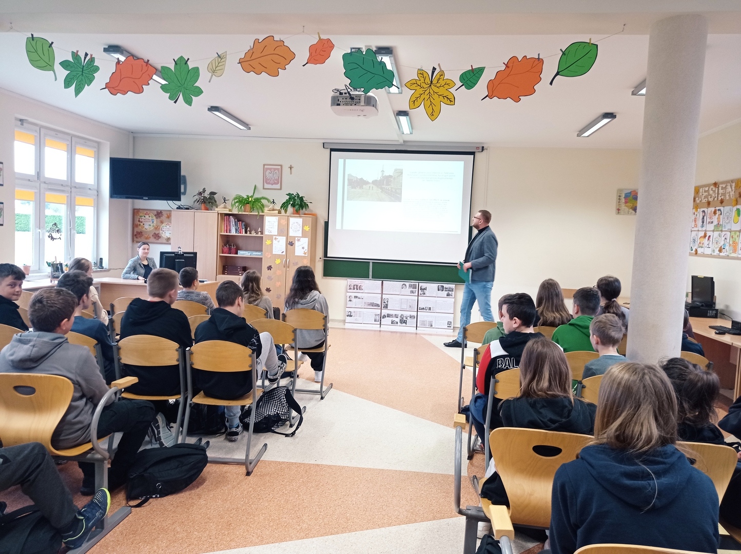 27 października 2023 r. uczniowie klas 7 ze Szkoły Podstawowej im. Henryka Sienkiewiczaw Bobolicach wzięli udział w wykładzie pn.”Aleksandra Piłsudska- krótka historia niezwykłej kobiety”, który wygłosił Pan Krzysztof Jedynak- pracownik Muzeum w Koszalinie. Pan Krzysztof przybliżył uczestnikom spotkania postać Aleksandry oraz zdradził wiele faktów i ciekawostek z jej życia. Słuchacze mieli również możliwość wziąć udział w mini quizie, z którym poradzili sobie znakomicie. Pani Monika Żemojtel Dyrektor Miejsko-Gminnej Biblioteki Publicznej w Bobolicach zaprosiła młodzież do udziału w grze terenowej, która odbędzie się już 11 listopada w ramach realizacji projektu pn. „Towarzyszka Ola – matka polskiej niepodległości” dofinansowanego ze środków Fundacji Orlen z programu „Moje miejsce na Ziemi”.