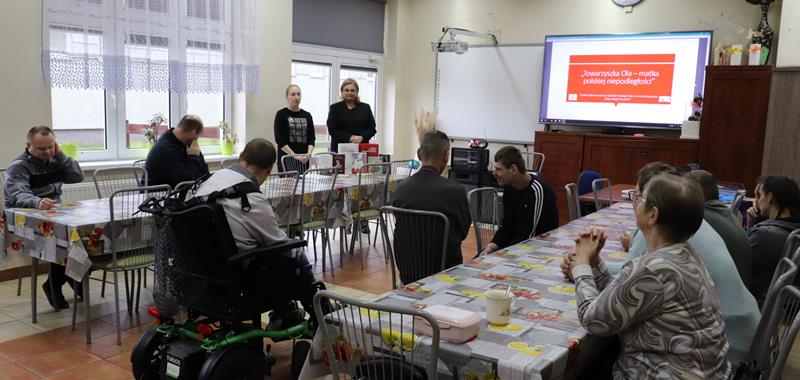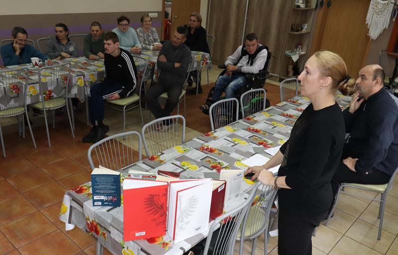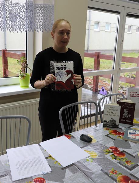 Kolejna lekcja biblioteczna o historii Aleksandry Piłsudskiej i drodze Polski do odzyskania Niepodległości odbyła się 31.10.2023 r. w Środowiskowym Domu Samopomocy "Odnowa". Domownikom przedstawione zostały najważniejsze fakty oraz ciekawostki z życia Patronki Roku 2023. Ponadto, prezentację wzbogaciła wystawka książek o tematyce niepodległościowej, które dostępne są w bibliotece.