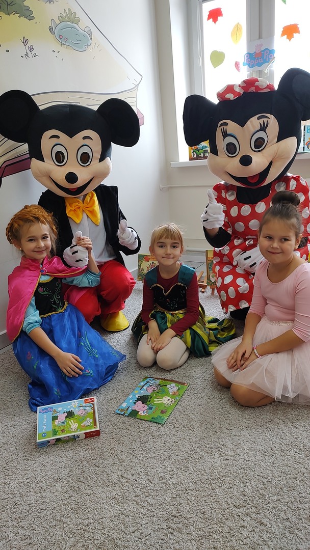 Dzień Postaci Bajkowych zgromadził dzisiaj w Bibliotece wielu fanów bajek tych nowoczesnych i klasycznych. Dzieci rozwiązywały liczne zadania, bawiły się, tańczyły, układały puzzle, a na zakończenie każdy otrzymał dyplom znawcy bajek. Szczególną niespodzianką okazała się wizyta zaprzyjaźnionych bajkowych gości - Myszki Micky oraz Minnie. Dziękujemy za wspólną zabawę!