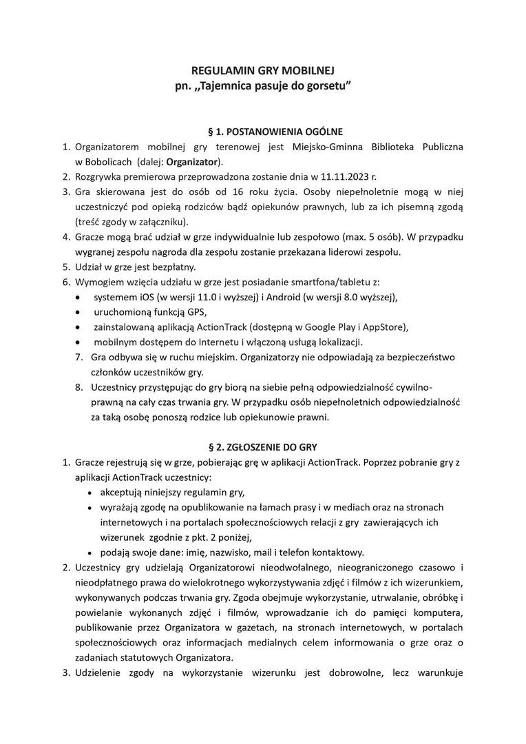 mobilnej grze terenowej pn. ,,Tajemnica pasuje do gorsetu". Tematyka gry związana jest z Patronką Roku 2023- Aleksandrą Piłsudską.