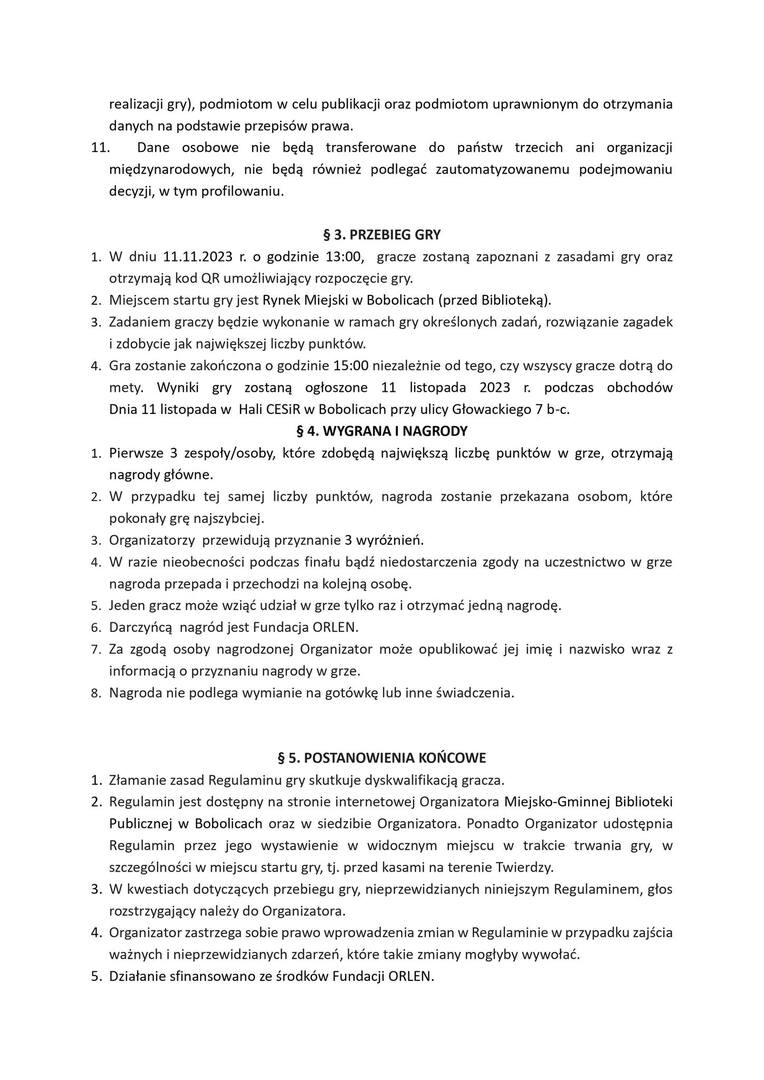 Grać będzie można indywidualnie lub zespołowo (do 5 osób). Udział jest bezpłatny. Dla najlepszych czekać będą nagrody sfinansowane ze środków Fundacji ORLEN a wszyscy uczestnicy rozgrywki premierowej otrzymają gadżety. Aby zagrać w rozgrywce należy zapoznać się z regulaminem
