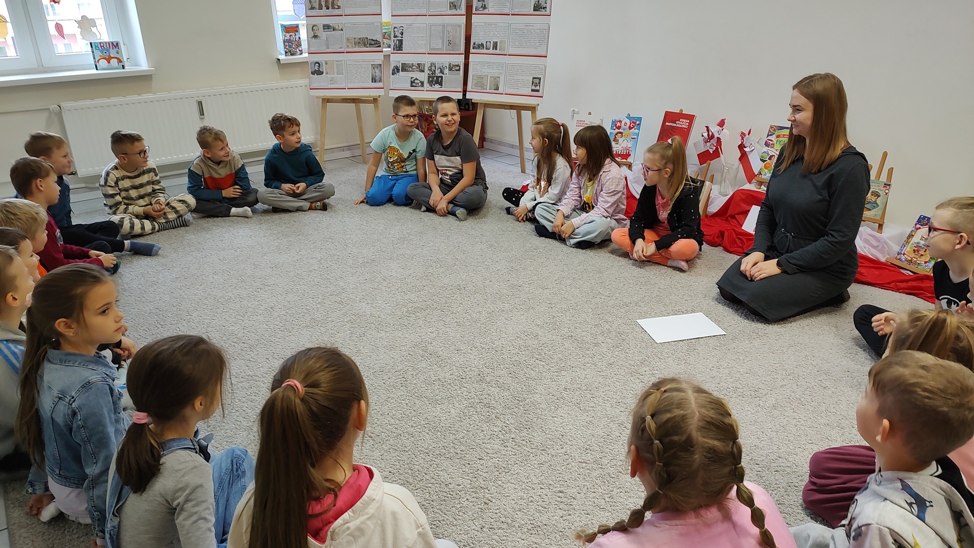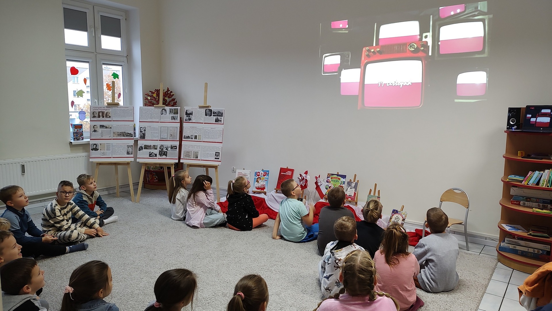 Dziś do Miejsko-Gminnej Biblioteki Publicznej w Bobolicach zawitali uczniowie klasy Ib ze Szkoły Podstawowej im. Henryka Sienkiewicza w Bobolicach, którzy wzięli udział w zajęciach edukacyjnych o odzyskaniu przez Polskę niepodległości.