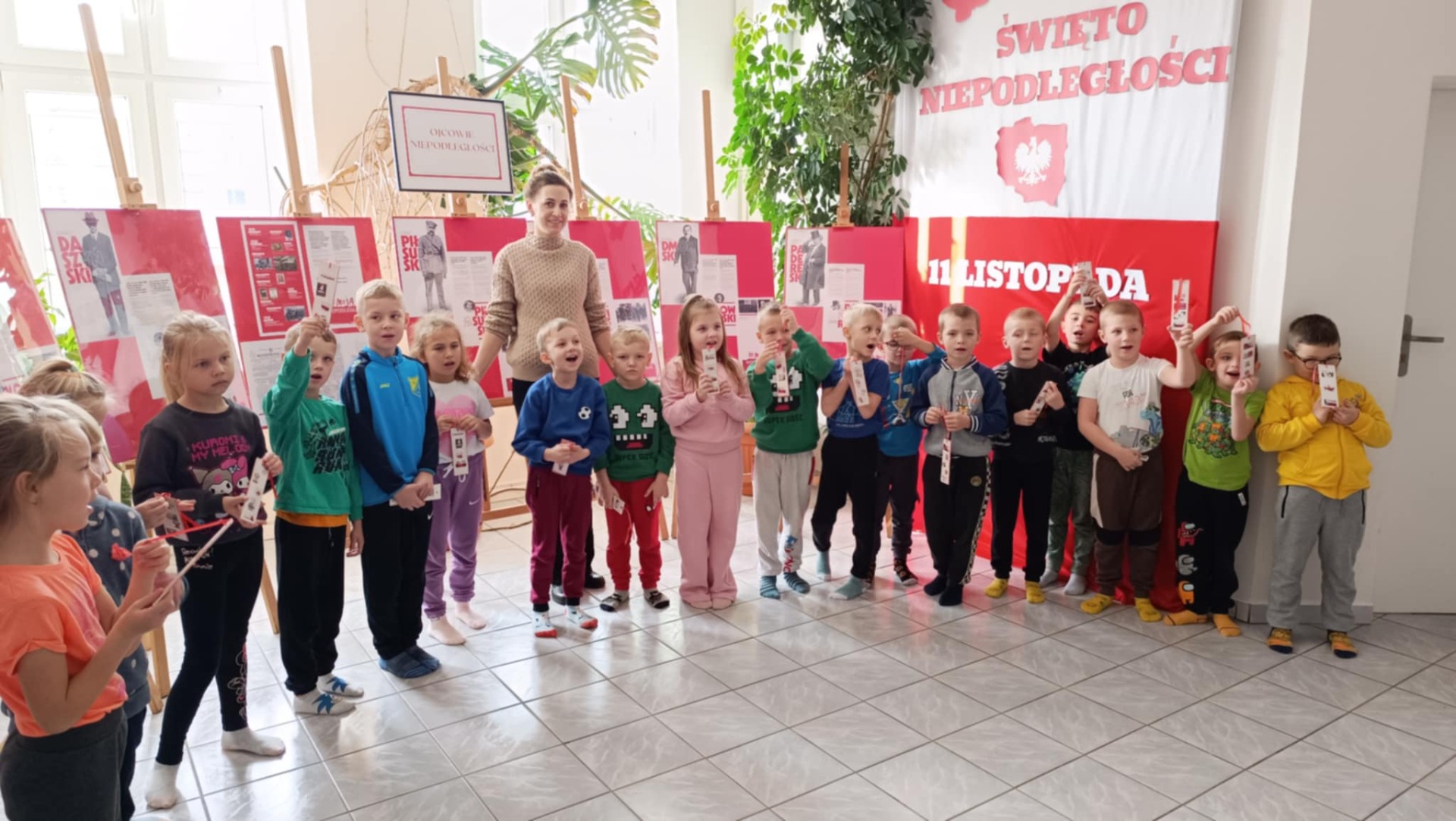 W dniu wczorajszym odwiedziły nas z Przedszkole "Leśne Skrzaty" w Bobolicach. Nawiązując do Święta Niepodległości, odbyły się zajęcia ,,Polska moja ojczyzna". Przedszkolaki wysłuchały bajki ,,Jak Polska odzyskała skrzydła?", a następnie bawiliśmy się z kartami ruchowymi, które przedstawiały symbole Polski. Dzieci świetnie sobie poradziły z testem wiedzy o Polsce oraz z zabawami muzyczno - ruchowymi. Na zakończenie obejrzały wystawę ,,Ojcowie Niepodległości"
