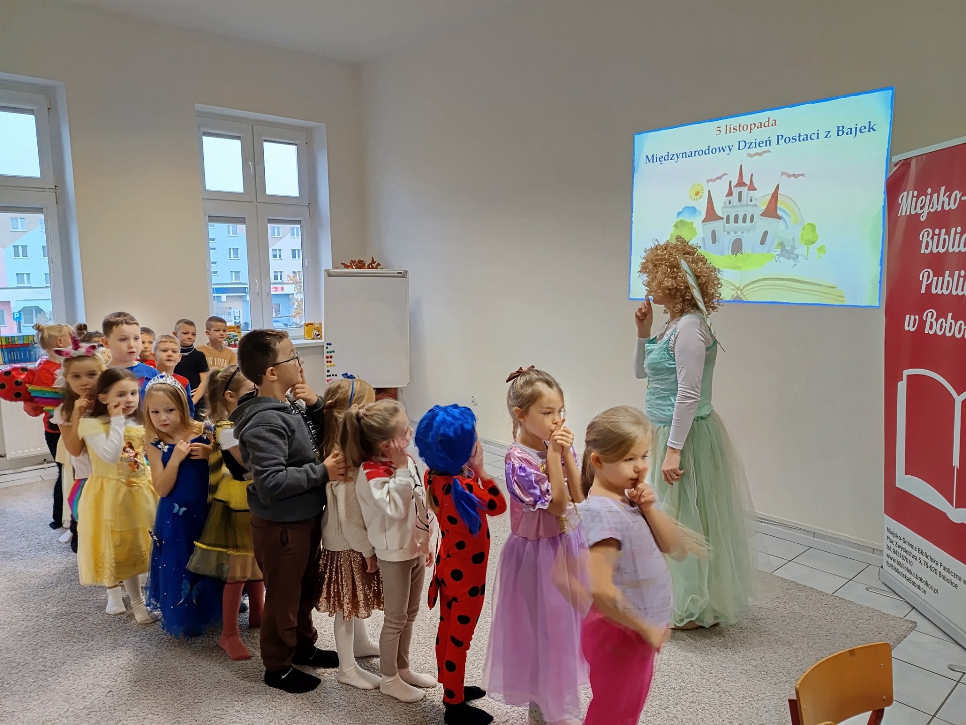 Nasza Biblioteka zamieniła się dziś w Krainę Baśni i Bajek, a to wszystko z okazji Międzynarodowego Dnia Postaci z Bajek. Odwiedziły nas dzieci z grupy "Liski"