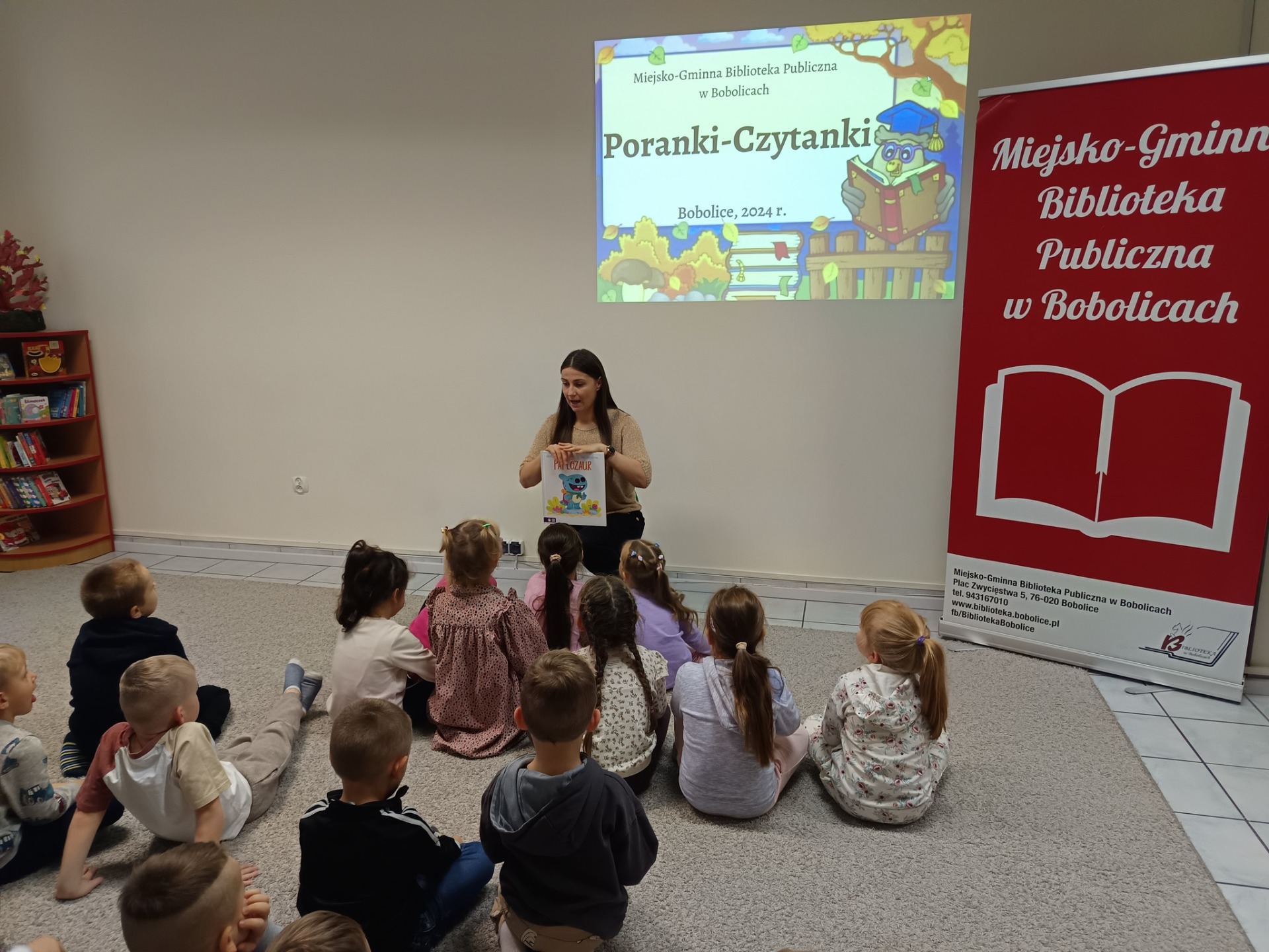 W miesiącu listopad odbyły się spotkania z przedszkolakami w ramach akcji czytelniczej pt. ''Poranki - Czytanki". Przedszkolaki wysłuchały wielu bajek, niejednokrotnie nawiazując do świąt nietypowych przypadających na dany dzień.: ,,Miki gotuje", ,,Pomoc starszym", ,,Pan Miś Chrapie", ,,Co zrobi Frania? Życzliwosć", ,,Paplozaur", ,,Przytulozaur".Każde spotkanie zakończyło się współną zabawą :-)