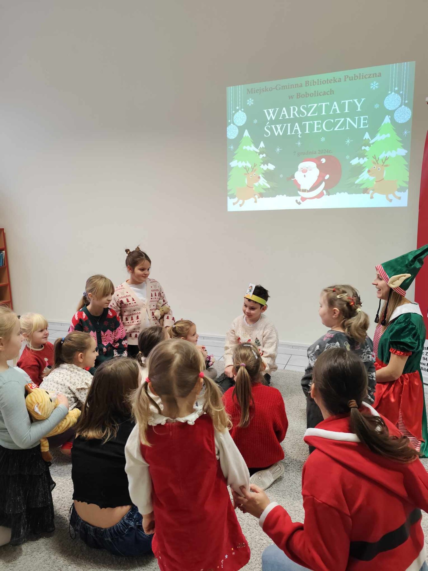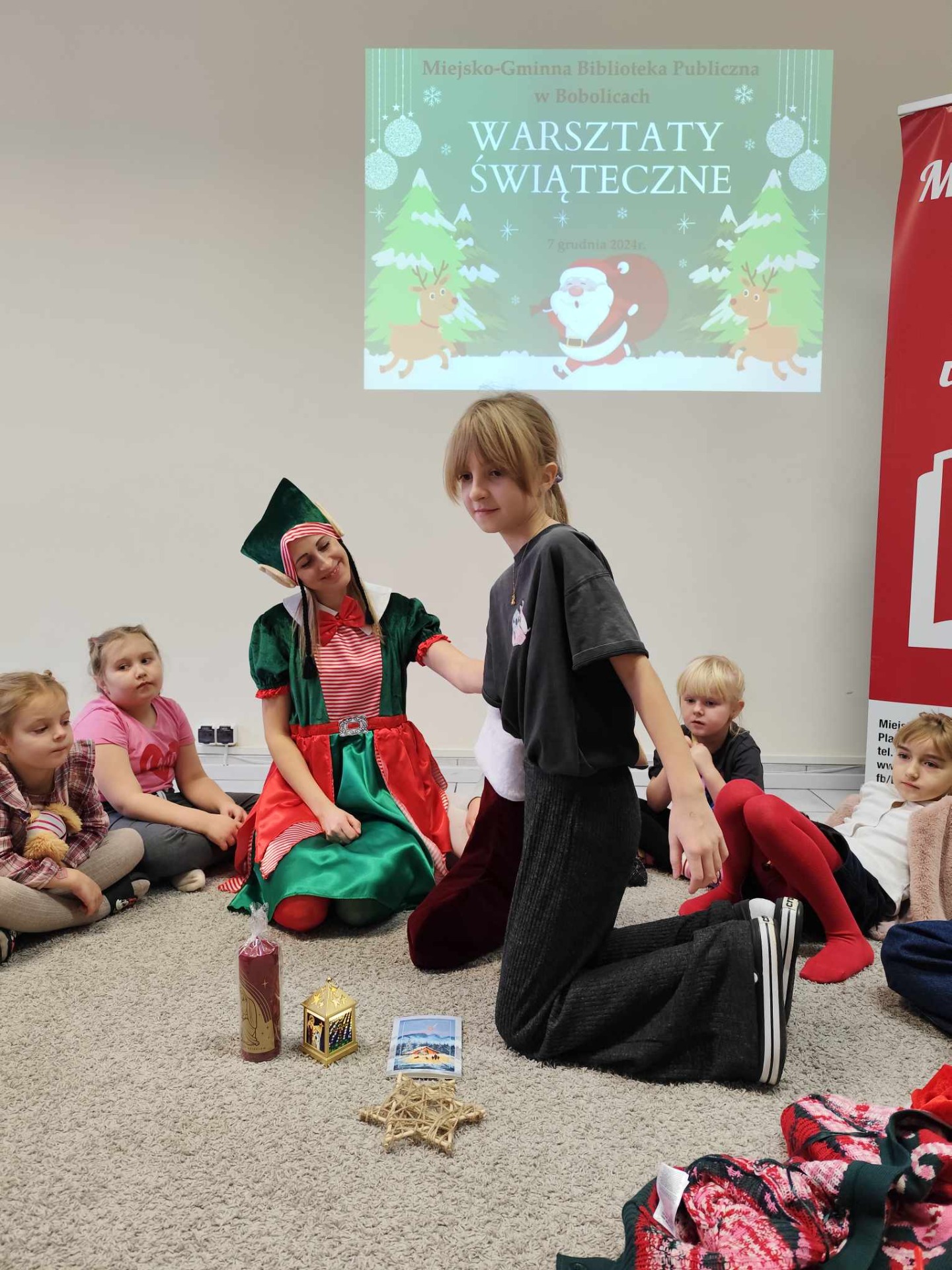 Podczas sobotnich Warsztatów Świątecznych dzieci wysłuchały bajkę ,,Reniferki ratują Święta". To pięknie zilustrowana i zabawna opowieść, która przemyca ciekawostki... bo uwaga! To nie samce, a na 100% samiczki ciągną sanie Świętego Mikołaja. A dlaczego? Żeby się dowiedzieć, to muszą Państwo sięgną po nasza książkę,