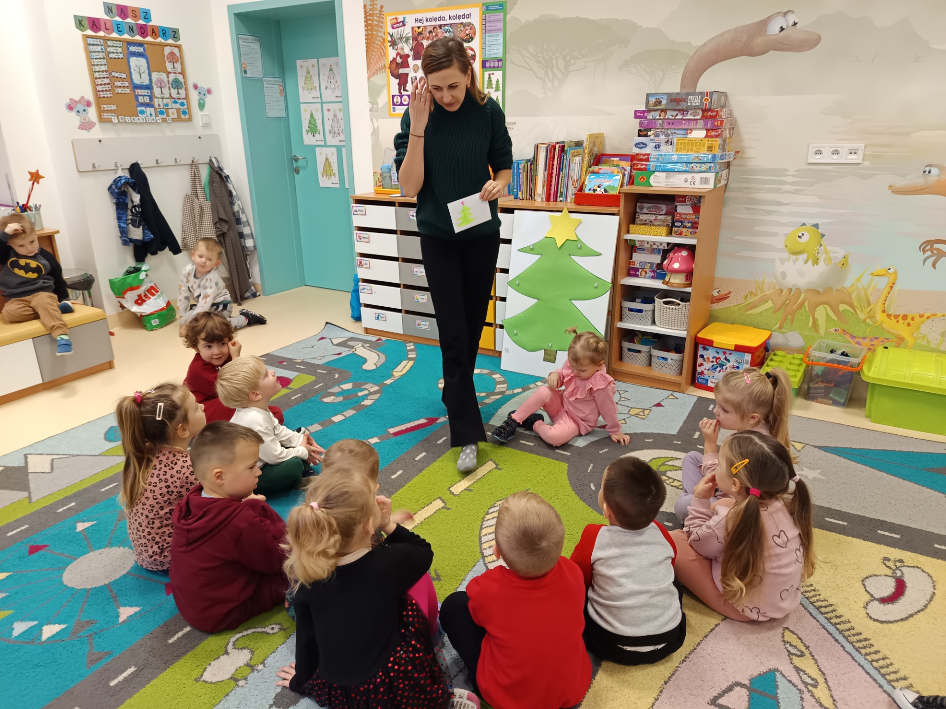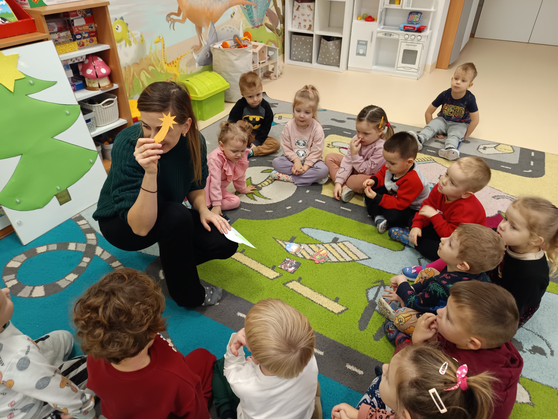 Poprzez zabawy edukacyjne, muzyczne i pracę plastyczną przedszkolaki utrwaliły tradycje Świąt Bożego Narodzenia.
