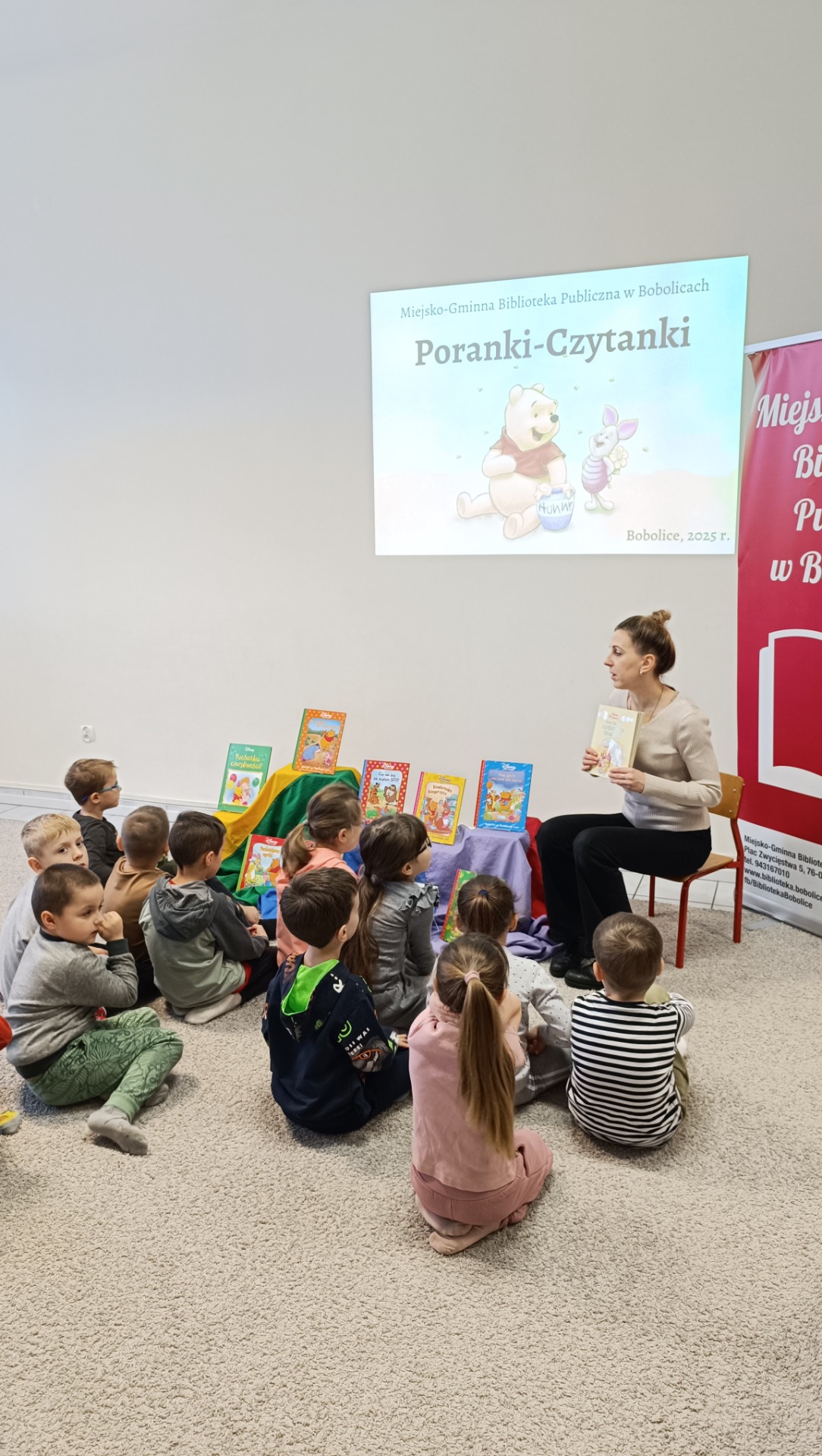W nawiązaniu do zbliżającego się Dnia Kubusia Puchatka przedszkolaki z Przedszkole "Leśne Skrzaty" w Bobolicach wysłuchały opowieść pt. ,,Długo wyczekiwane spotkanie" z książki ,,Mała księga ulubionych opowieści". To zbiór przygód najsympatyczniejszego ze wszystkich misiów