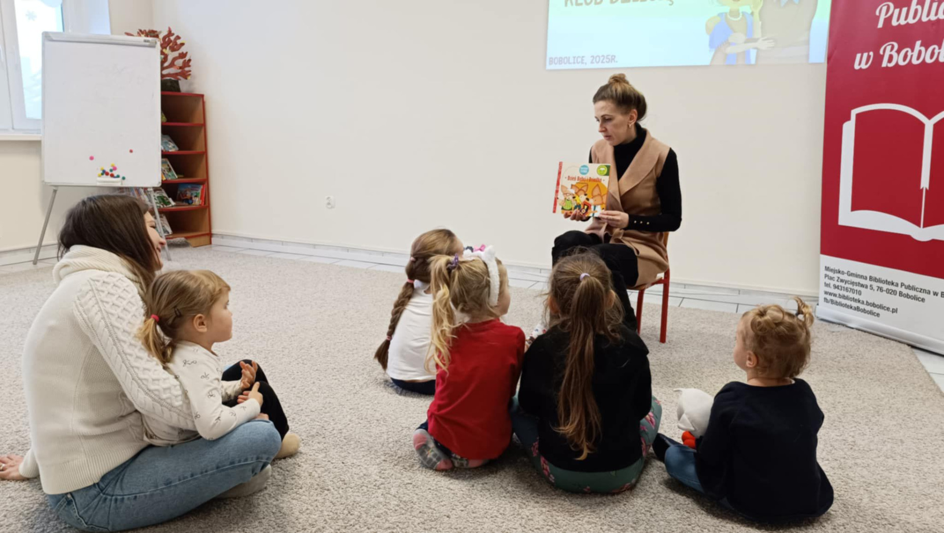 Podczas piątkowego spotkania Bibliotecznego Klubu Dziecięcego dzieci poznały kolejne przygody Liska Fenka Tym razem uczestnicy wysłuchali bajkę pt. ,,Dzień Babci i Dziadka". Styczeń to wyjątkowy miesiąc, jest szczególny, ponieważ wtedy swoje święto mają bardzo ważne osoby - Babcia i Dziadek. Fenek opowiada o tych ważnych świętach