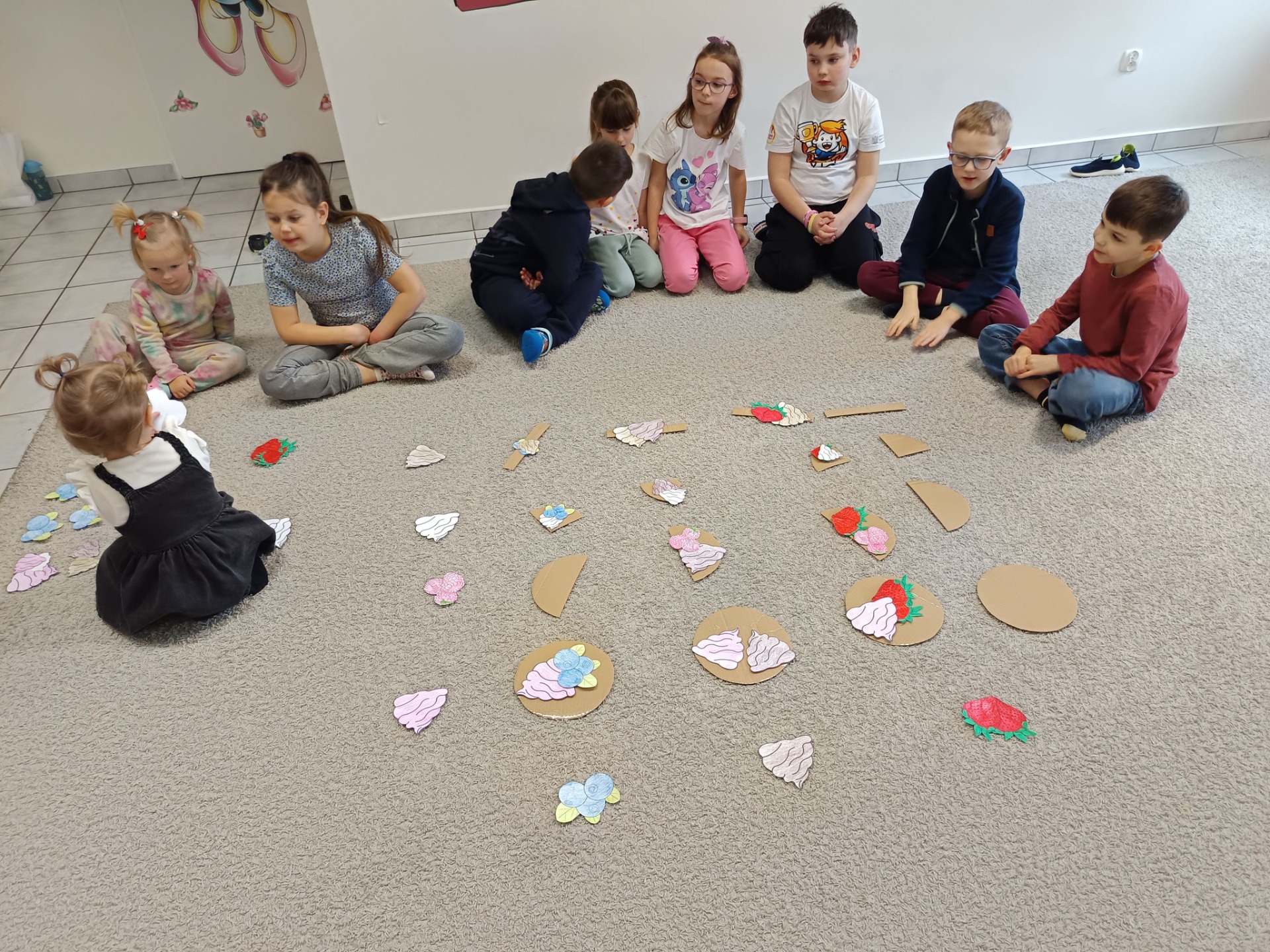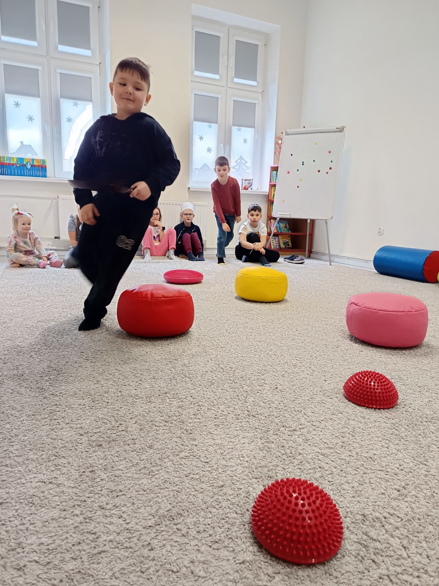 W kolejnej części spotkania dzieci brały udział w zabawach edukacyjnych i ruchowym: uczyli się podrzucać naleśniki na patelni, pokonywali tor przeszkód z naleśnikiem na patelni oraz zawijali się kocem w naleśnik. Dziękujemy za spotkanie