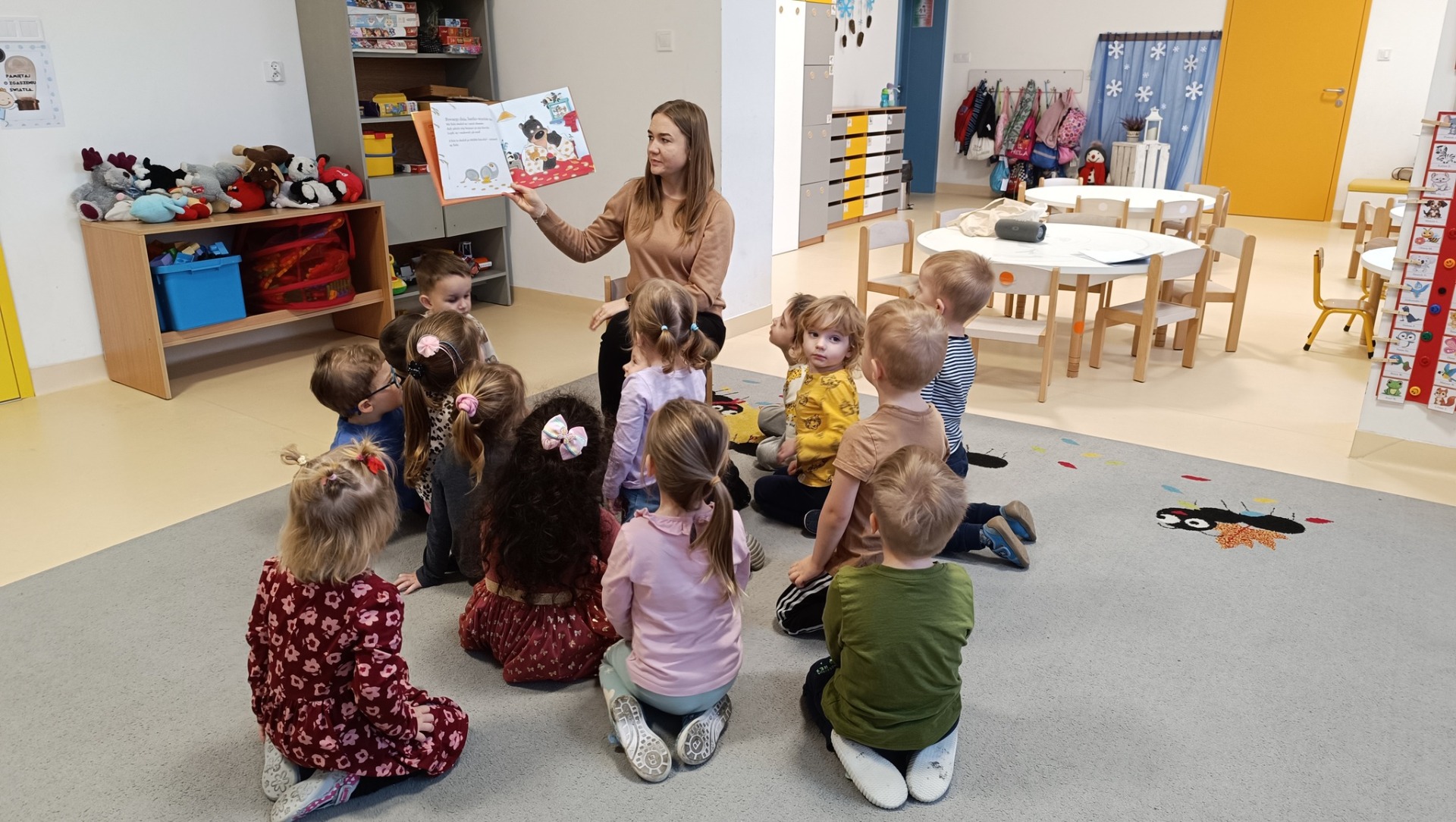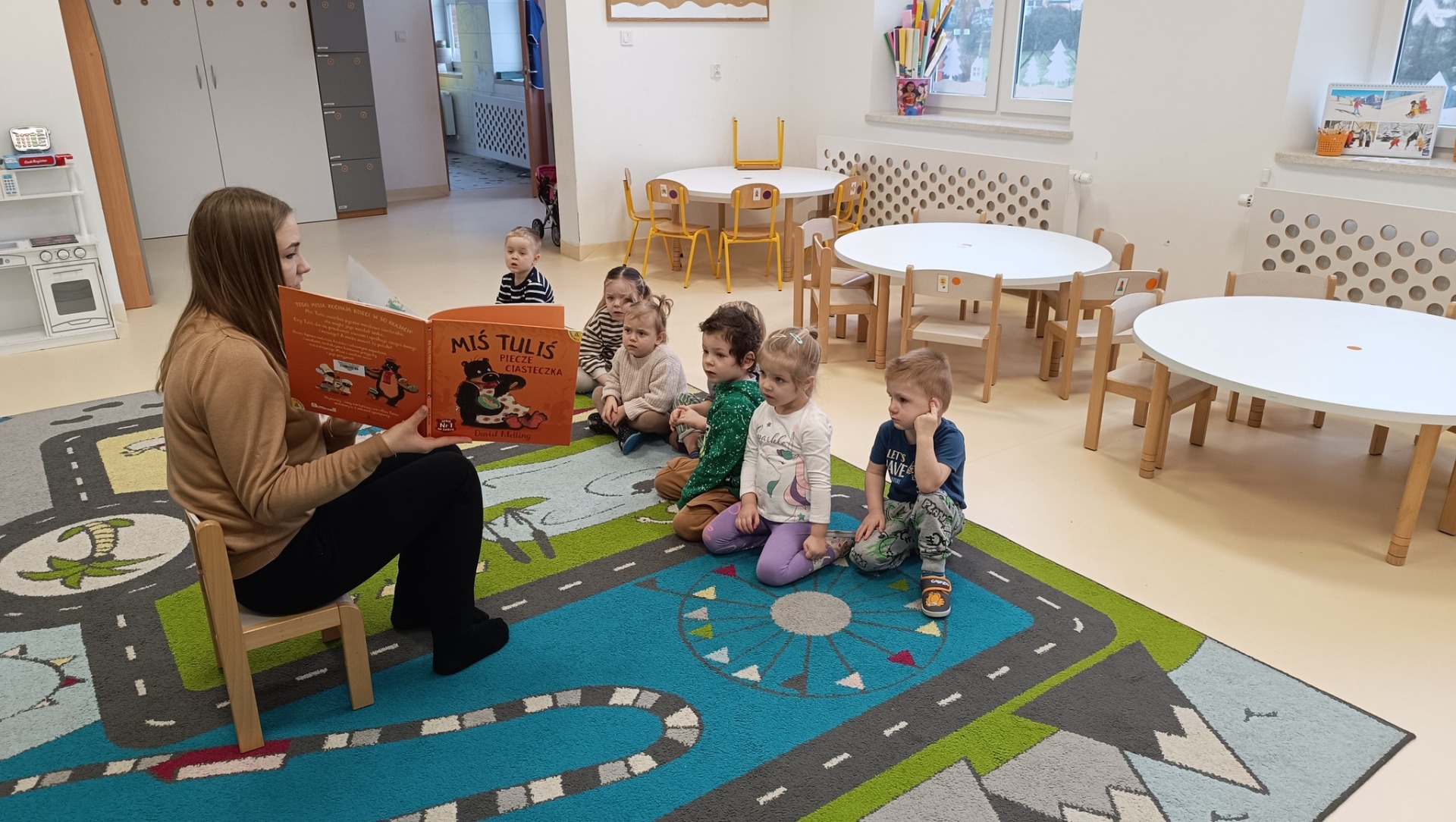 Podczas dzisiejszych zajęć czytelniczych "Sówki", "Myszki" i "Pingwinki" z Przedszkole "Leśne Skrzaty" w Bobolicach wysłuchały opowiadania pt. "Miś Tuliś piecze ciasteczka". Następnie wspólnie bawiliśmy się w rytm piosenki "A ram zam zam".