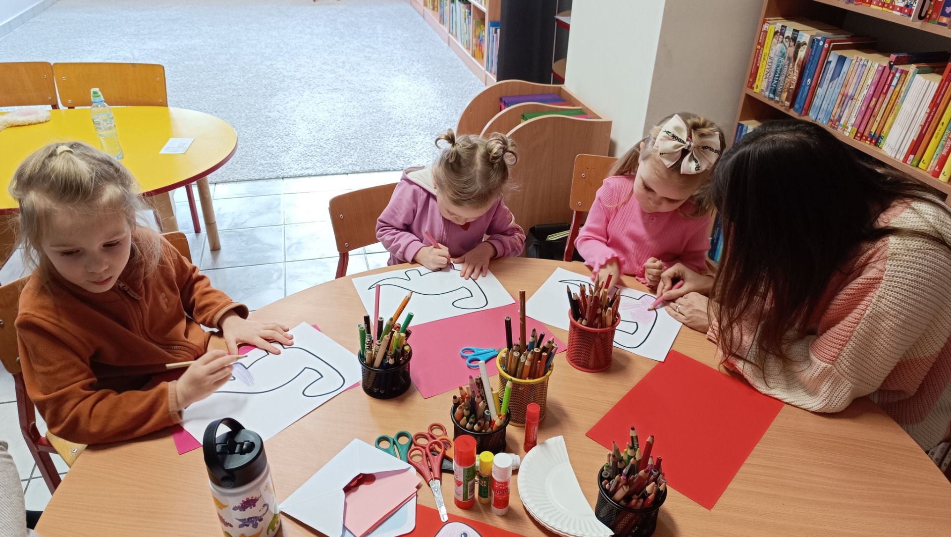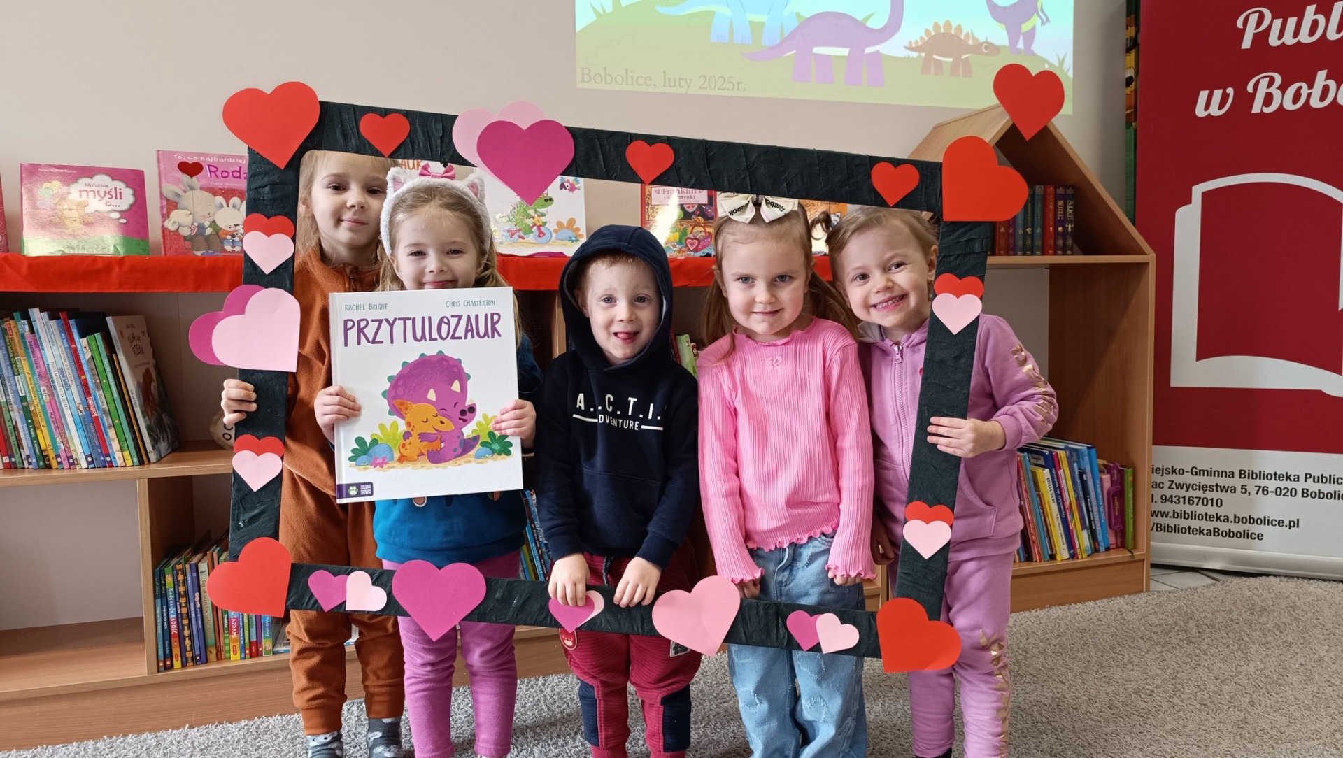 Podczas kolejnego spotkania Bibliotecznego Klubu Dziecięcego dzieci wysłuchały opowiadania pt. "Przytulozaur"