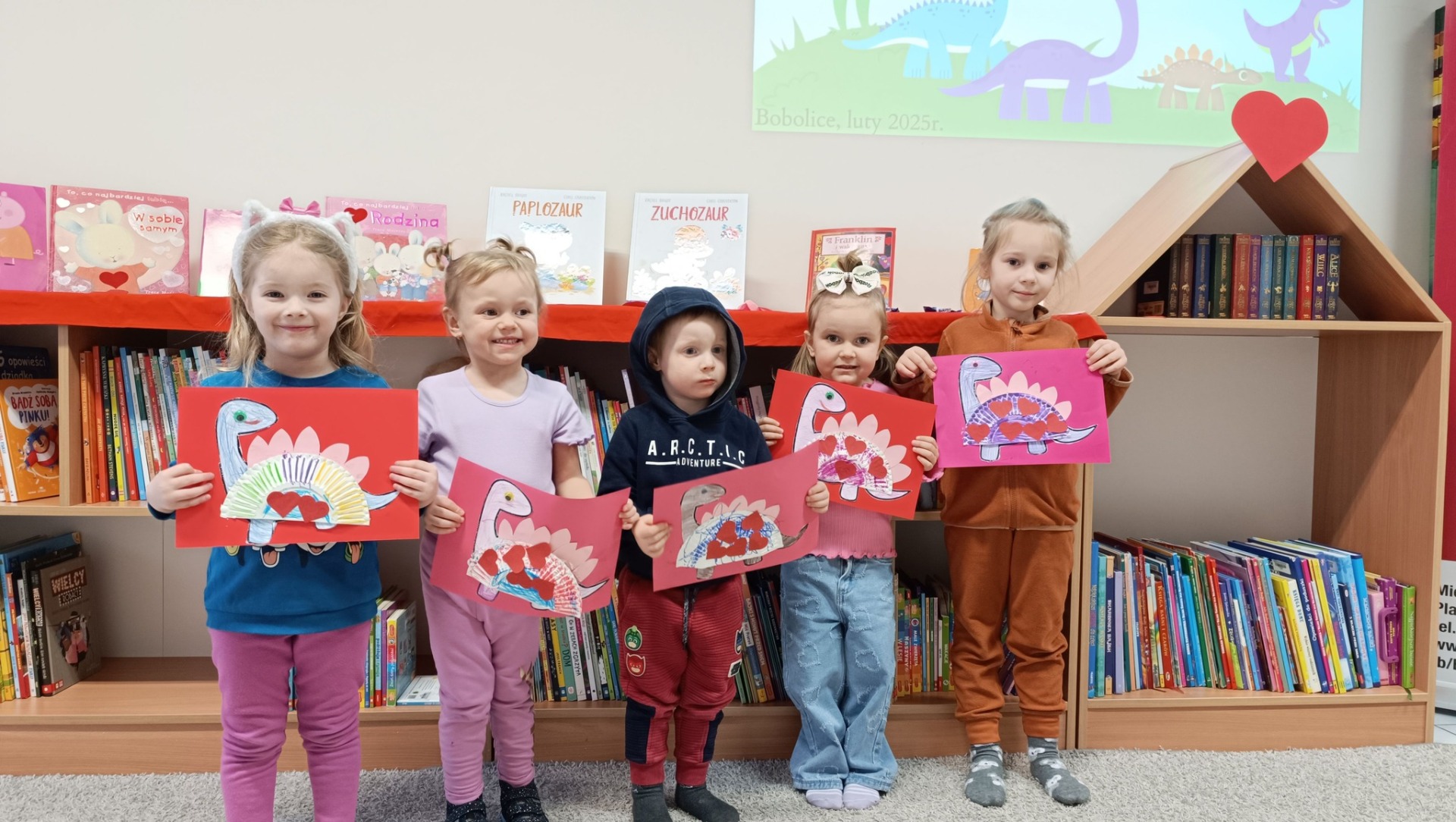 Podczas drugiej części zajęć dzieci wykonały "walentynkowe dinozaury".