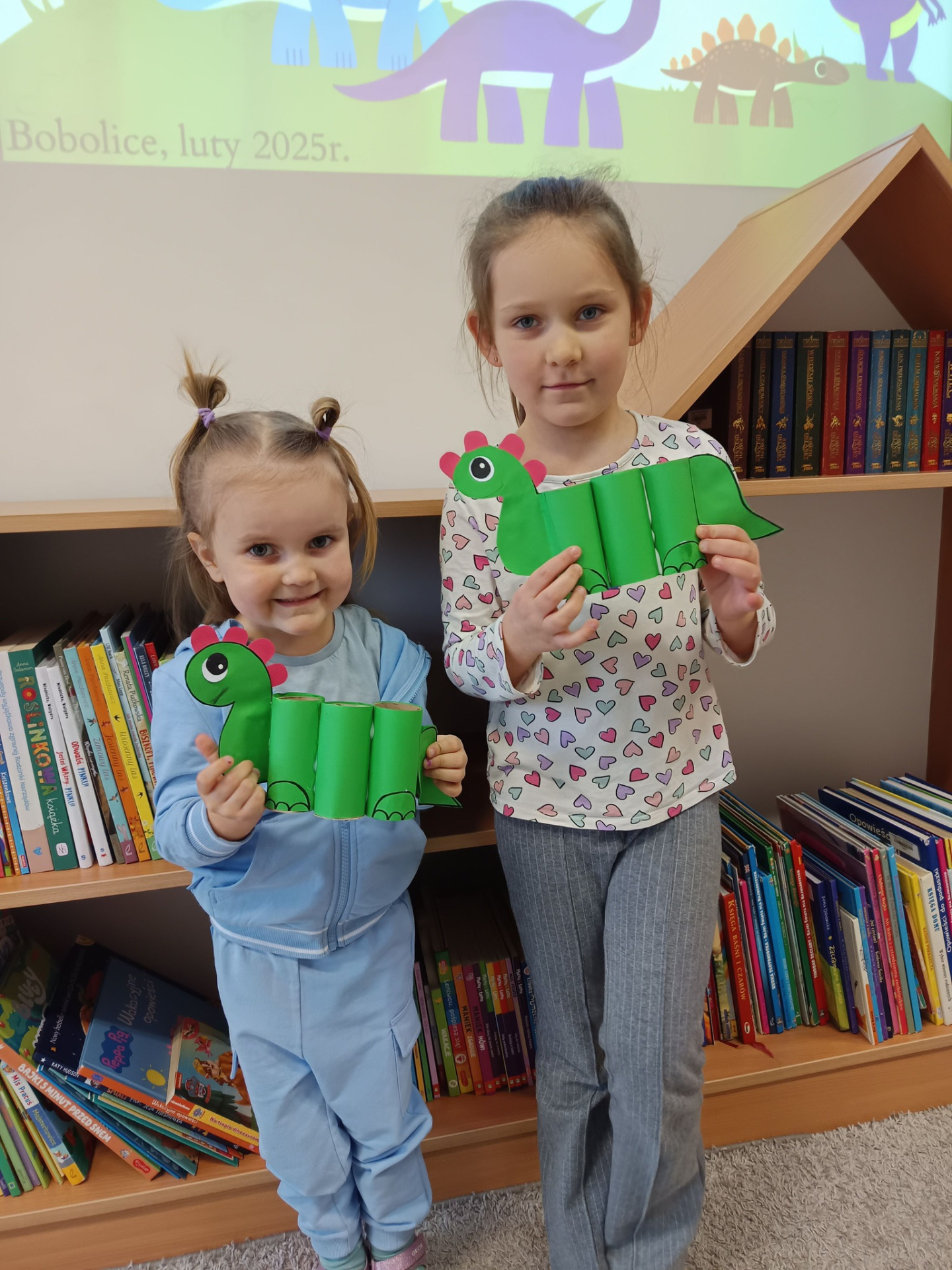 Uczestnicy spotkania Bibliotecznego Klubu Dziecięcego wysłuchali dzisiaj kolejnej opowieści o dinozaurach pt. ,,Paplozaur". To pouczająca i zabawna książka dla najmłodszych czytelników o wspaniałych rzeczach, w których możemy uczestniczyć, jeśli tylko słuchamy co inni mówią. W kolejnej części dzieci wykonały przybornik na kredki ,,dinozaur". Dziękujemy za spotkanie.