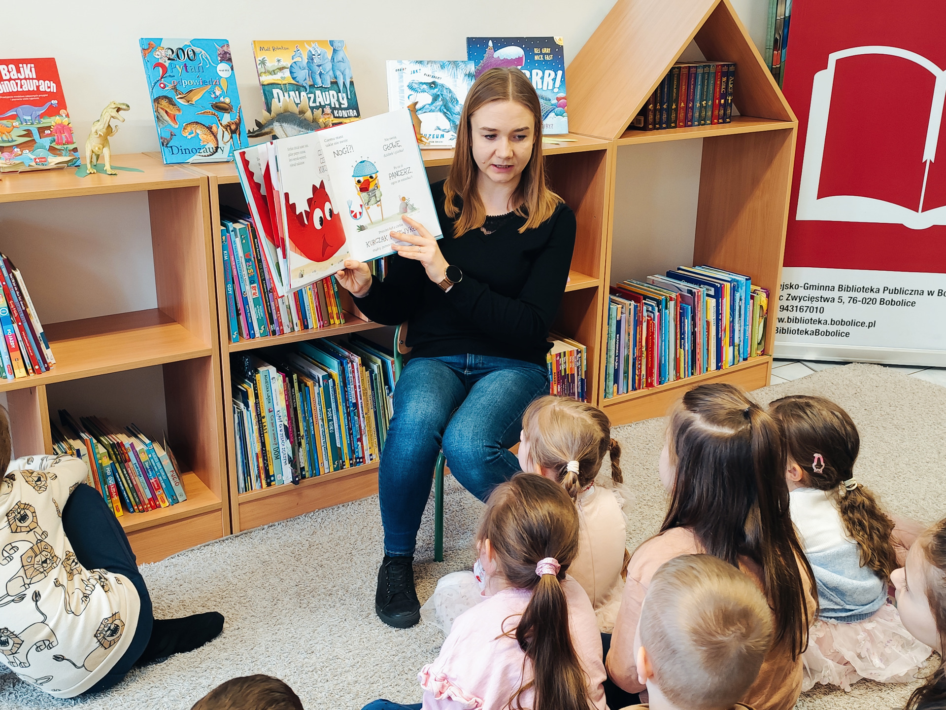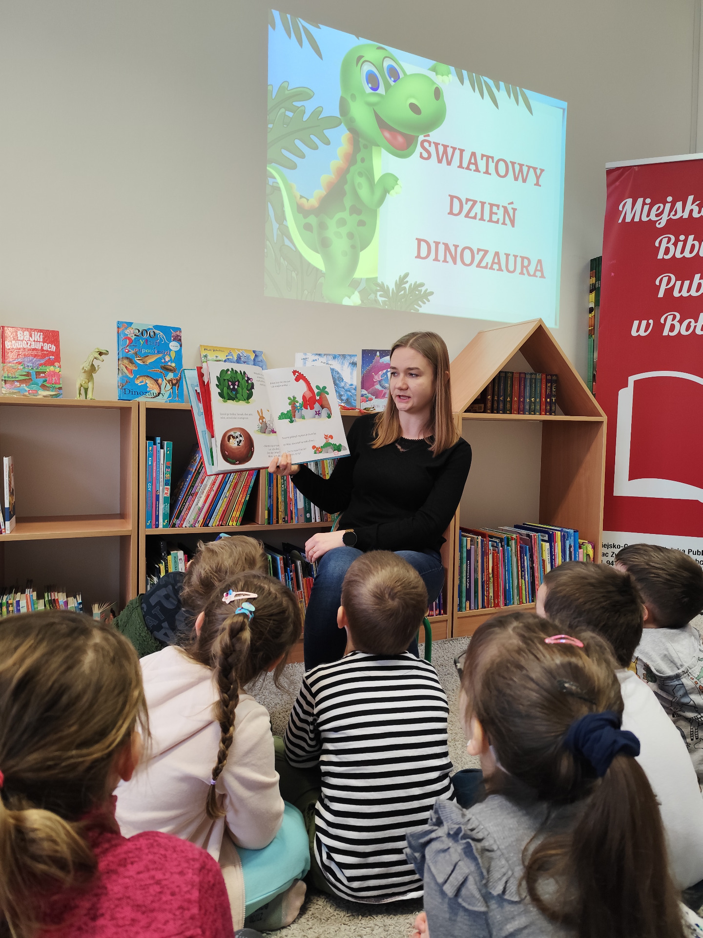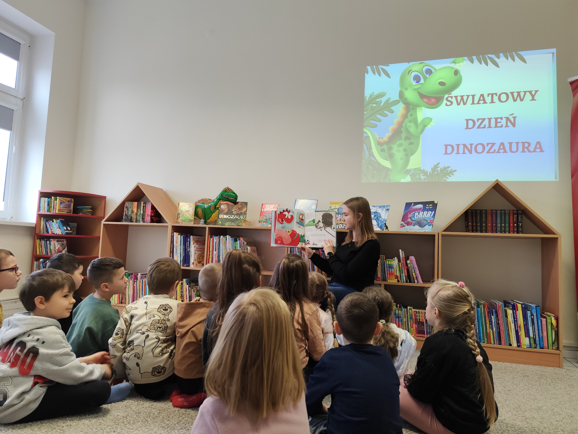 Dziś w naszej bibliotece odbyły się zajęcia czytelnicze pn. "Poranki-Czytanki" poświęcone książce "Chcę być dinozaurem" w ramach Światowego Dnia Dinozaura. W spotkaniu wzięły udział dzieci z grupy "Pszczółki", "Misie", "Mrówki" i "Żabki" z Przedszkola "Leśne Skrzaty" w Bobolicach. Przedszkolaki z ogromnym zainteresowaniem wysłuchały opowiadania pt. "Chcę być dinozaurem" autorstwa Agaty Widzowskiej, którego głównym przesłaniem jest to, że ważne jest bycie sobą, ponieważ przyjaciele kochają nas właśnie za to, jacy jesteśmy.