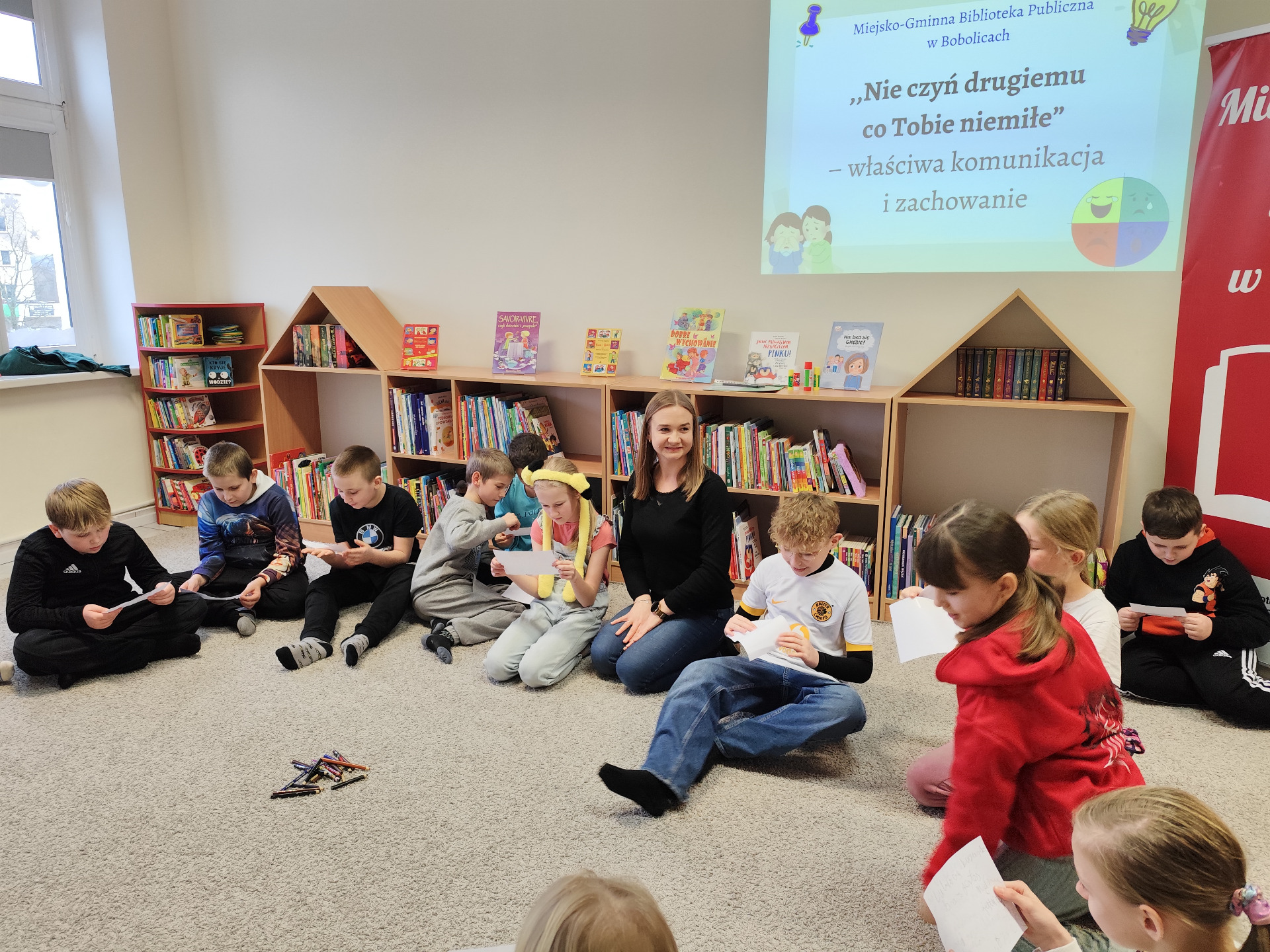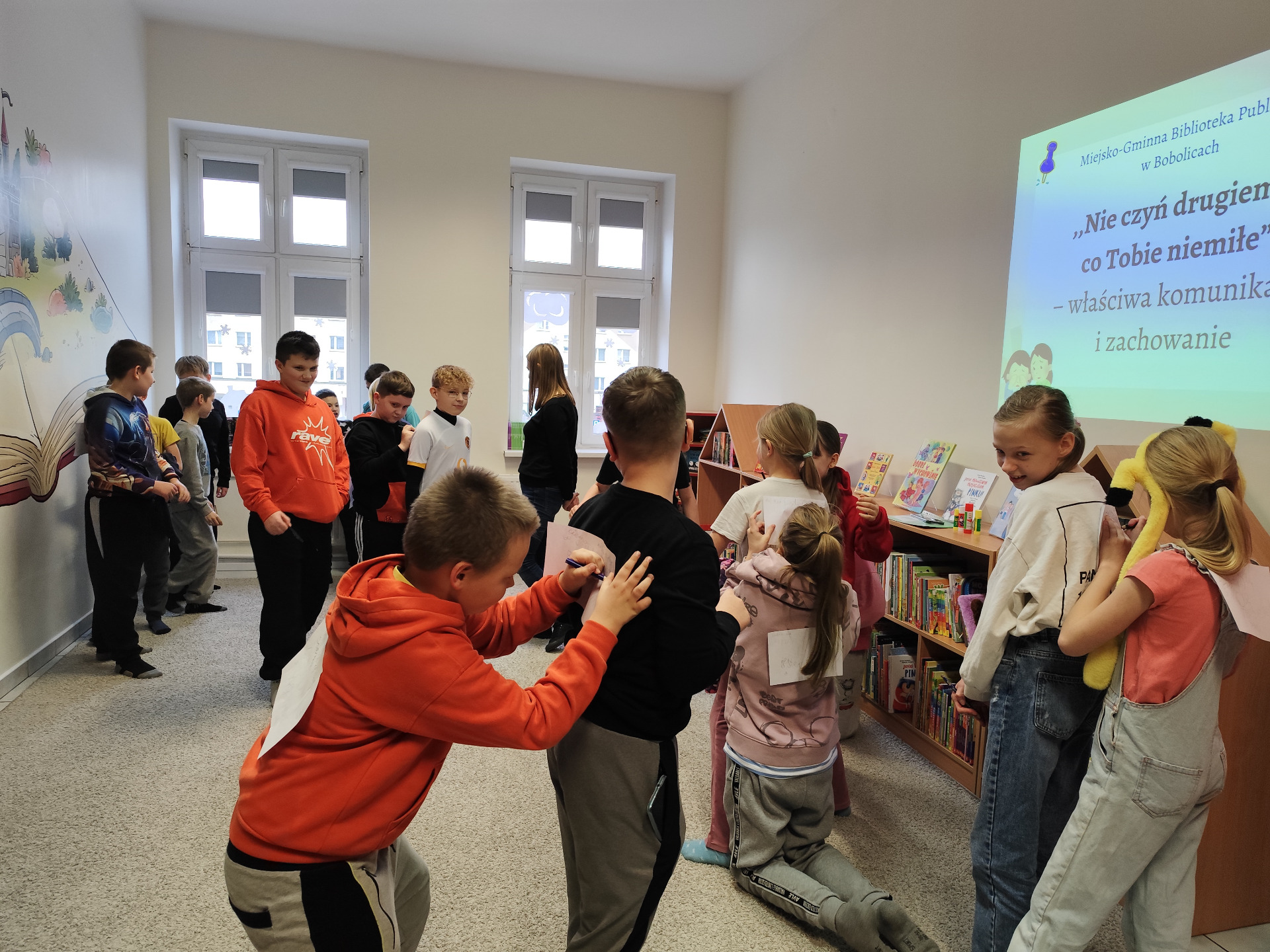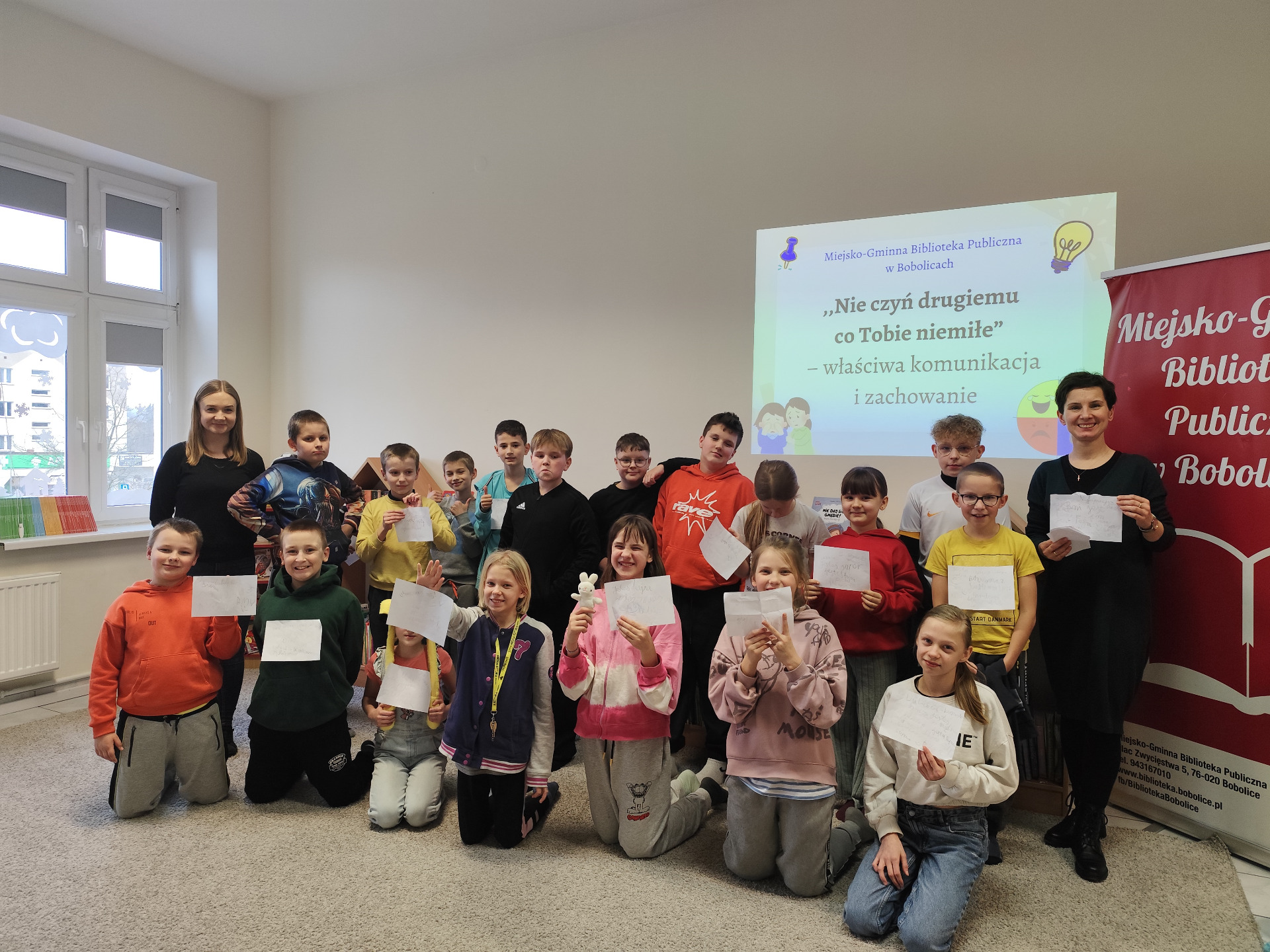 Dziś w zajęciach pn. "Nie czyń drugiemu co Tobie niemiłe" uczestniczyli uczniowie klasy IV a ze Szkoły Podstawowej im. Henryka Sienkiewicza w Bobolicach. Dzieci miały okazję zastanowić się nad znaczeniem tej zasady w codziennym życiu oraz jej wpływem na relacje międzyludzkie.