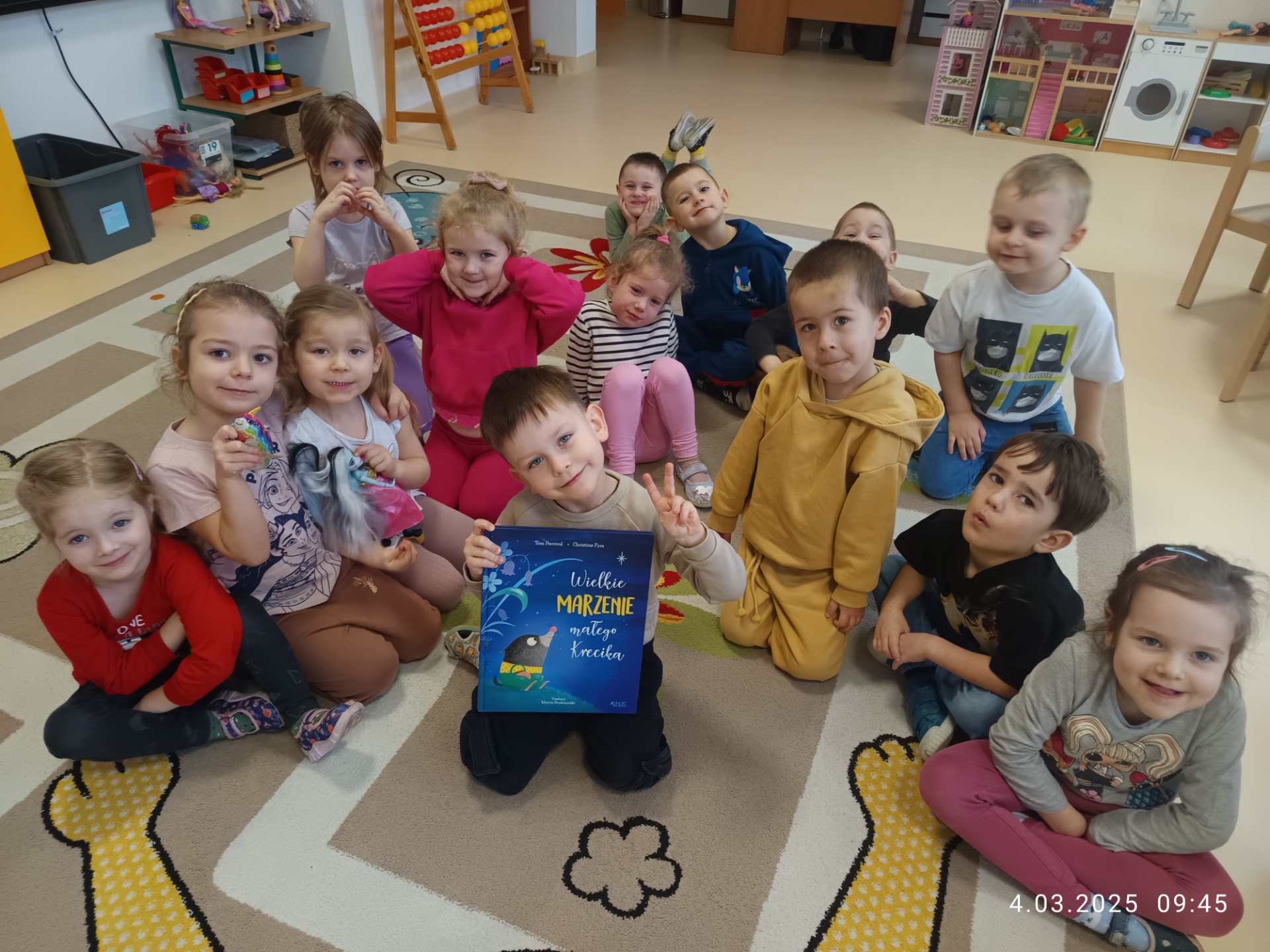 Podczas dzisiejszego cyklicznego spotkania pn. ,,Poranki - Czytanki" Sówki 馃, Myszki馃惌, Motylki 馃 i Pingwinki馃惂 wys艂ucha艂y bajk臋 pt. ,,Wielkie marzenie ma艂ego krecika". Ksi膮偶ka jest pe艂na emocji, a opowie艣膰 zach臋ca do odkrywania swoich talentów i spe艂niania marze艅 mimo przeszkód i przeciwno艣ci. Najwa偶niejsze, 偶eby wierzy膰 w siebie 馃槉 Na zako艅czenie spotkania ta艅czyli艣my do piosenki ,,G艂owa, ramiona, kolana, pi臋ty".