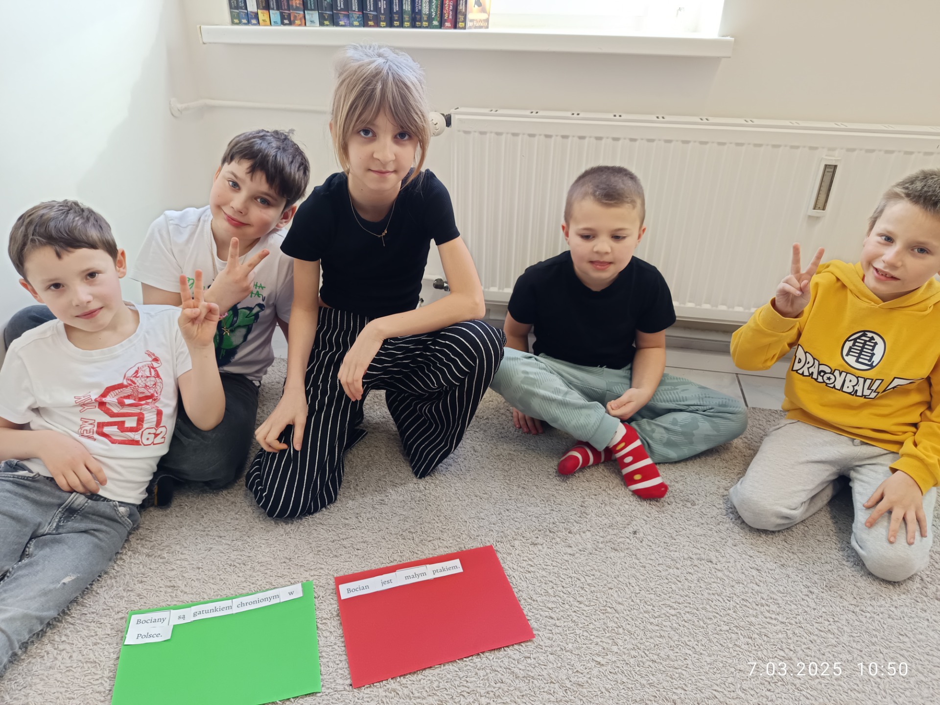 * ułożyli zdania z rozsypanek wyrazowych na temat bociana, określając które zdania są prawdziwe, a które fałszywe;