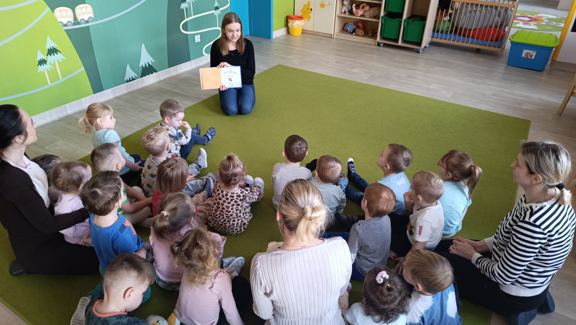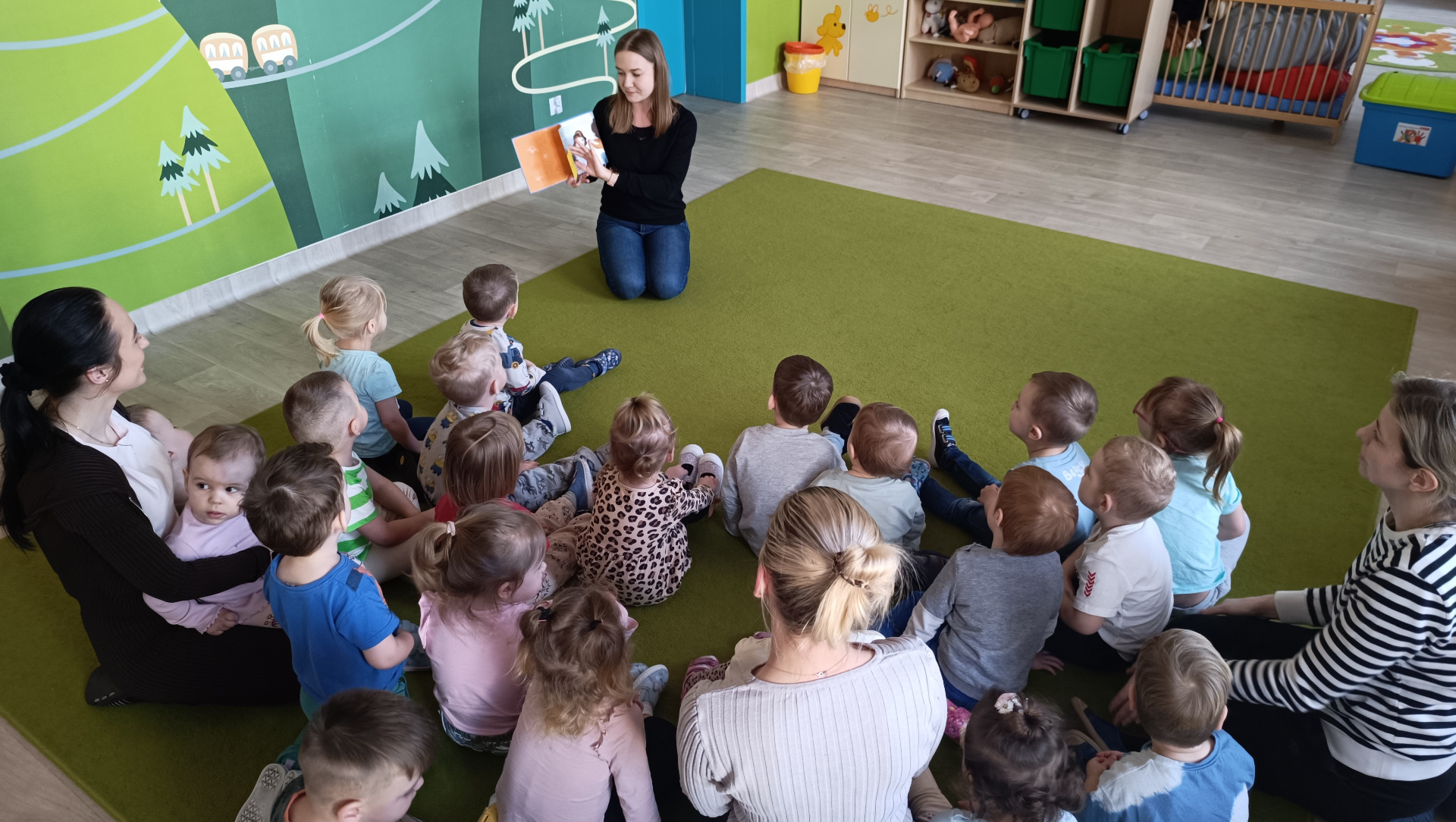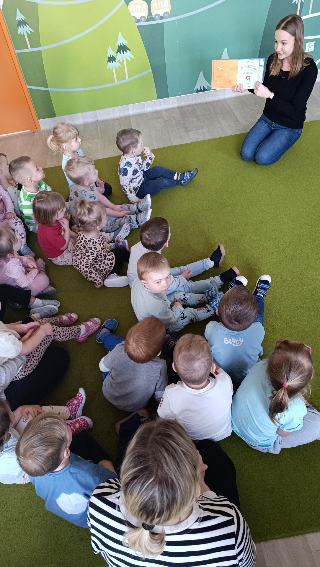 Podczas dzisiejszych zajęć czytelniczych w Żłobku Miejskim "Elfiki" w Bobolicach maluchy z wielkim zainteresowaniem wysłuchały przygód Jadzi Pętelki, która wybrała się na spacer w deszczowy dzień razem ze swoją mamą. Elfiki bardzo aktywnie uczestniczyły w spotkaniu i pięknie odpowiadały na pytania. Odbyła się również krótka zabawa rytmiczna "Deszczyk stuka".