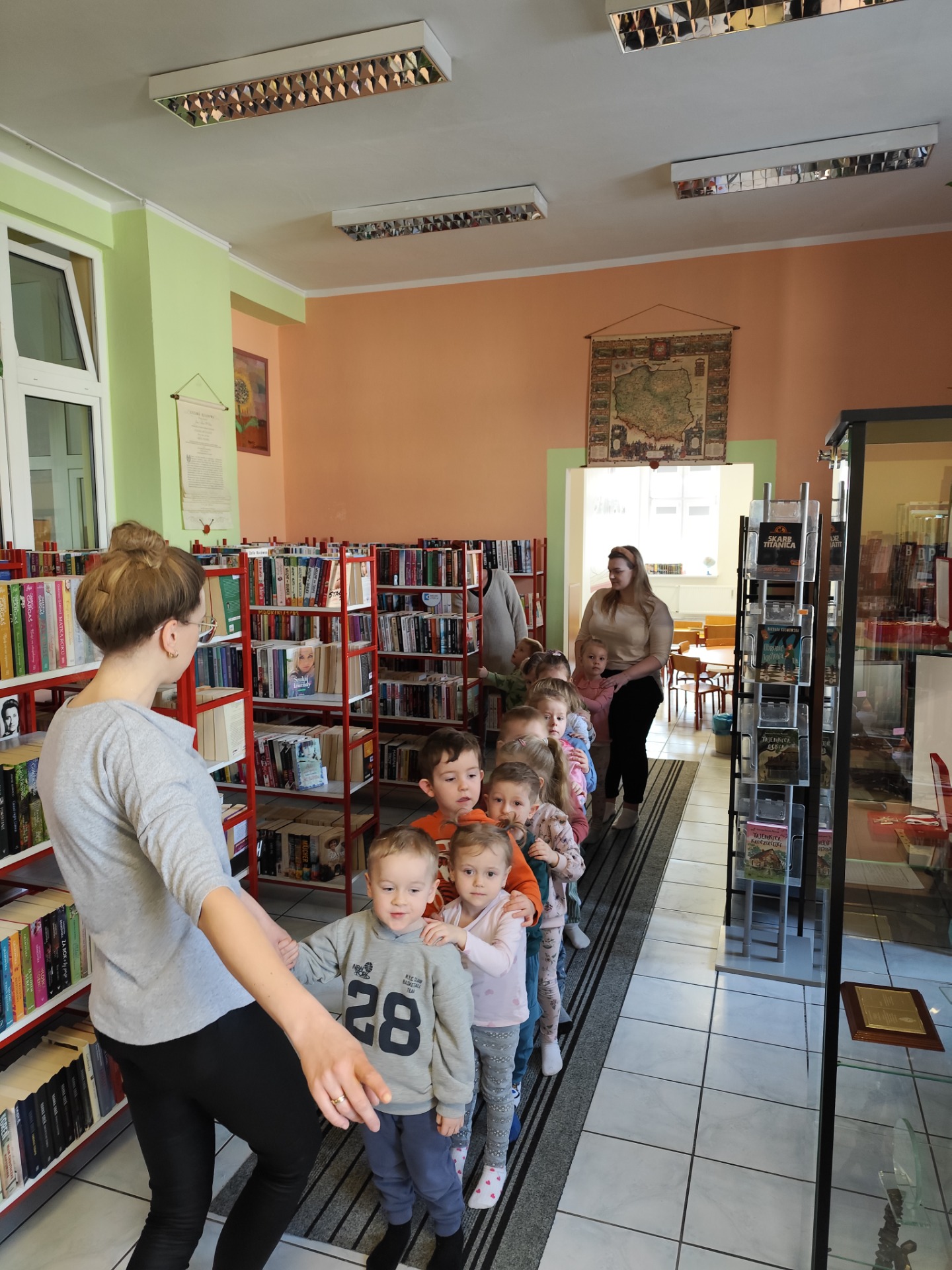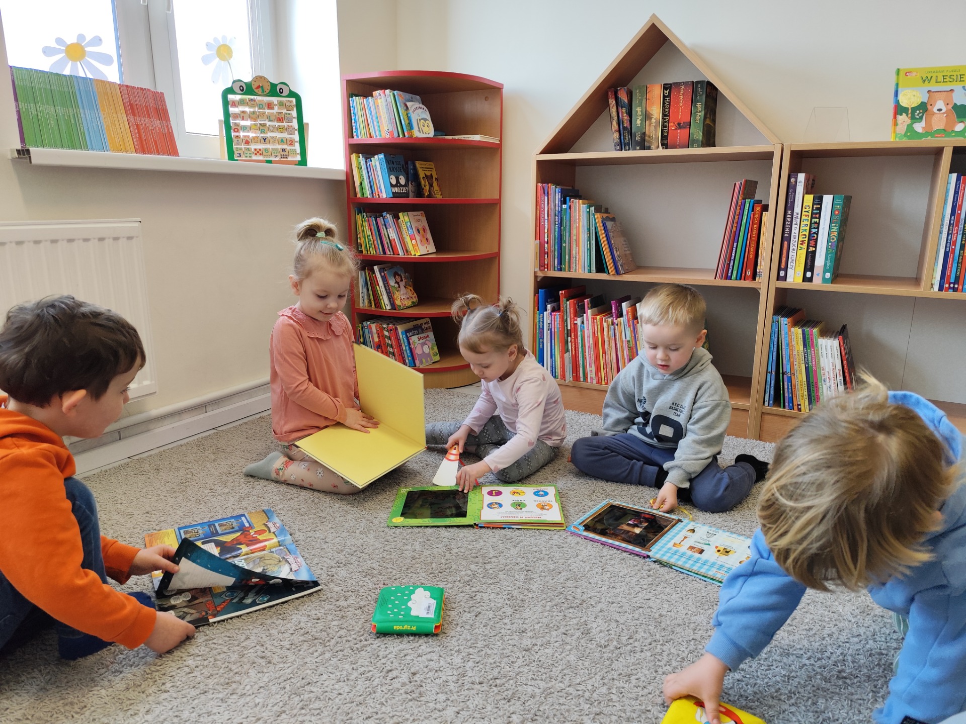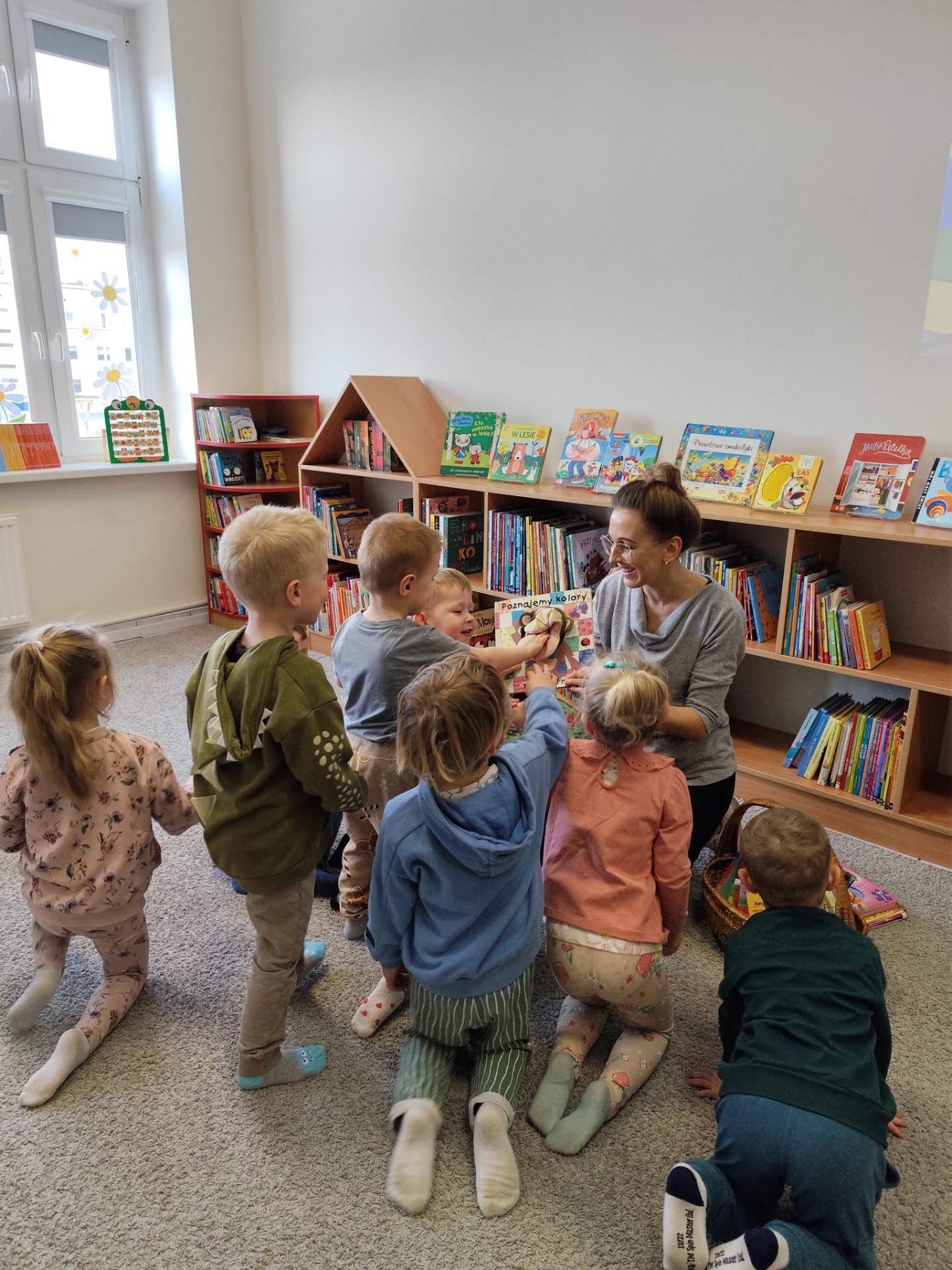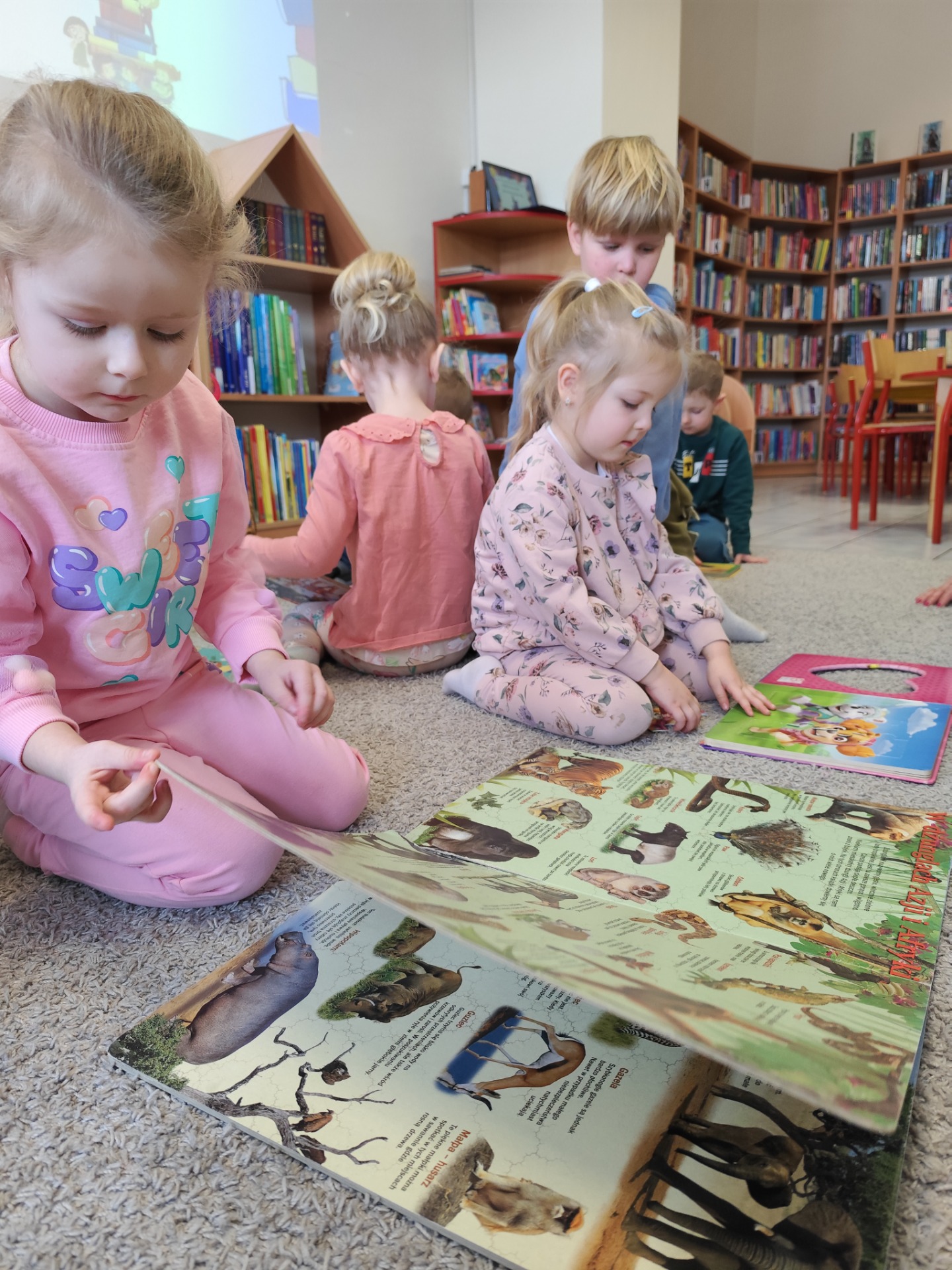 z Przedszkole "Leśne Skrzaty" w Bobolicach, które poznały bibliotekę i świetnie się przy tym bawiły. Przedszkolaki wysłuchały bajkę, pt. ,,Kicia Kocia w bibliotece", zwiedziły bibliotekę, dowiedziały się co się w niej znajduje, jak należy dbać o książki oraz jak należy zachowywać się w bibliotece. Z ciekawością oglądały książeczki, nie zabrakło również zabaw z książką w roli głównej. Na zakończenie Myszki wykonały zakładkę do książki