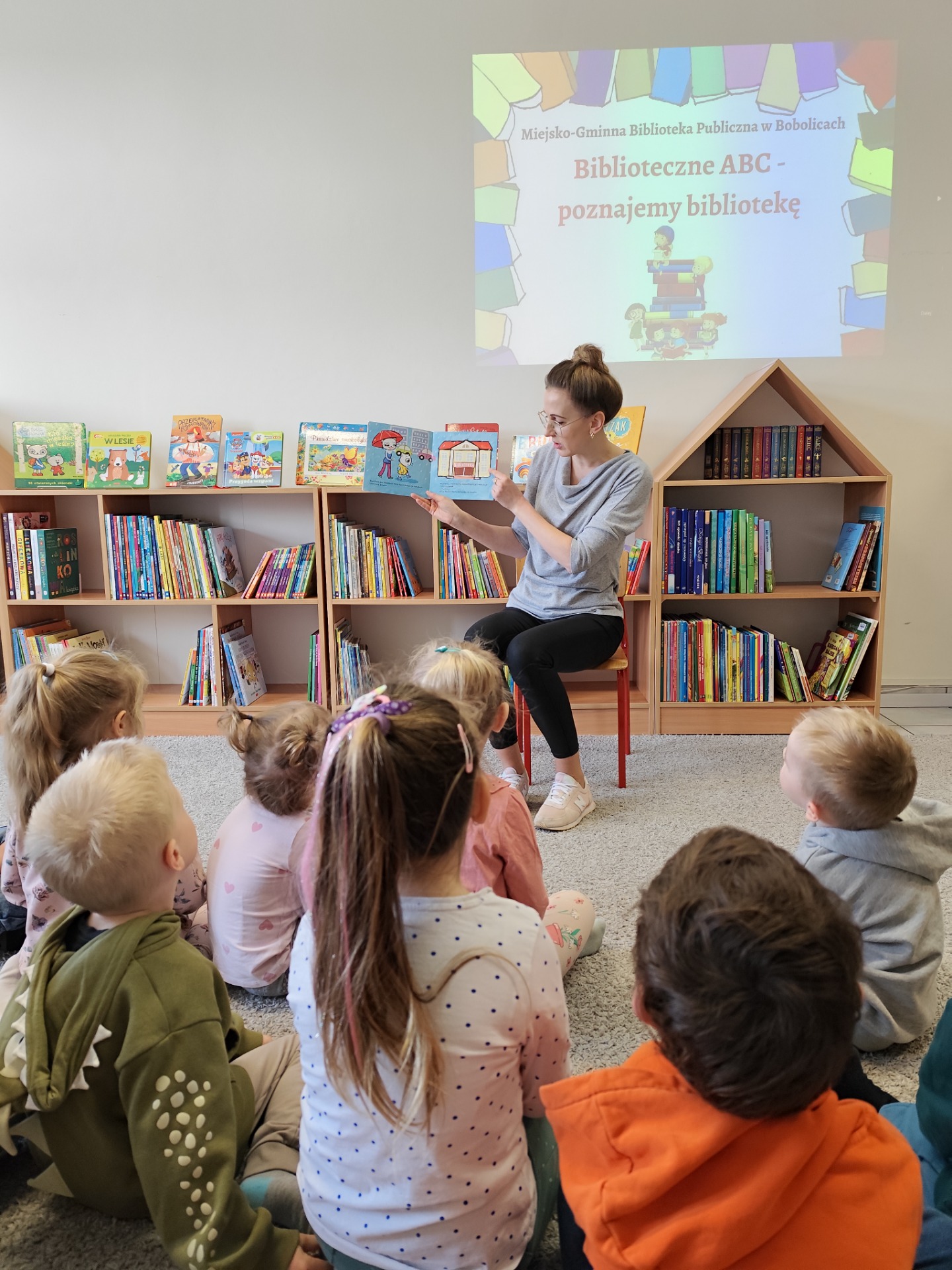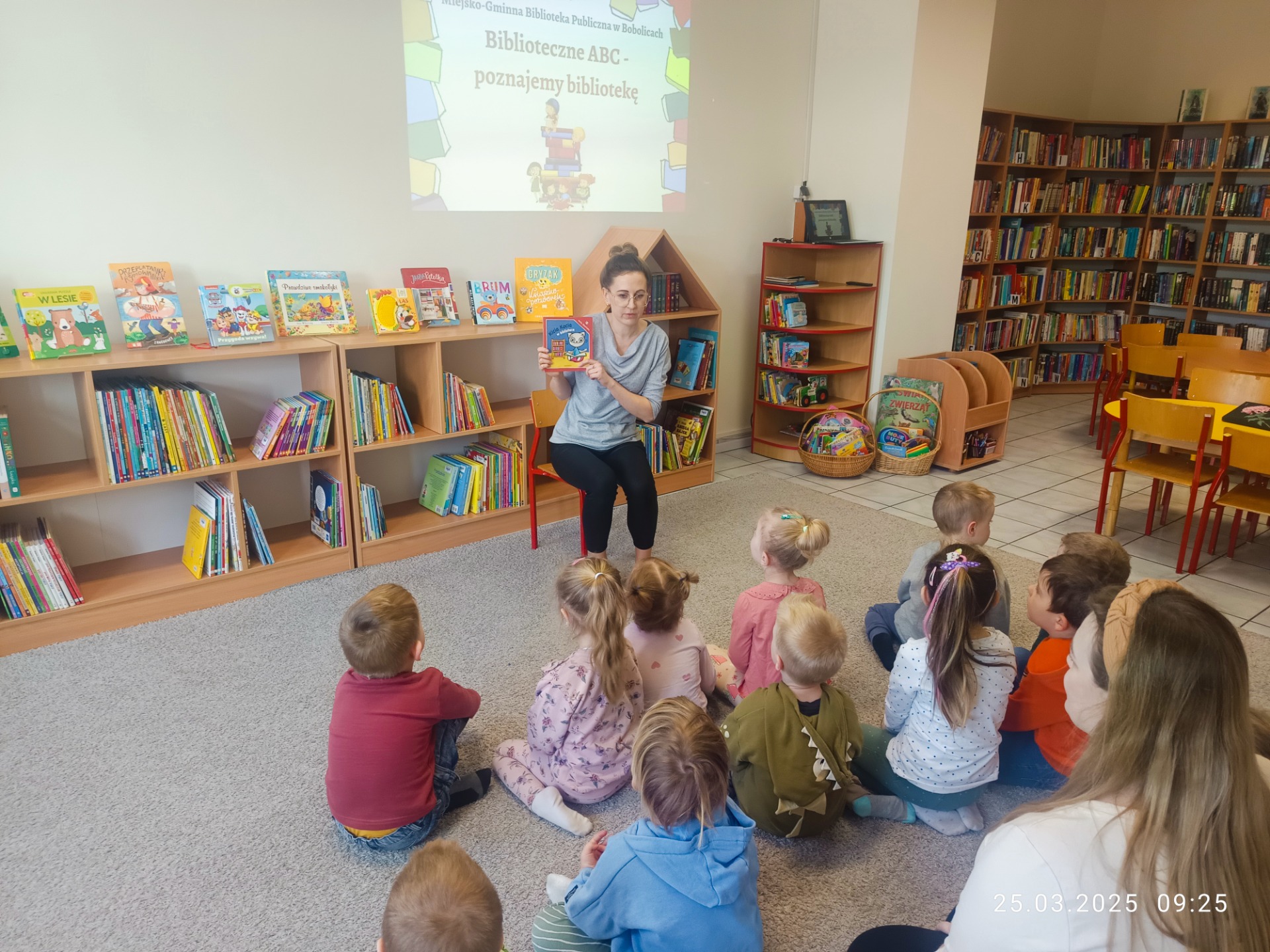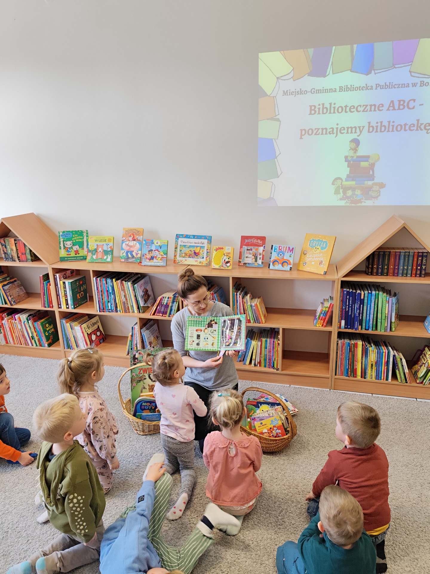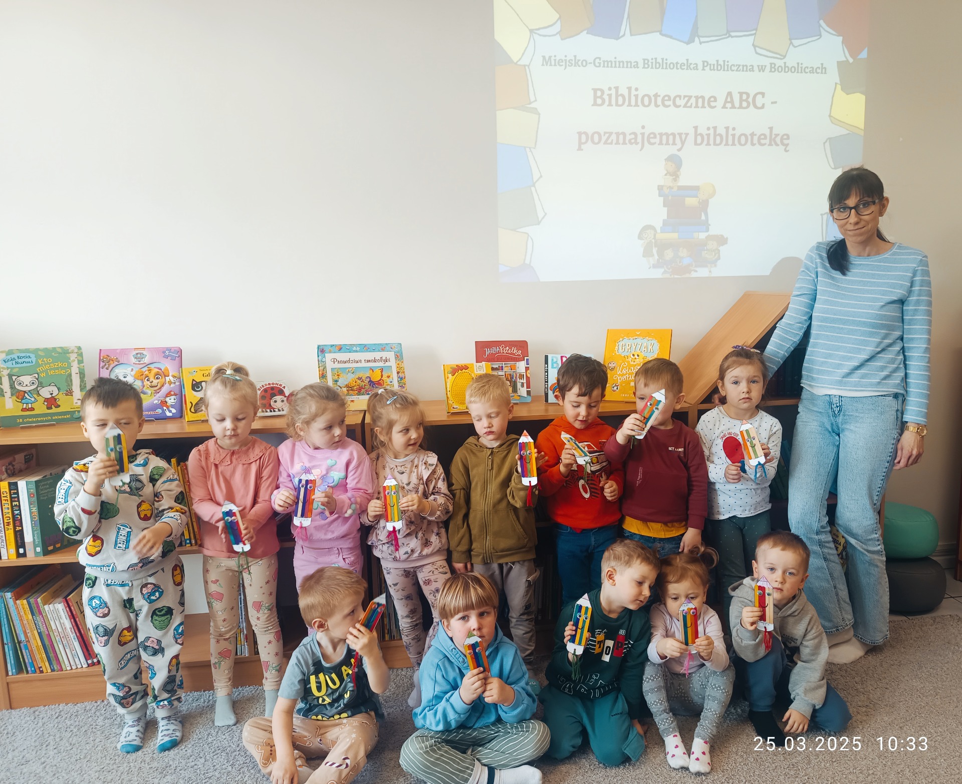 z Przedszkole "Leśne Skrzaty" w Bobolicach, które poznały bibliotekę i świetnie się przy tym bawiły. Przedszkolaki wysłuchały bajkę, pt. ,,Kicia Kocia w bibliotece", zwiedziły bibliotekę, dowiedziały się co się w niej znajduje, jak należy dbać o książki oraz jak należy zachowywać się w bibliotece. Z ciekawością oglądały książeczki, nie zabrakło również zabaw z książką w roli głównej. Na zakończenie Myszki wykonały zakładkę do książki