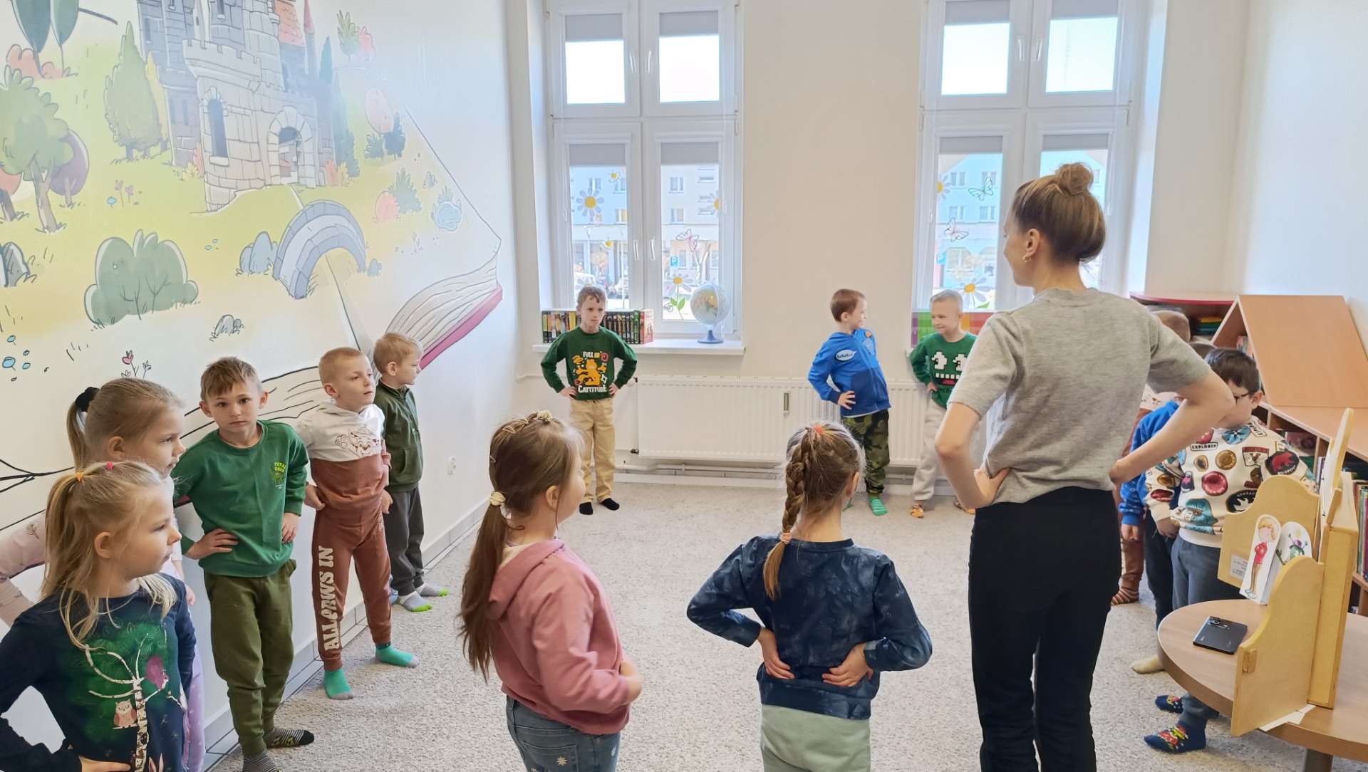 Podsumowaniem spotkania była zabawa przy piosence ,,Głowa, ramiona, kolana, piety". Dziękujemy