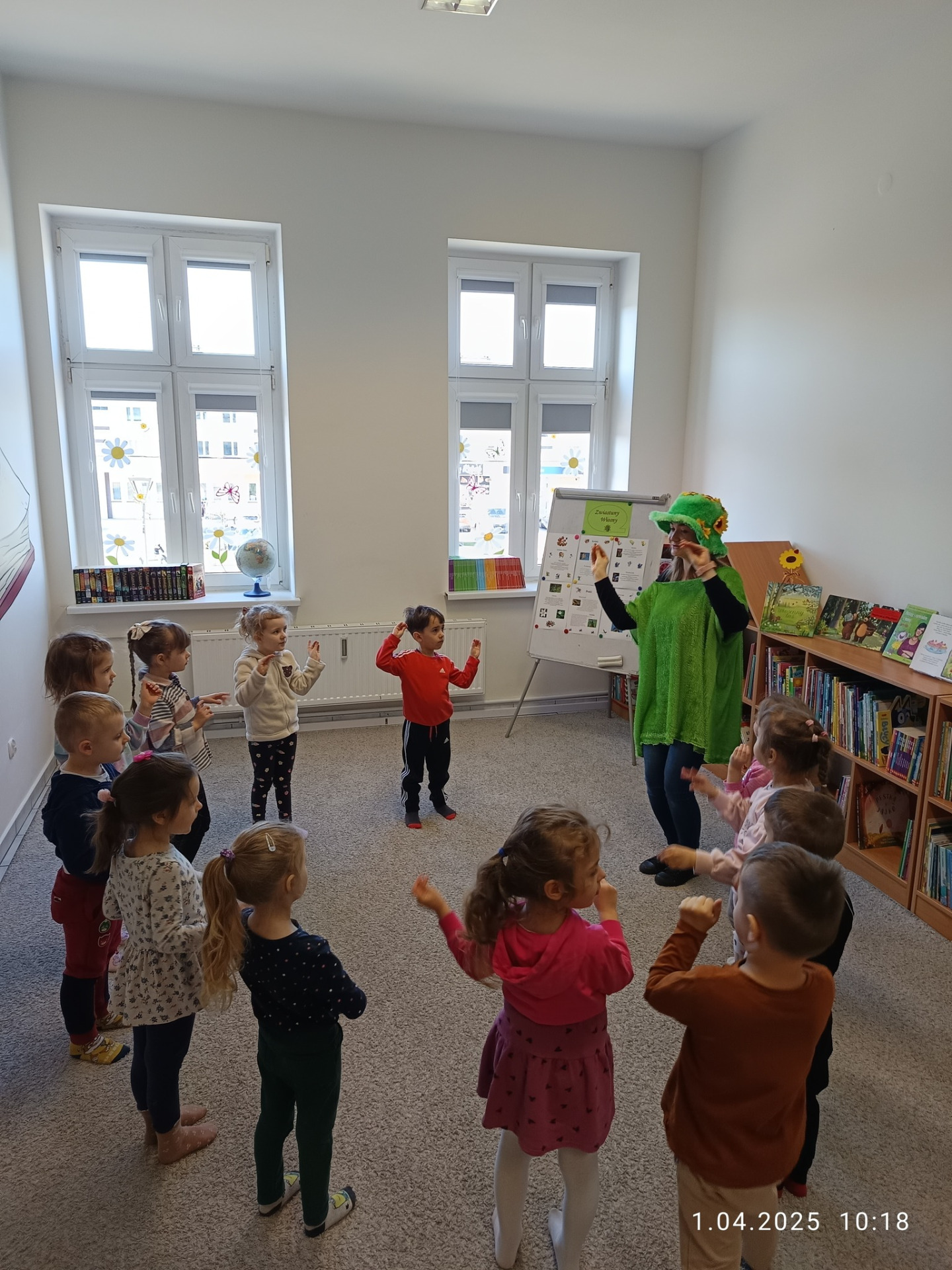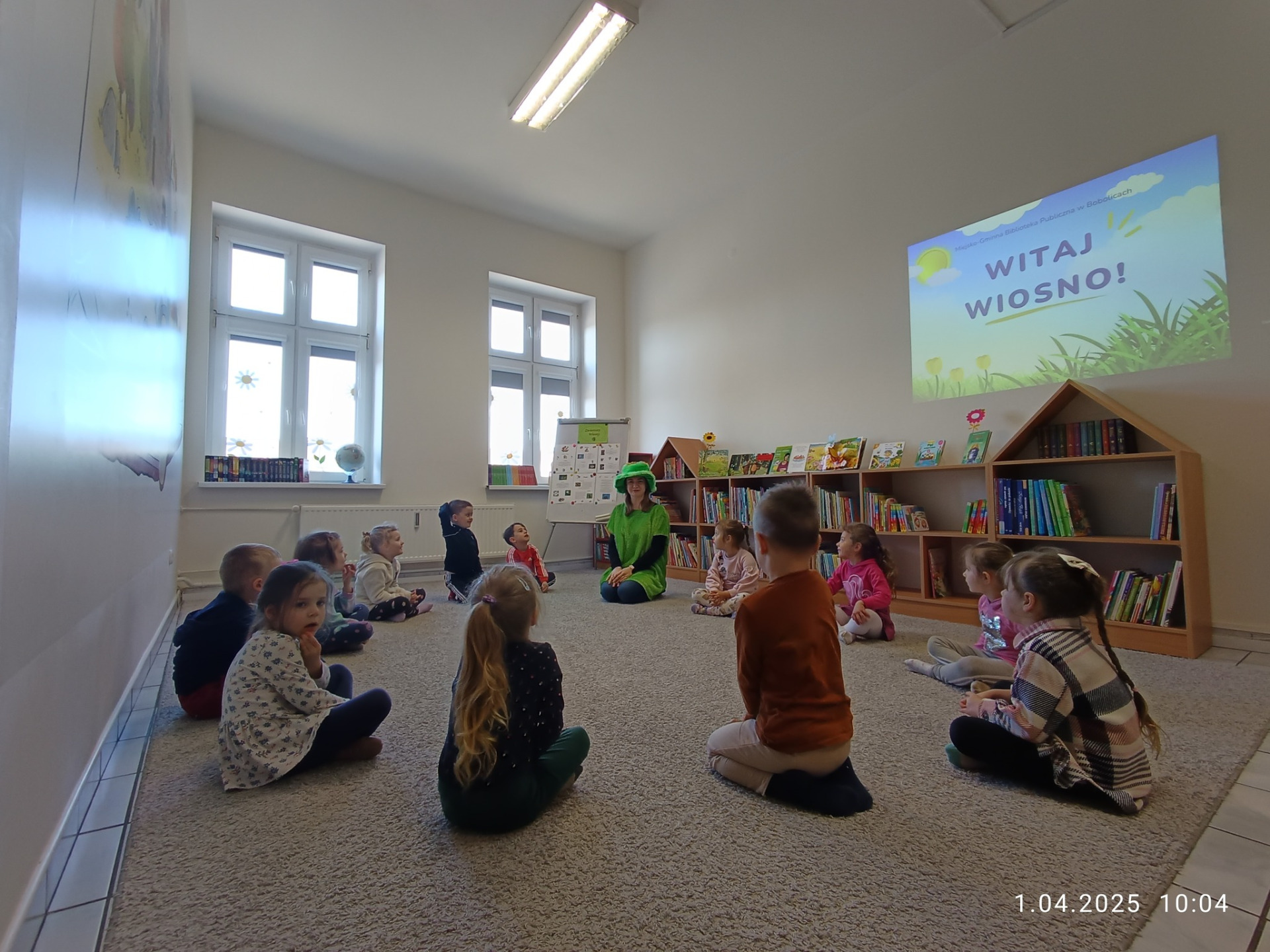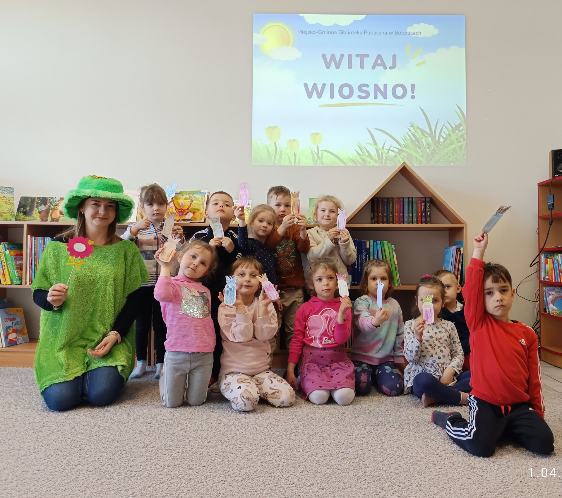 Dziś dzieci z grupy Motylki z Przedszkola "Leśne Skrzaty" w Bobolicach odwiedziły bibliotekę i wzięły udział w zajęciach pn. ,,Witaj wiosno!".