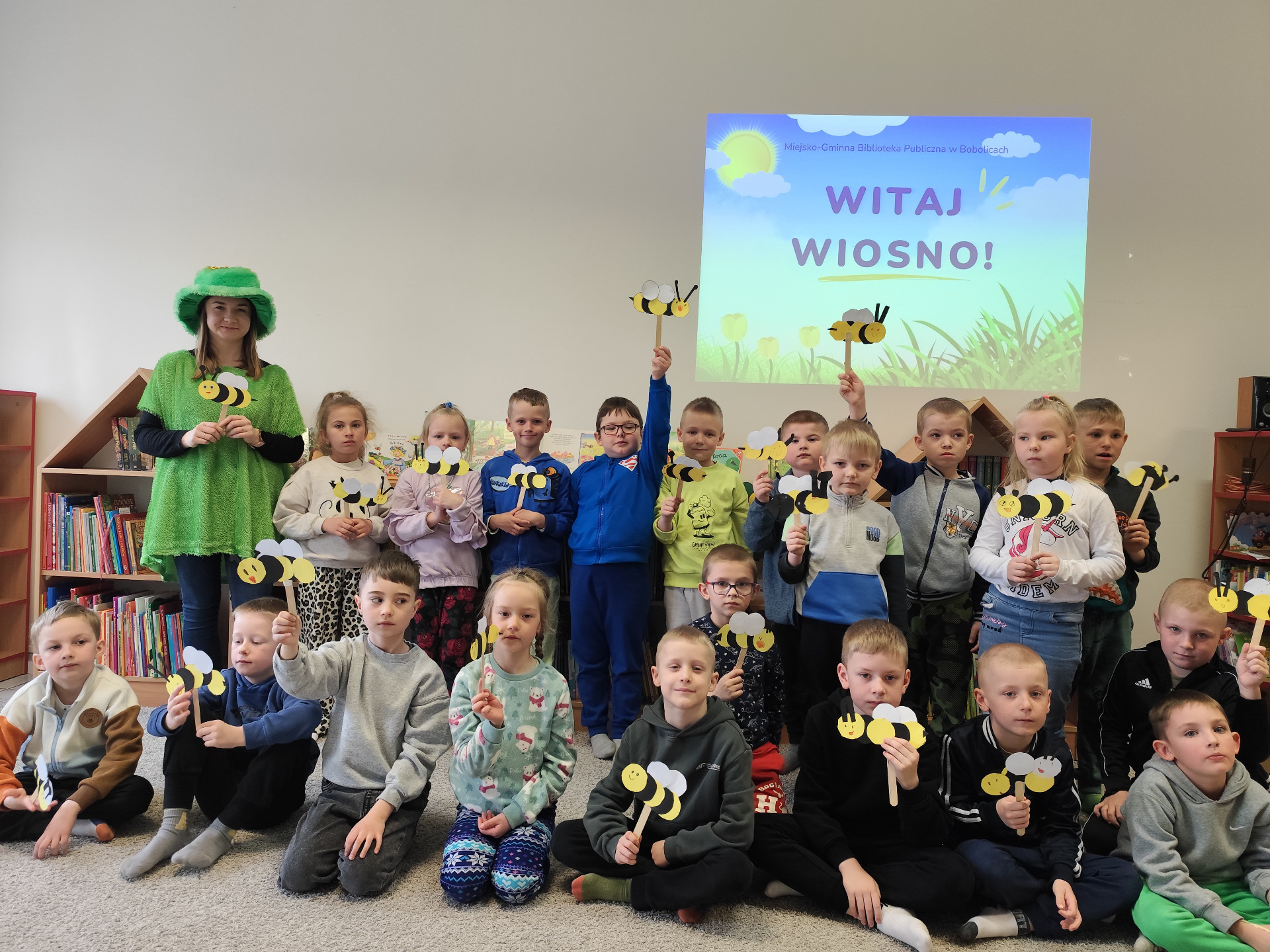 Dziś Miejsko-Gminną Bibliotekę Publiczną w Bobolicach odwiedziły dzieci z grupy „Pszczółki” z Przedszkola ,,Leśne Skrzaty w Bobolicach". Przedszkolaki wzięły udział w zajęciach pn. „Witaj, wiosno!”, podczas których: