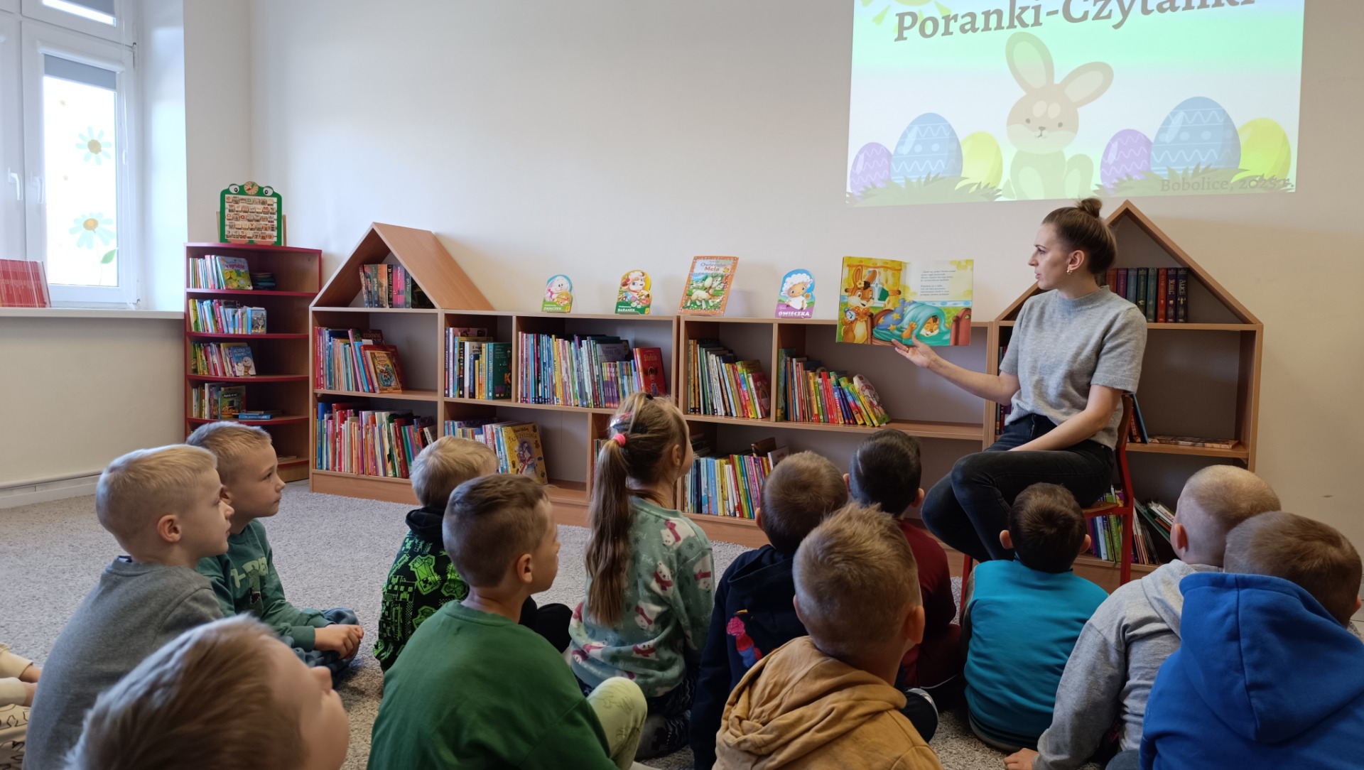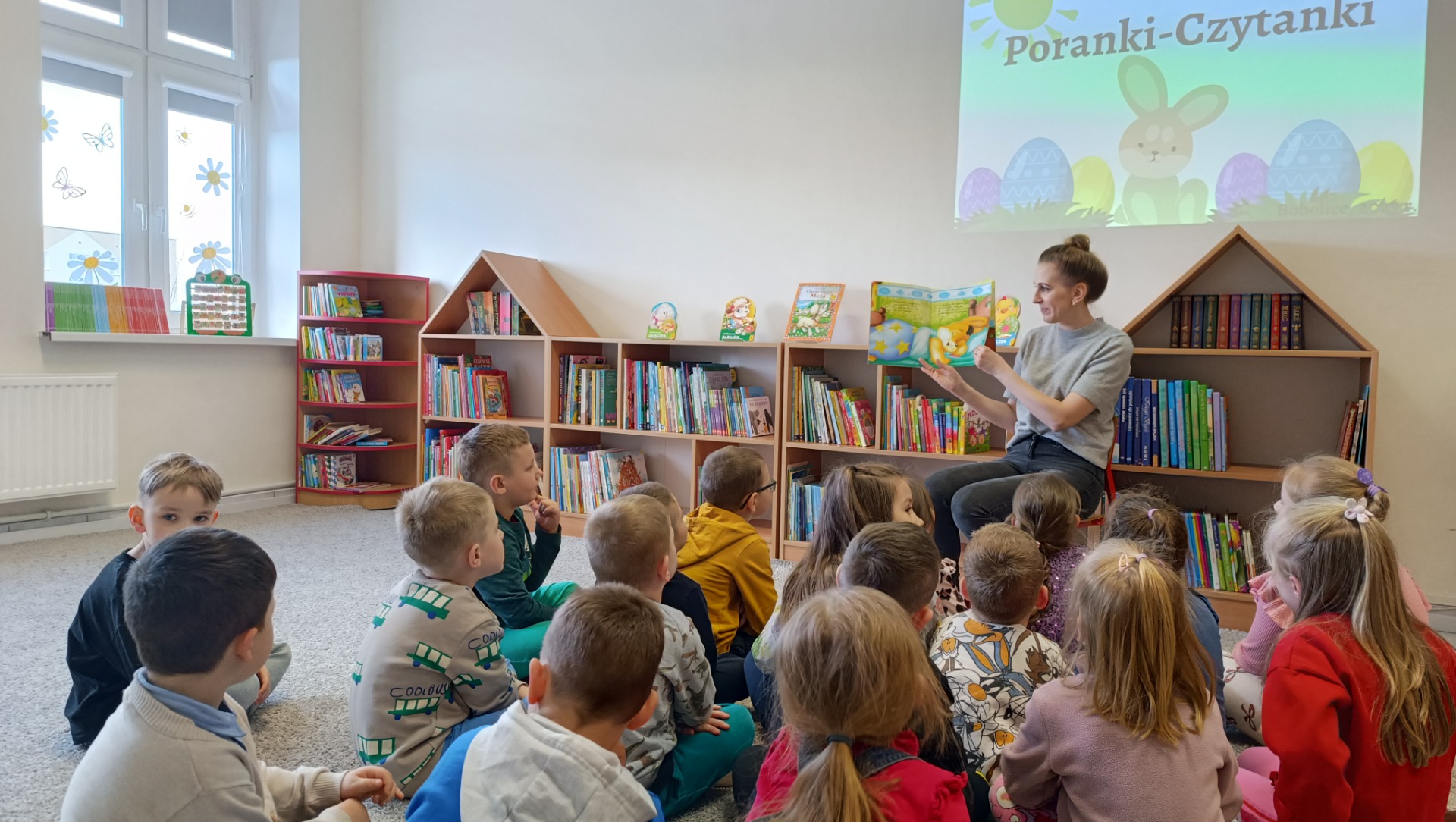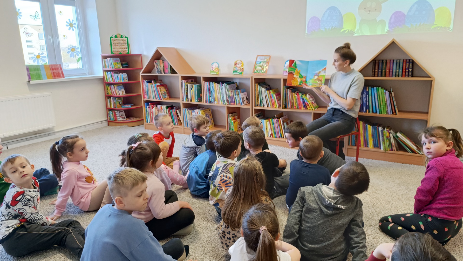 Podczas dzisiejszego spotkania pn. ,,Poranki - Czytanki" z okazji zbliżających się Świąt Wielkanocnych