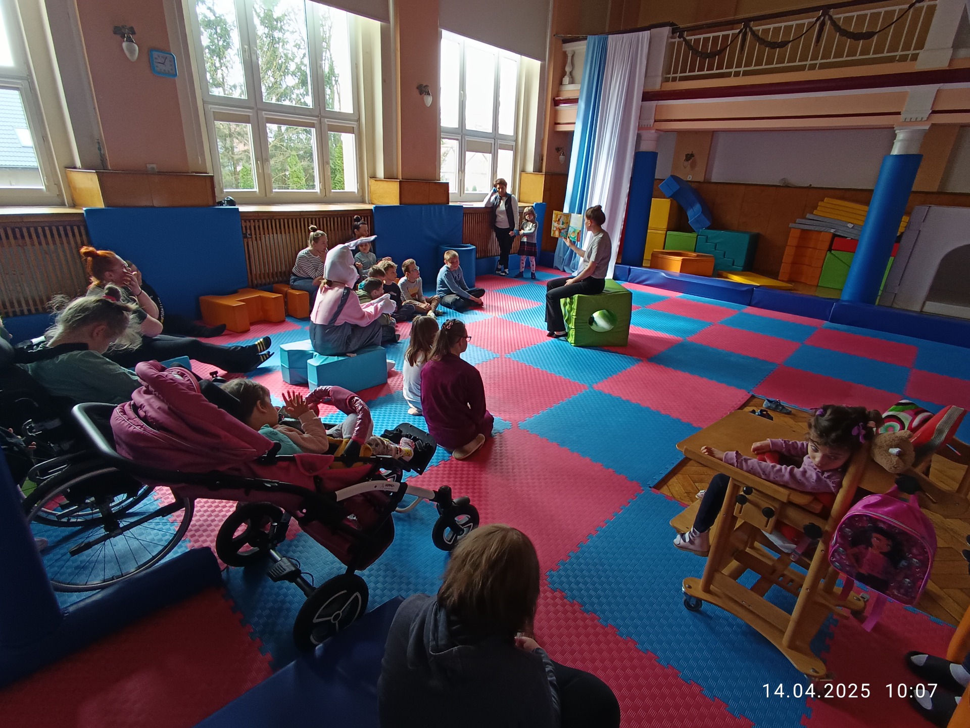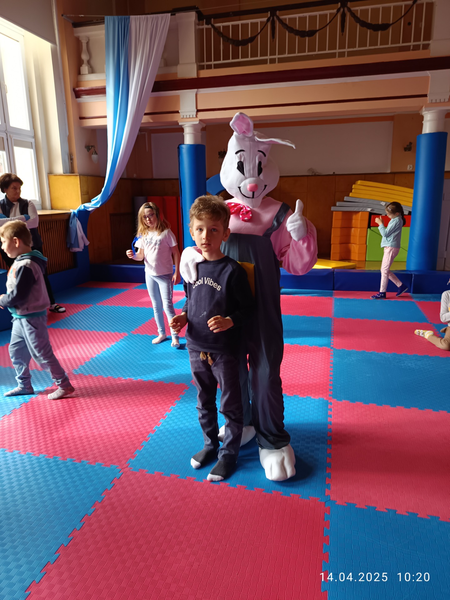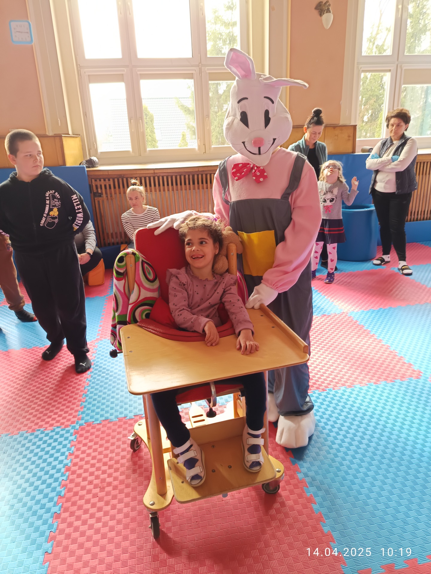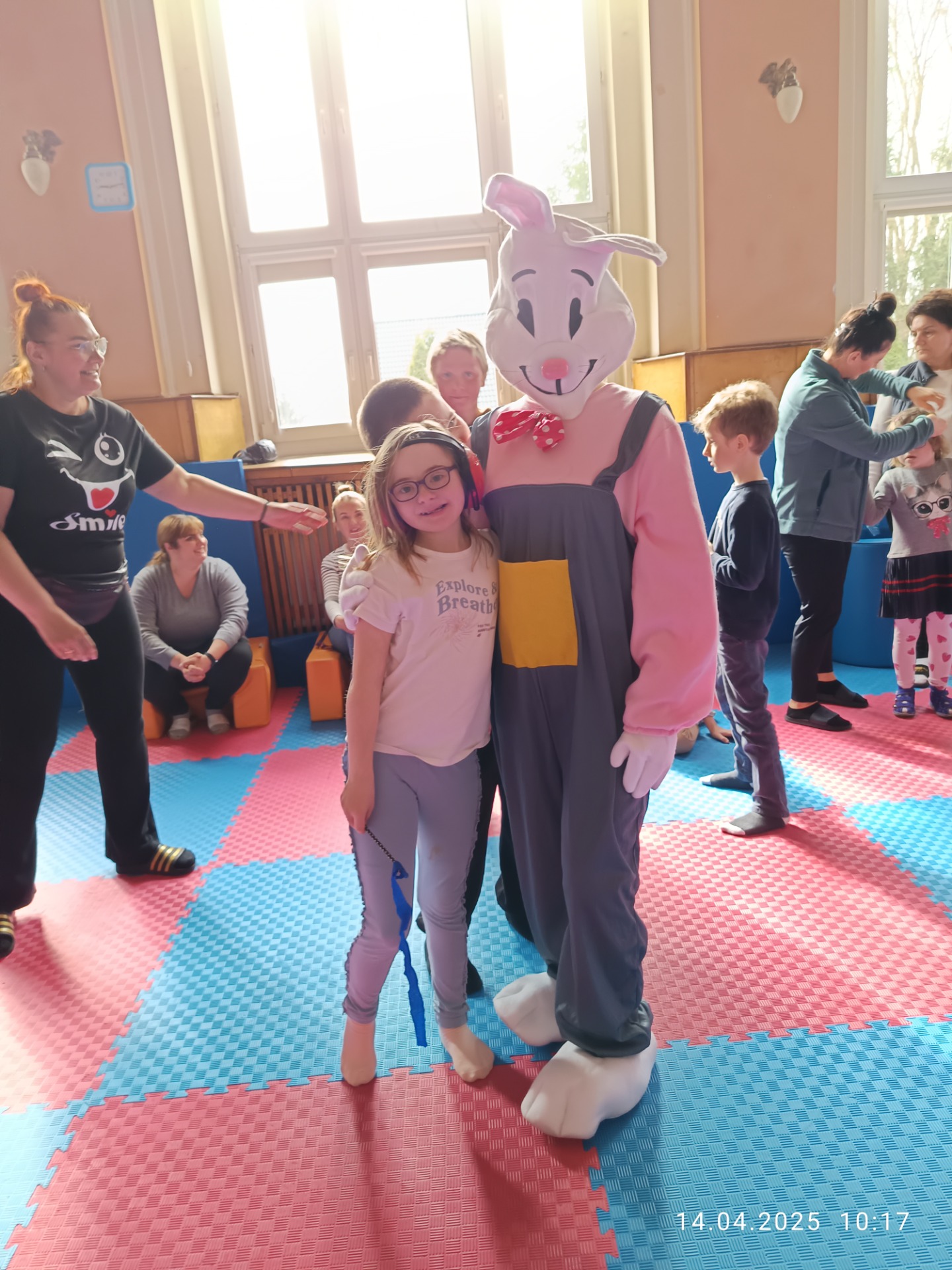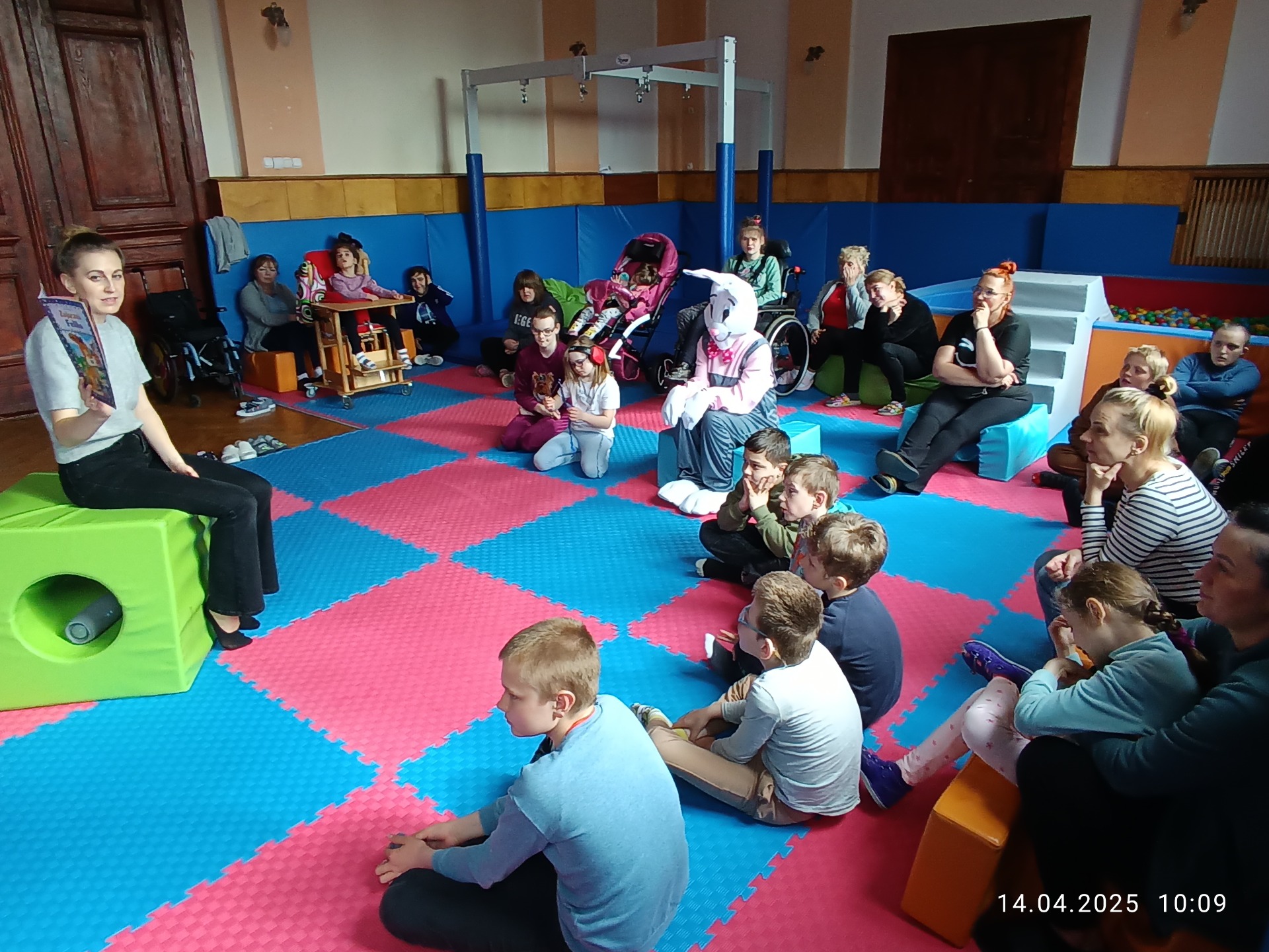 zawitał dzisiaj do podopiecznych OREW Bobolice na zajęcia bajkoterapii. Uczestnicy spotkania wysłuchali bajkę, pt. ,,Zajączek Feliks", która nawiązuje do Świąt Wielkanocnych, a następnie bawili się wspólnie z Zajączkiem
