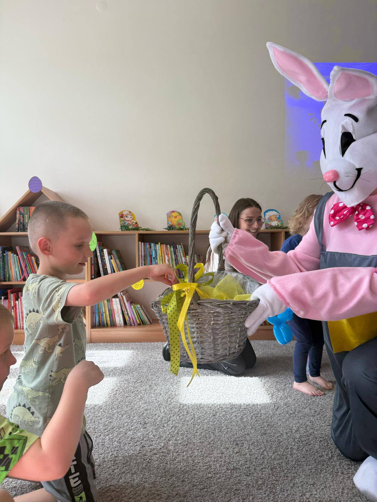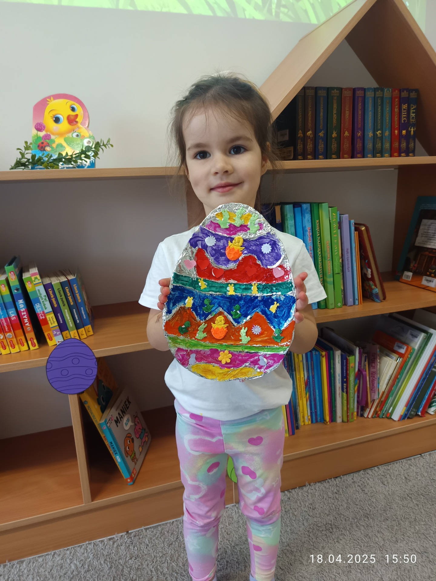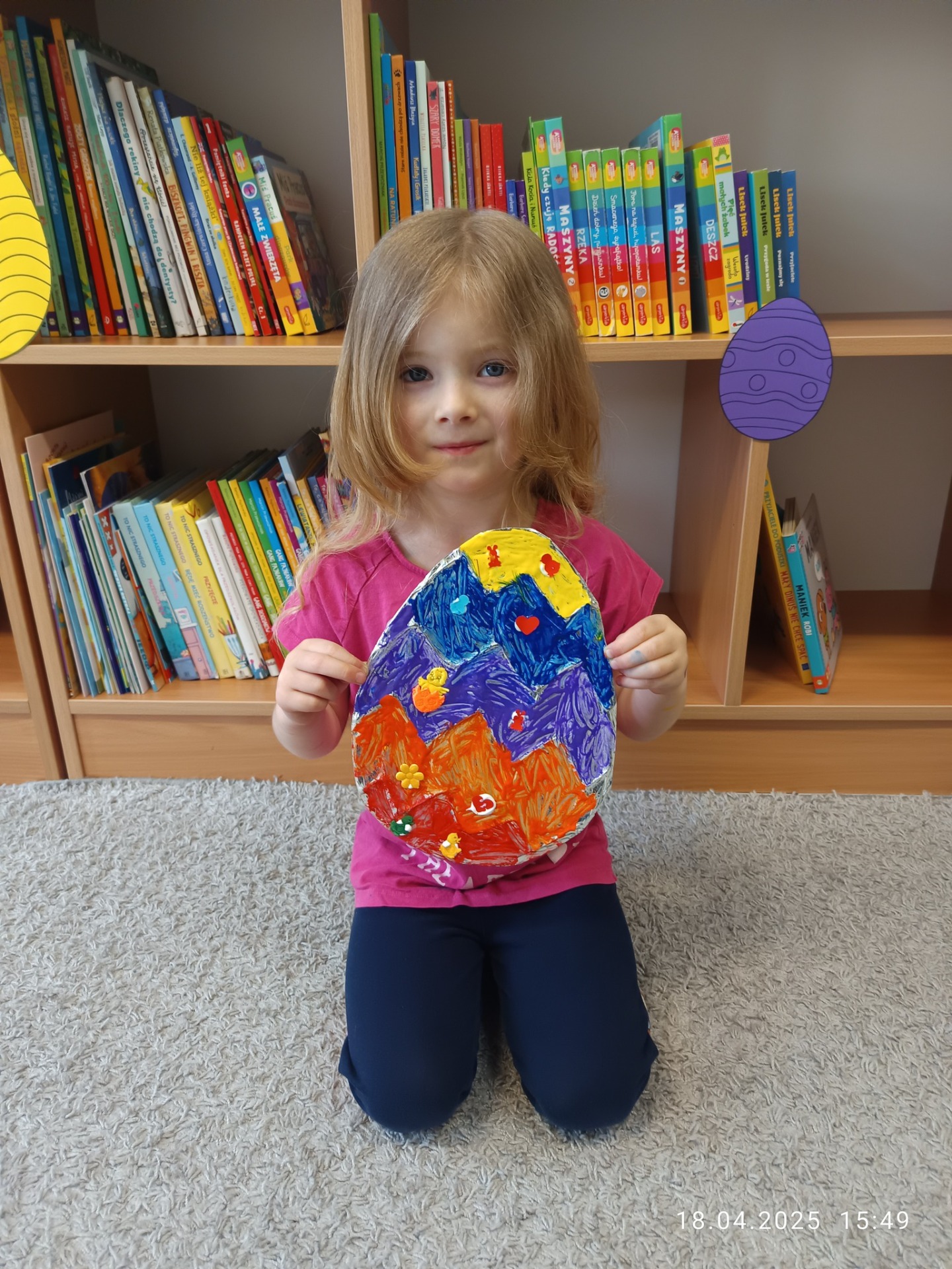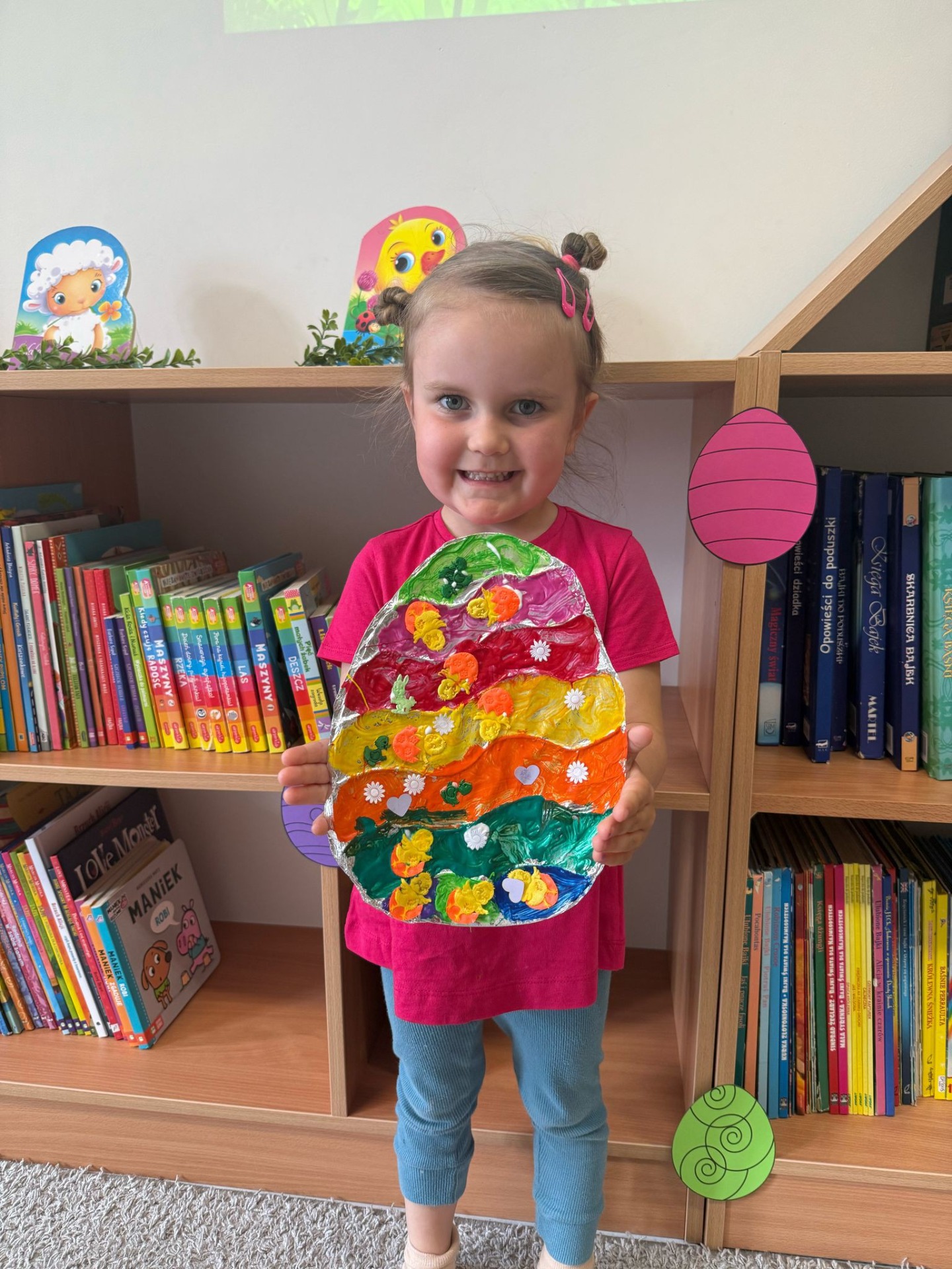 Podczas dzisiejszych przedświątecznych zajęć Bibliotecznego Klubu Dziecięcego uczestnicy wysłuchali kolejnej bajki Urszuli Kozłowskiej, pt. ,,Wielkanocna pisanka". To urocza książeczka, która wprowadza najmłodszych czytelników w nastrój Świat Wielkanocnych. Nie zabrakło spotkania z Zajączkiem Wielkanocnym