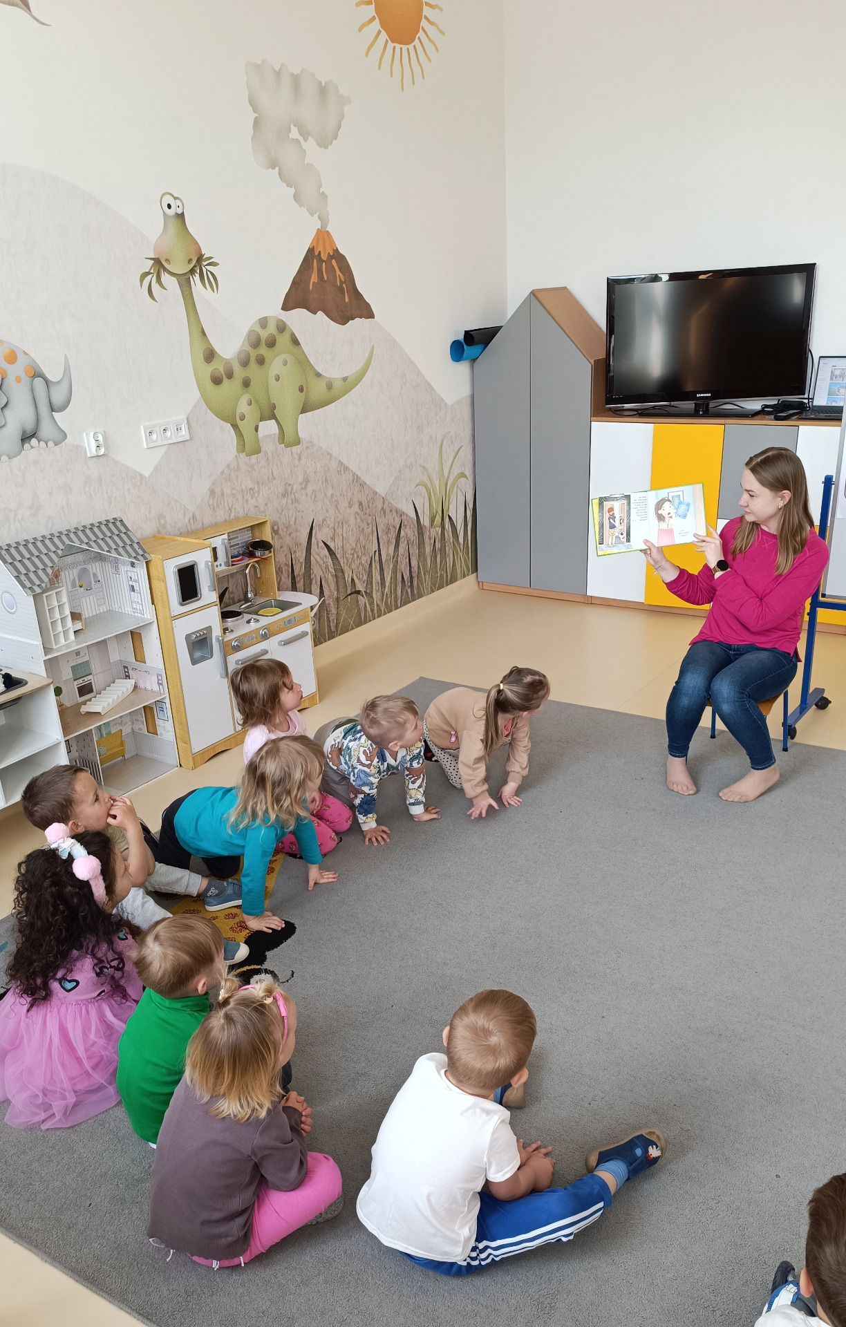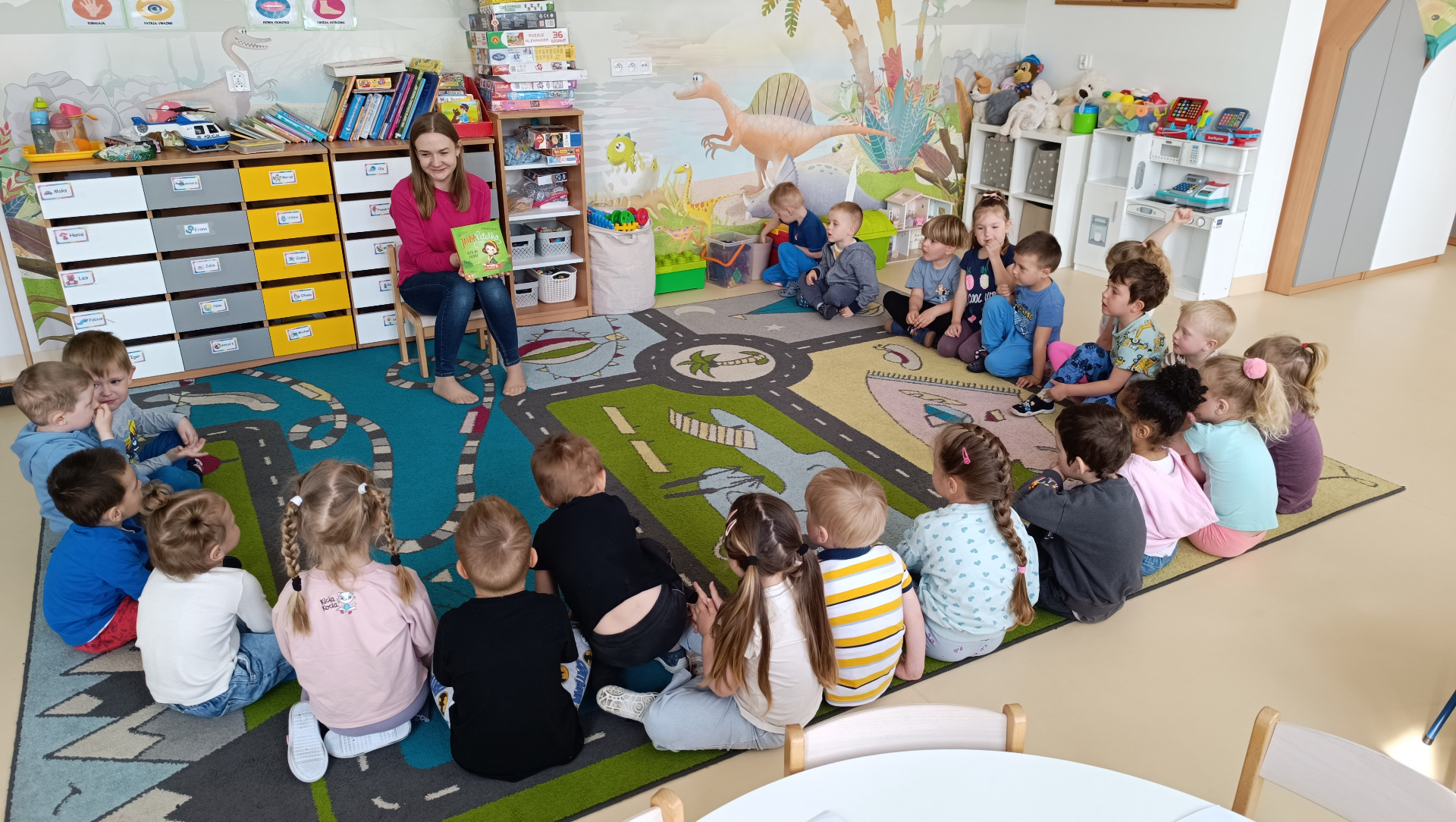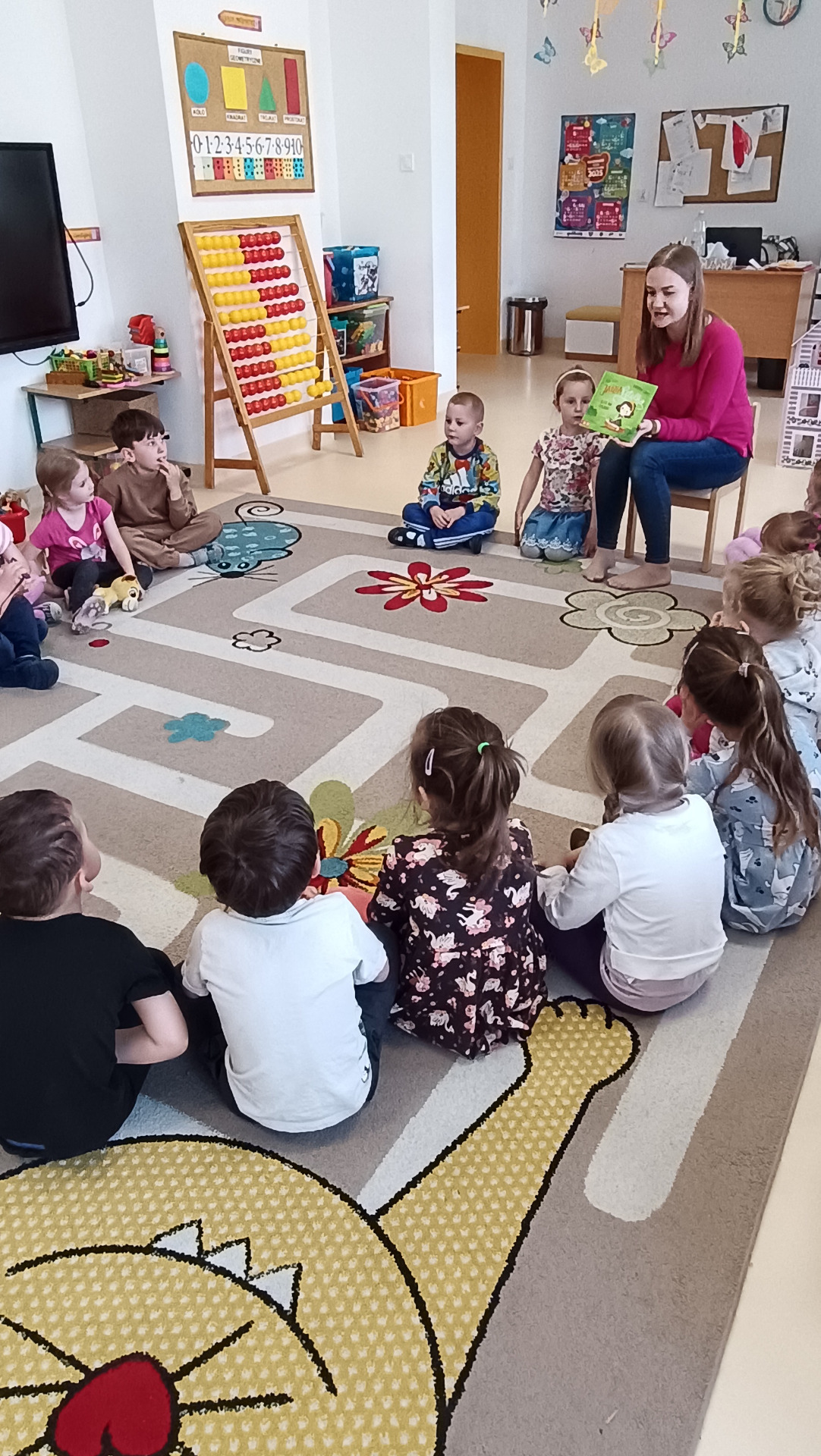 "Poranki-Czytanki" w grupie "Sówek", "Myszek" i "Motylków" z Przedszkola "Leśne Skrzaty" w Bobolicach.