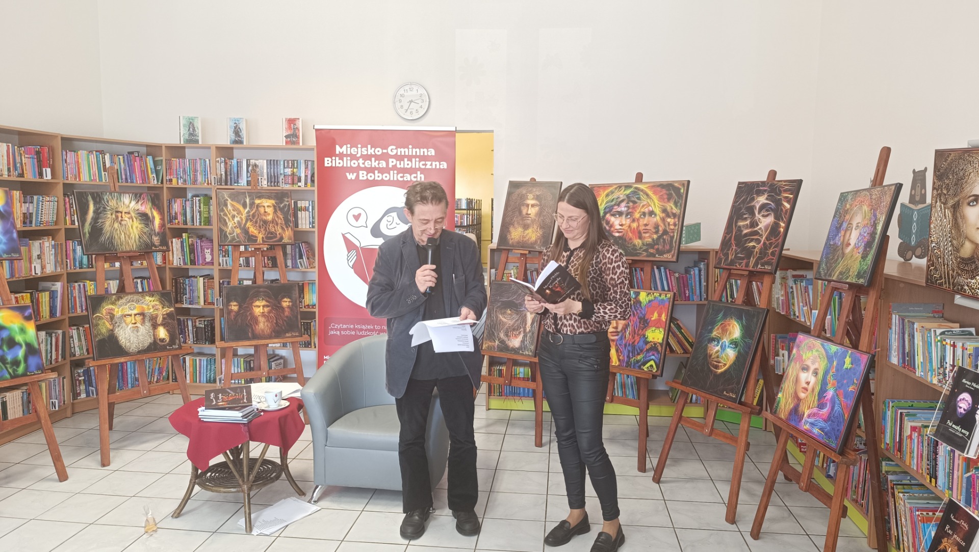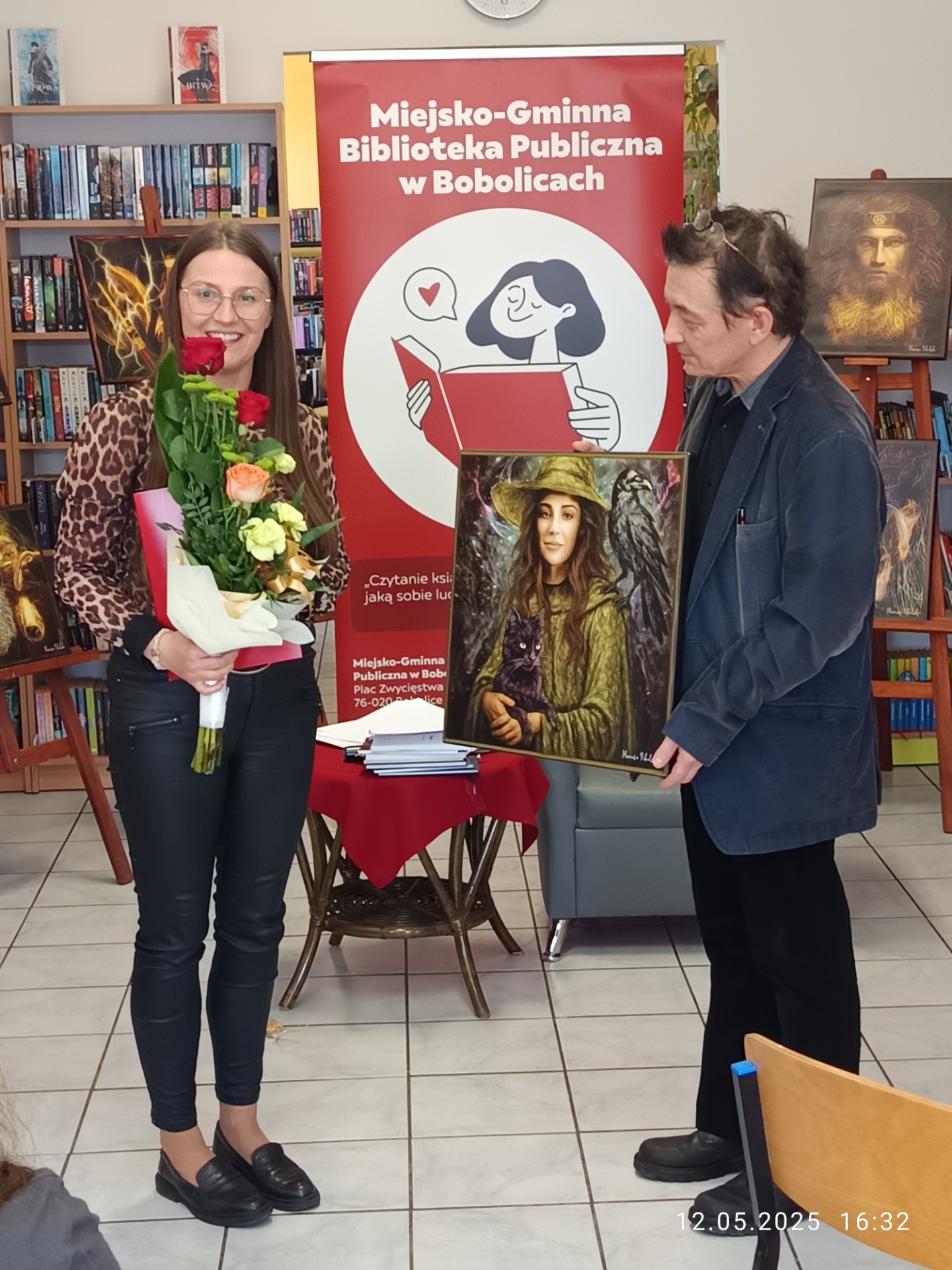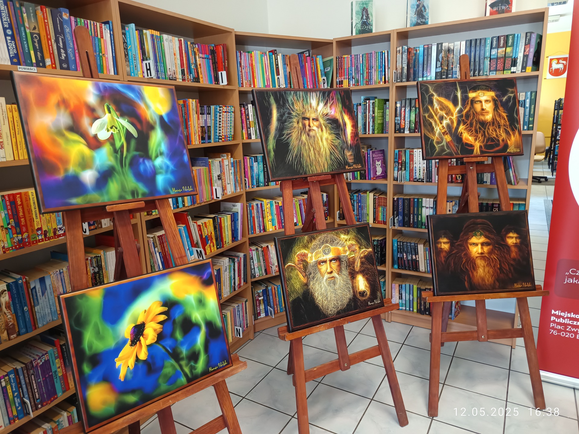 Dodatkowo, do końca tygodnia w bibliotece można podziwiać wystawę prac Mariusza Pikulskiego, prezentującą jego dorobek artystyczny. Zapraszamy! 🙂