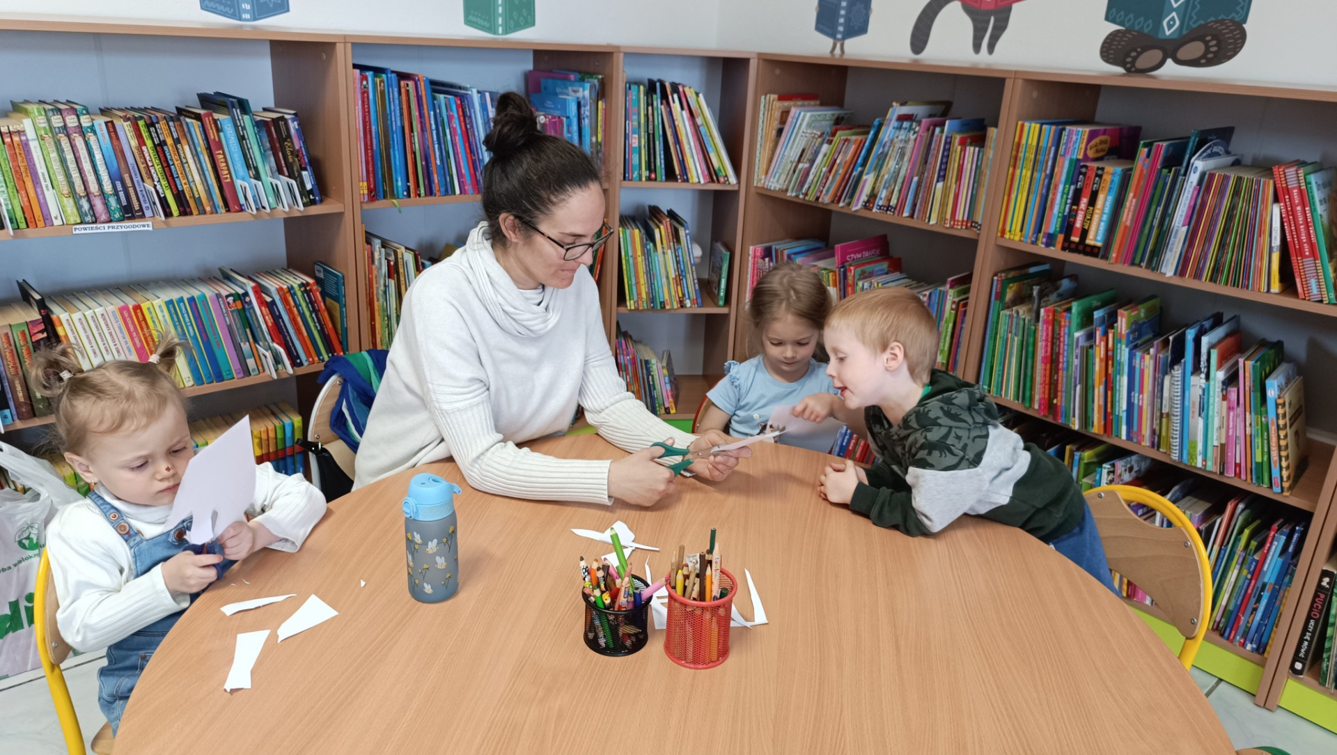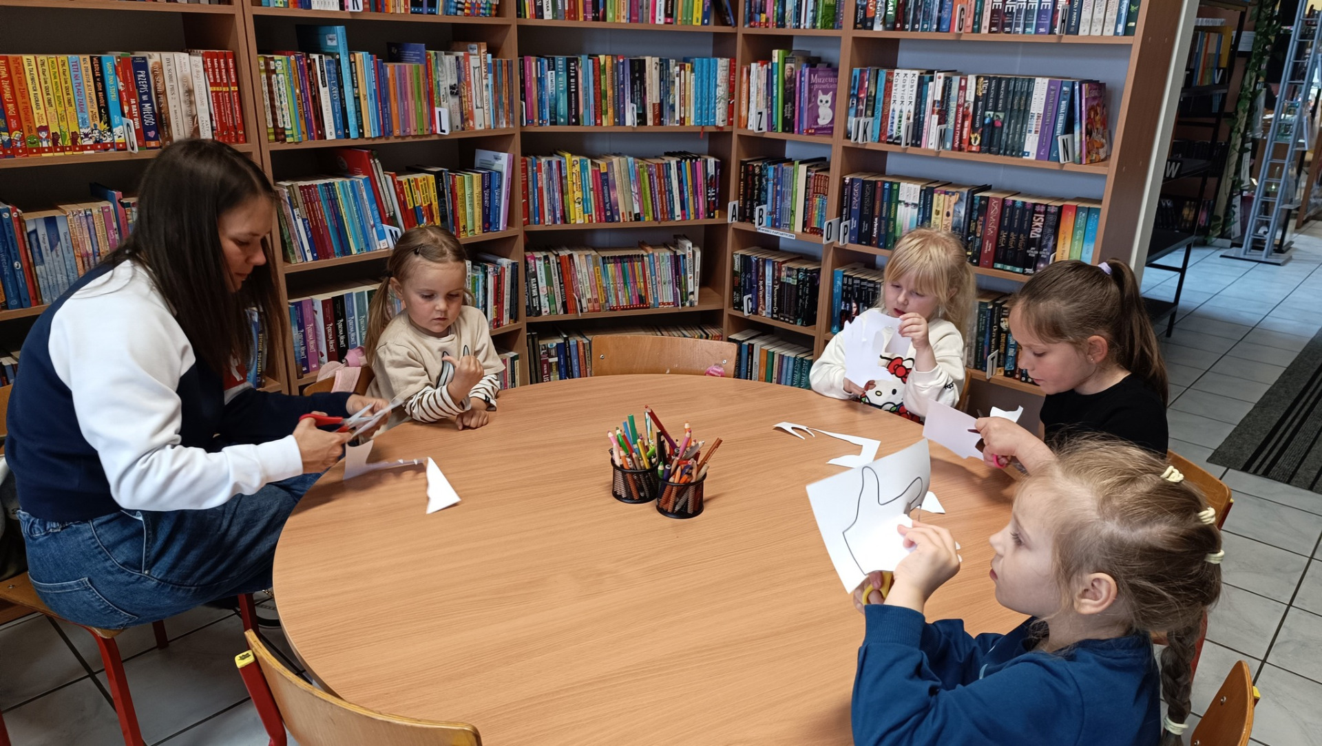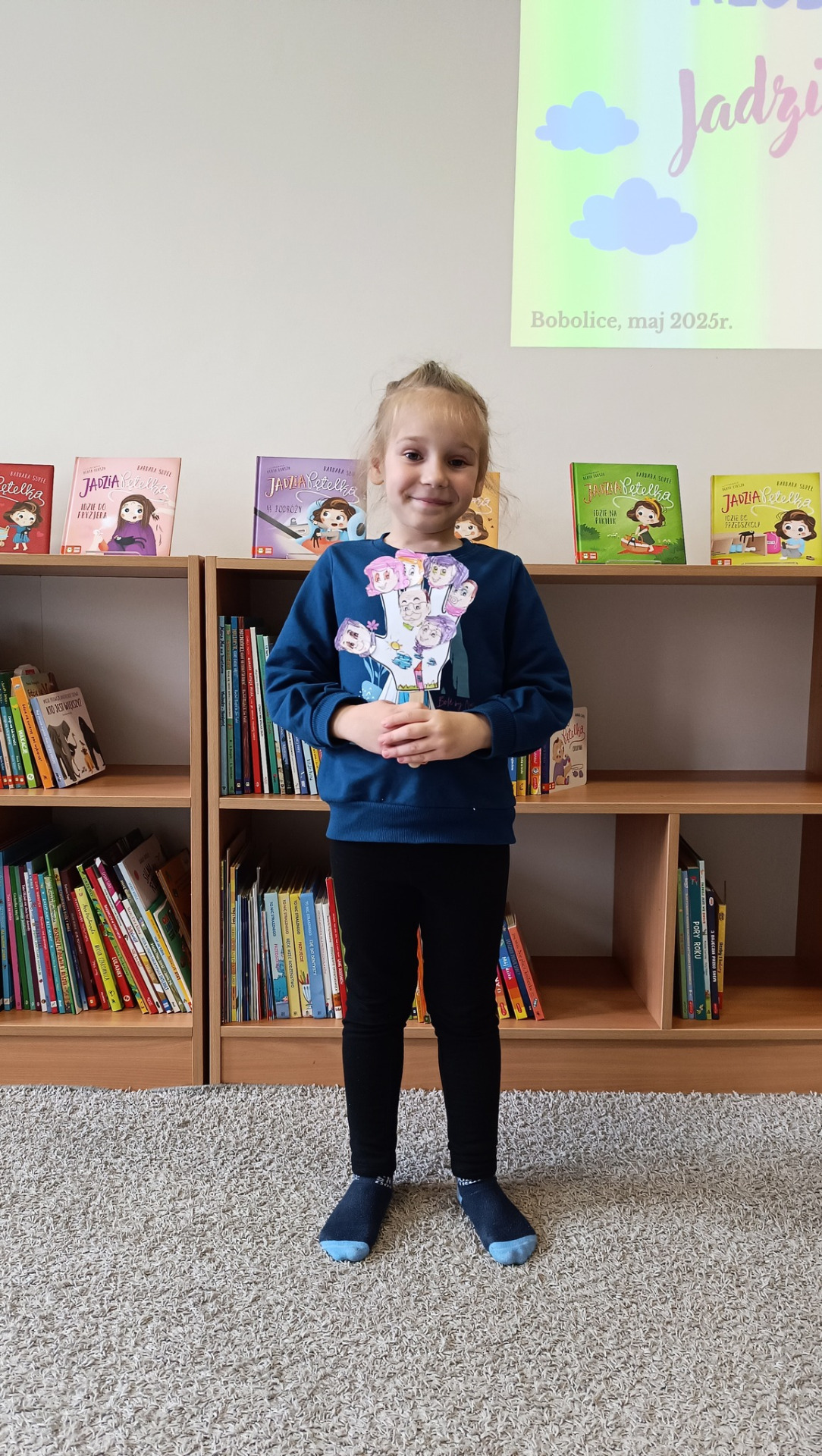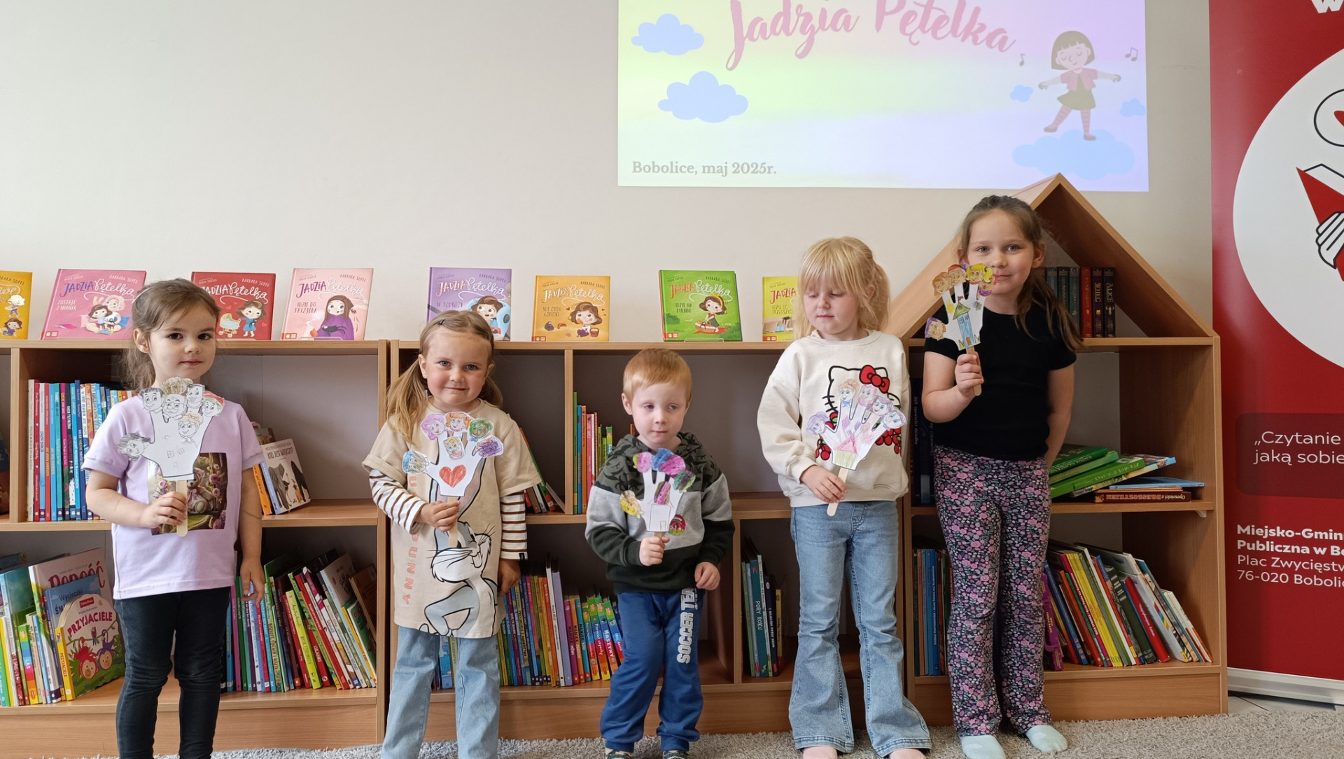 Na dzisiejszym spotkaniu Bibliotecznego Klubu Dziecięcego mali uczestnicy wyruszyli razem z Jadzią Pętelką na piknik! Dzieci z zaciekawieniem wysłuchały przygód sympatycznej bohaterki z książki „Jadzia Pętelka idzie na piknik”, a lektura stała się wspaniałym wstępem do dalszej zabawy.
