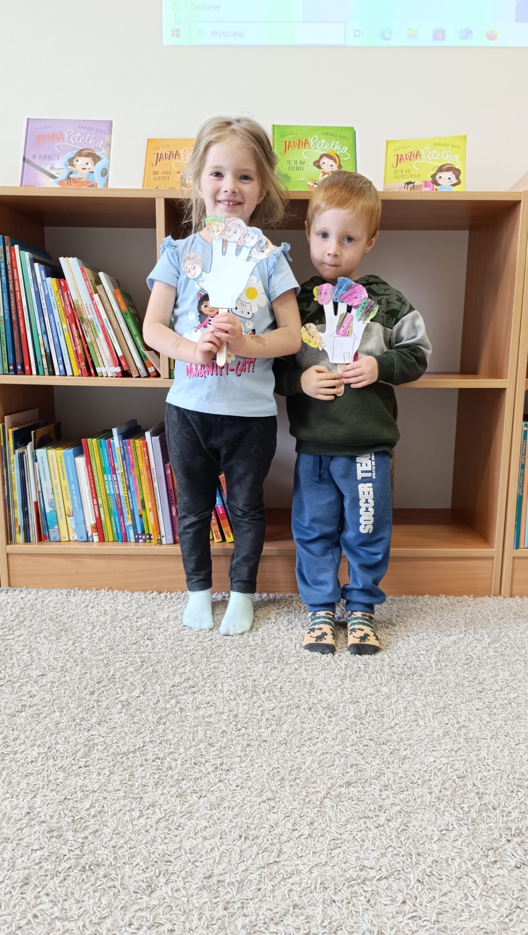 Na zakończenie spotkania dzieci wykonały wyjątkową pracę plastyczną –dłonie, na których pojawili się członkowie paluszkowej rodziny. Prace były pełne barw i dziecięcej kreatywności.