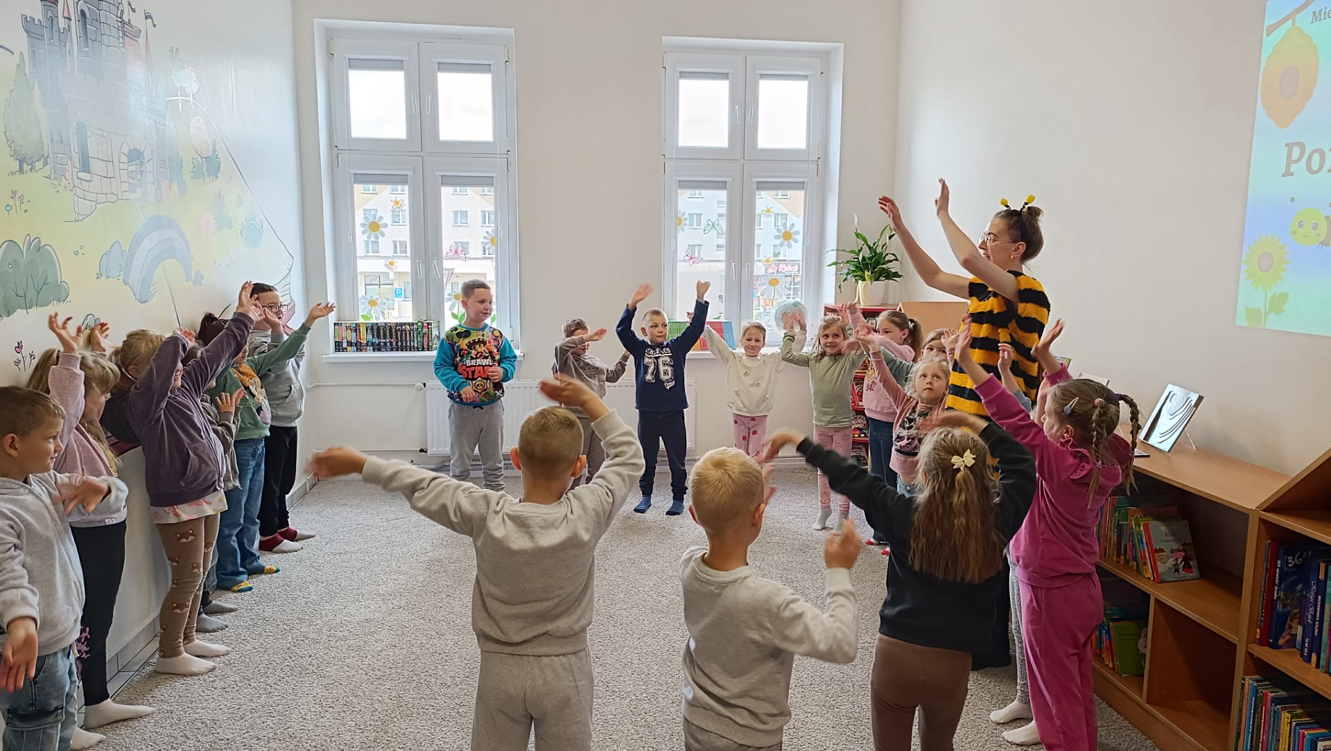 Po czytaniu był czas na zabawę - tańczyliśmy do piosenki ,,Pszczółka Maja".