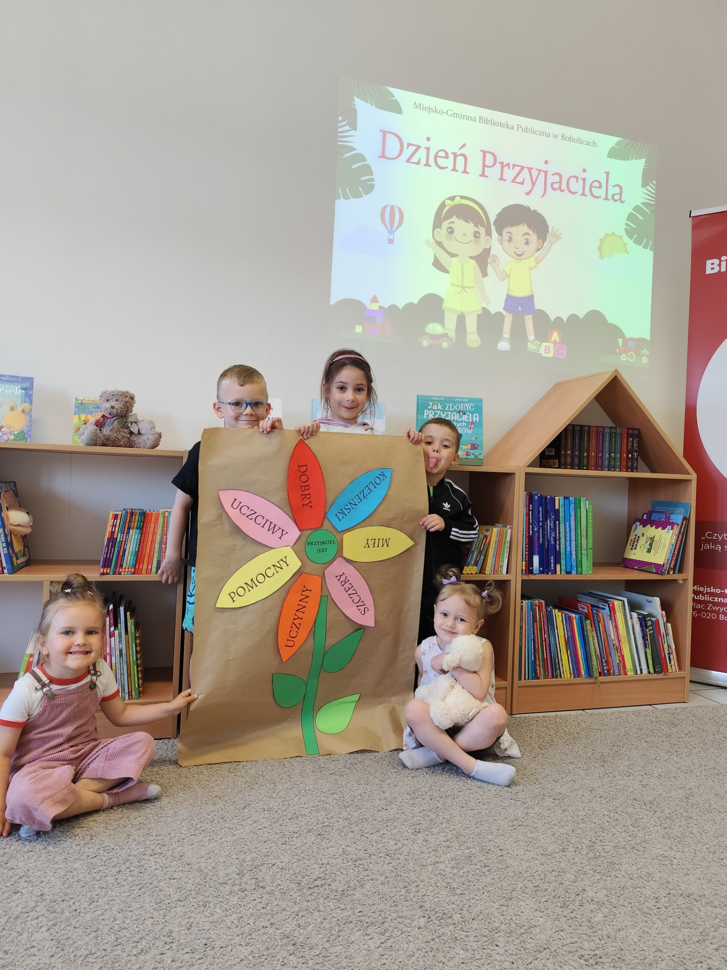 Następnie dzieci wyruszyły na poszukiwania płatków z kwiatka, na których zapisane były cechy dobrego przyjaciela. Każdy znalazł coś wyjątkowego, co składa się na prawdziwą przyjaźń.