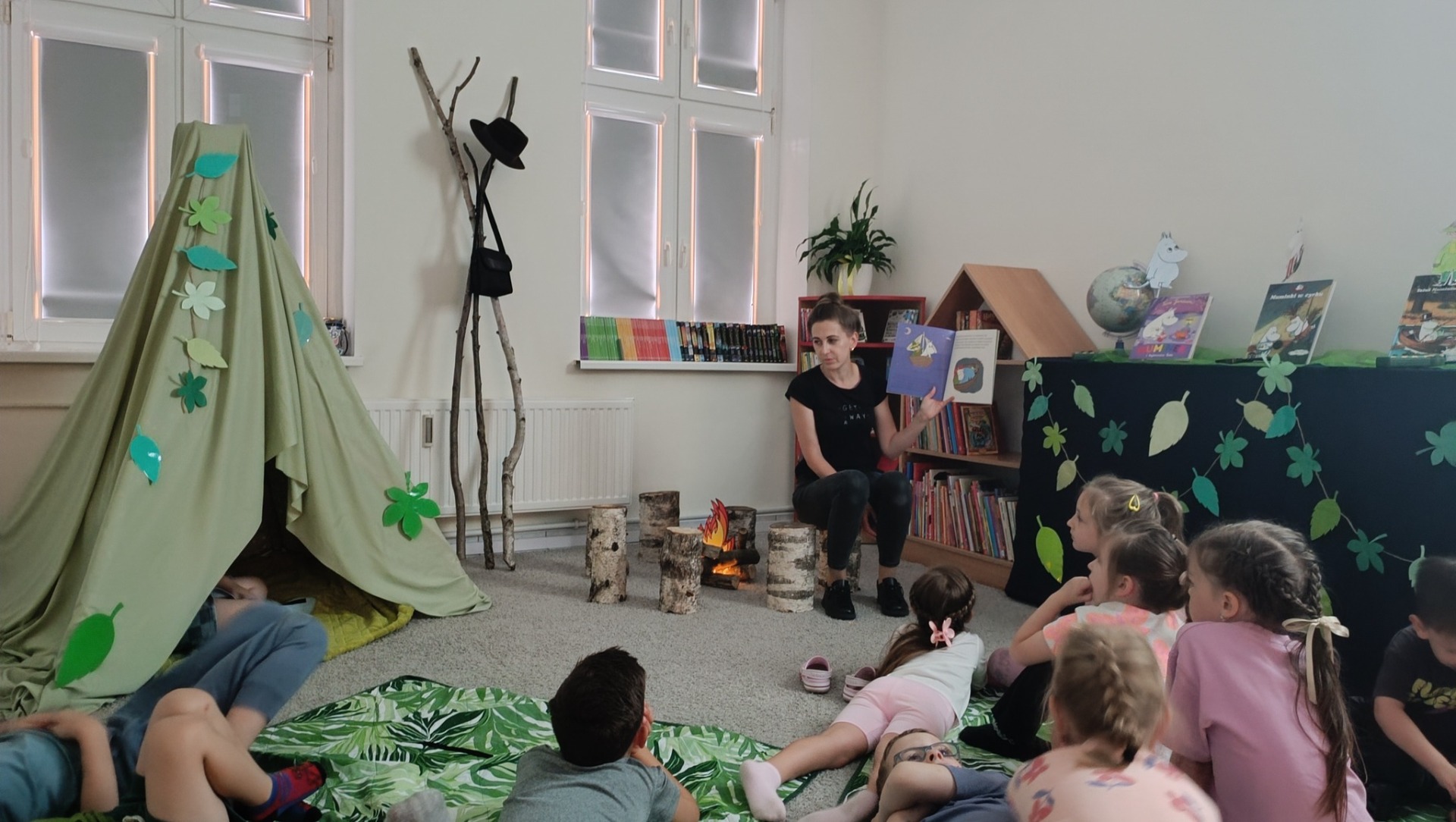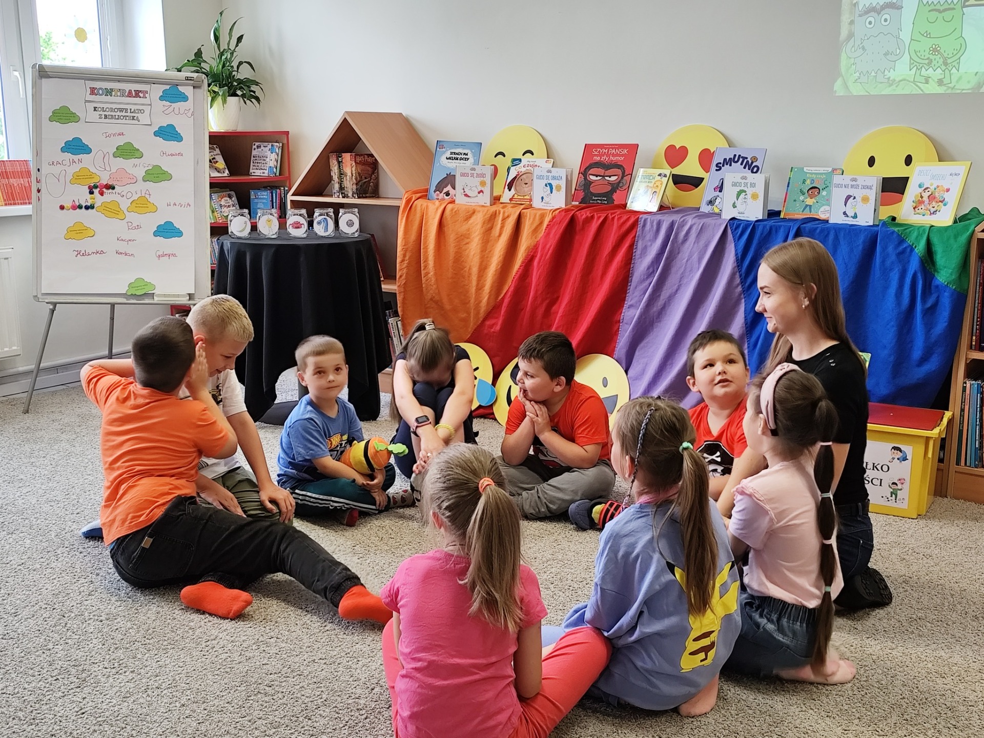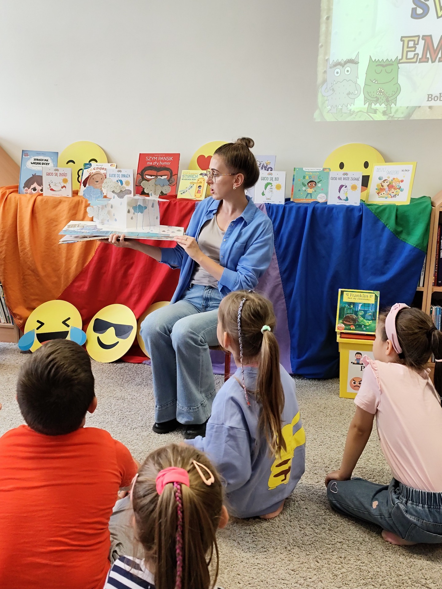 Podczas spotkań dzieci poznawały świat literatury poprzez bajki, teatrzyk Kamishibai, zabawy edukacyjne i gry biblioteczne. Nie zabrakło zajęć tematycznych – obchodziliśmy m.in. Dzień Rekina, Dzień Lodów, Dzień Policjanta, Dzień Arbuza czy Dzień Przyjaciela. Każde spotkanie było okazją do nauki poprzez zabawę – dzieci wykonywały prace plastyczne, uczestniczyły w warsztatach manualnych, odkrywały tajemnice książek i rozwijały swoją wyobraźnię.