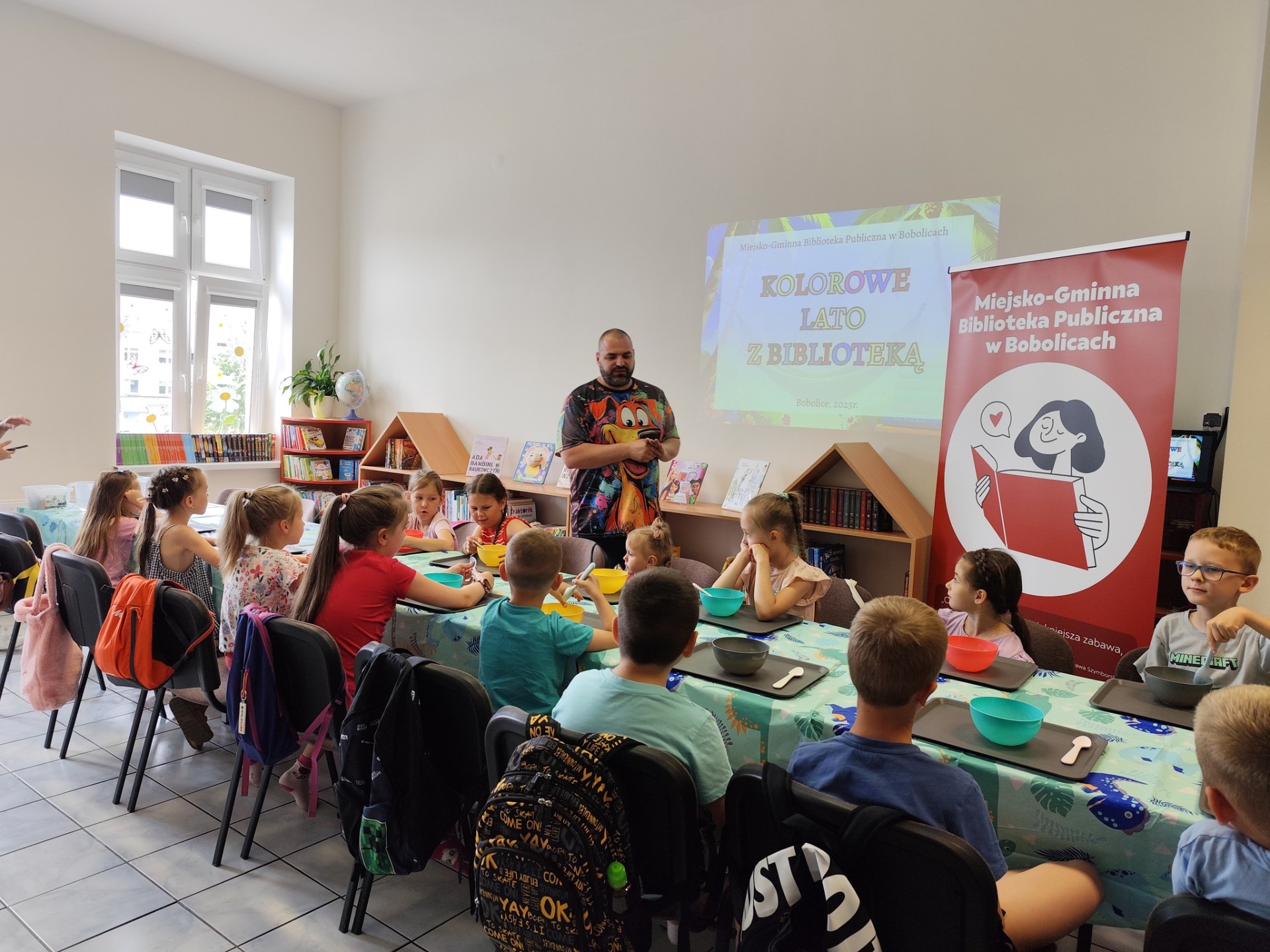 W tym roku nasza biblioteka po raz kolejny zaprosiła dzieci do wspólnej, wakacyjnej przygody w ramach akcji „Kolorowe Lato z Biblioteką 2025”. Od 14 lipca do 8 sierpnia mali uczestnicy mogli wziąć udział w różnorodnych zajęciach pełnych kreatywności, ruchu i edukacji.