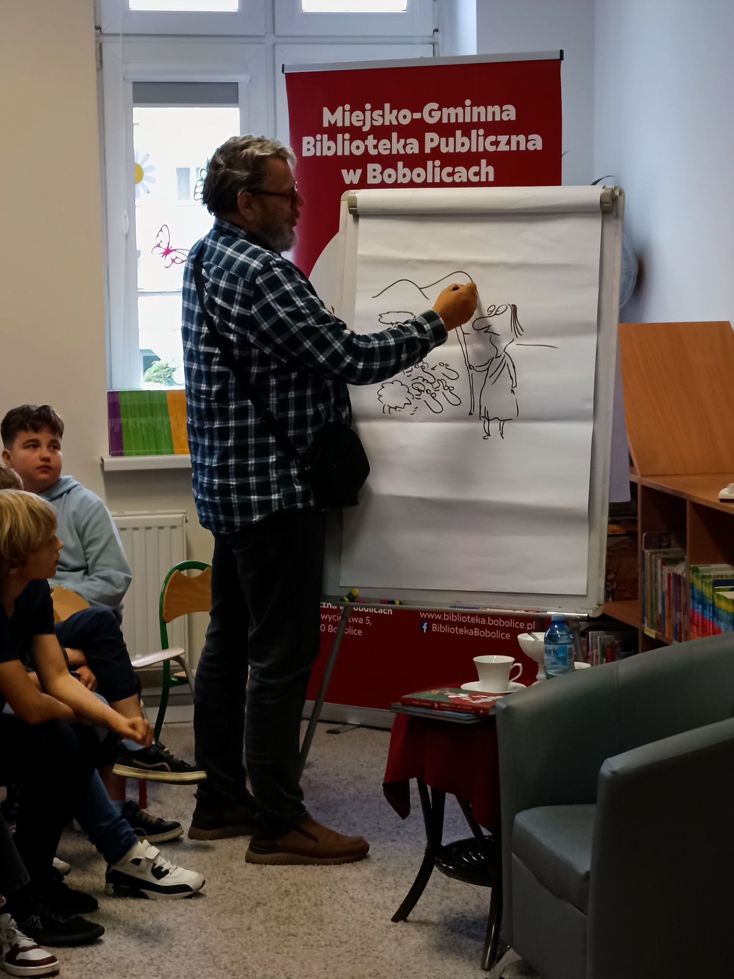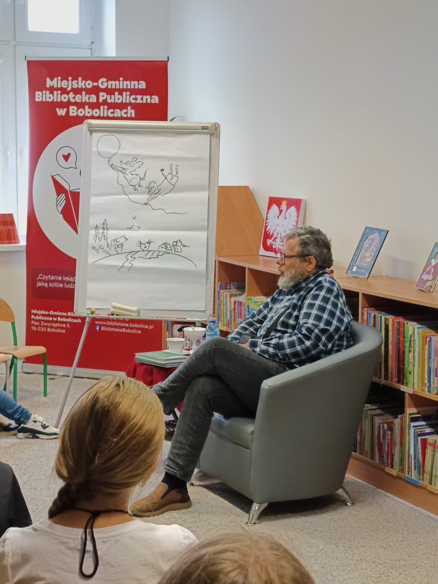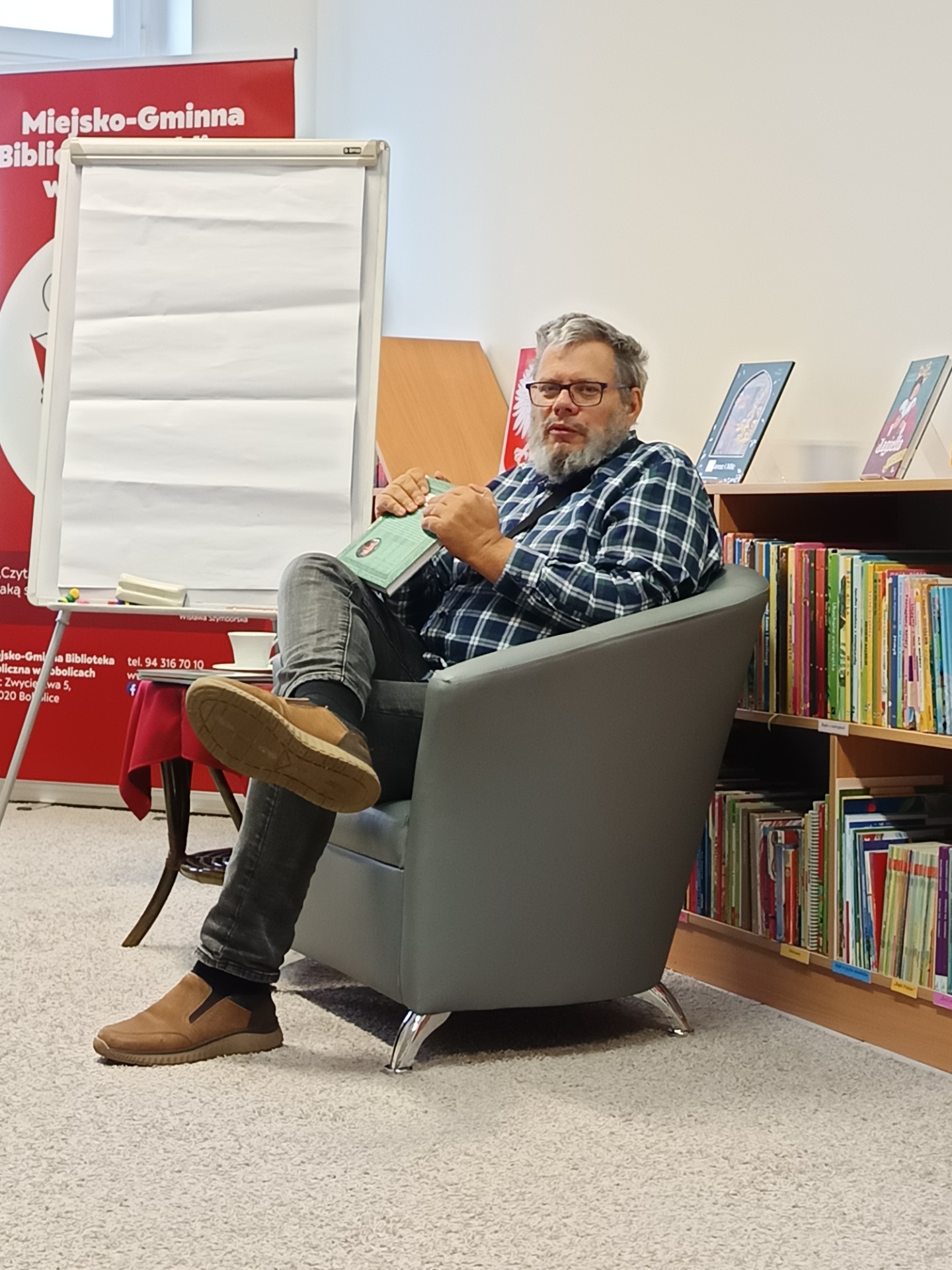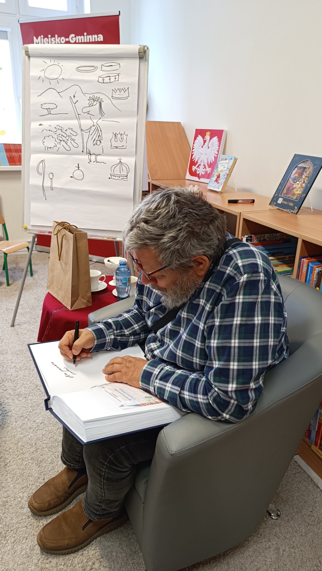 Podczas spotkania autor opowiadał o kulisach swojej twórczości, inspiracjach literackich oraz o tym, jak wygląda proces powstawania książki – od pierwszego pomysłu po gotowe wydanie z ilustracjami.