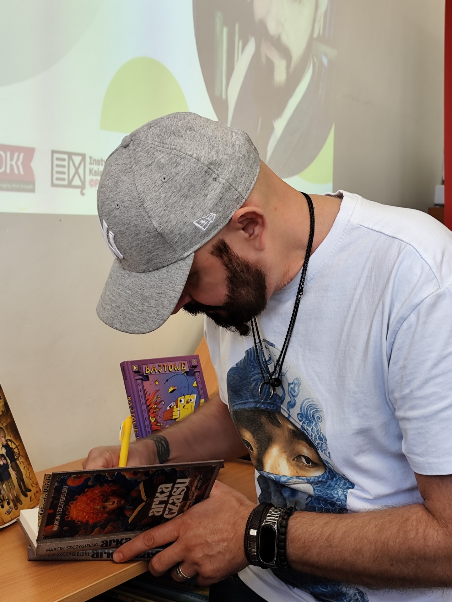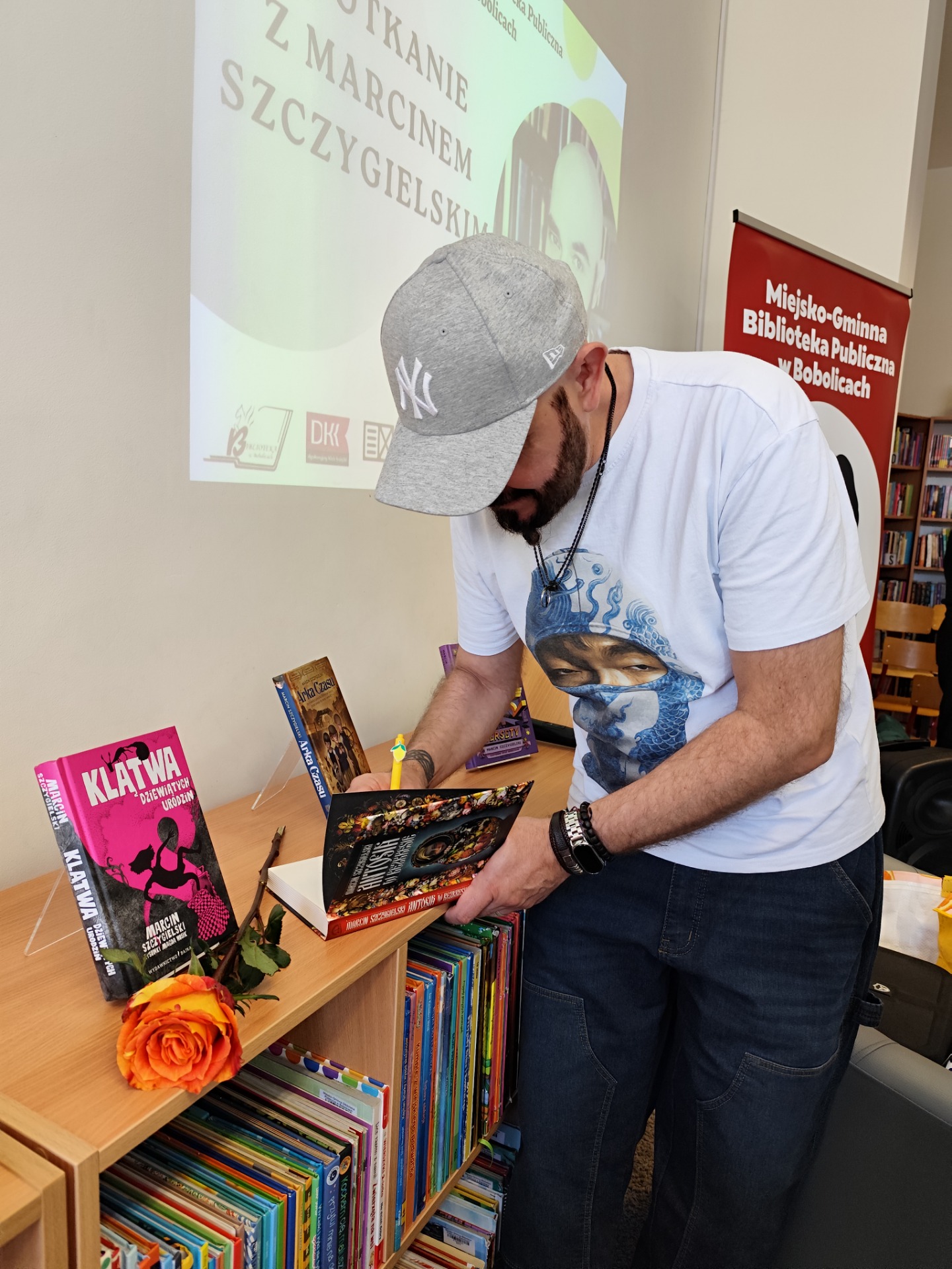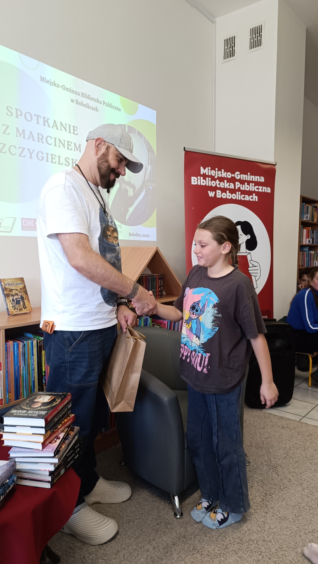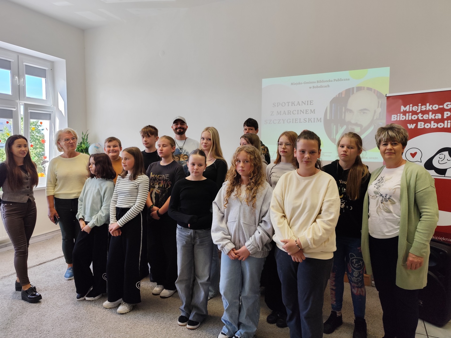 W dniu dzisiejszym odbyło się wyjątkowe spotkanie autorskie z Marcinem Szczygielskim – cenionym pisarzem, dramaturgiem i autorem wielokrotnie nagradzanych książek dla dzieci, młodzieży oraz dorosłych.