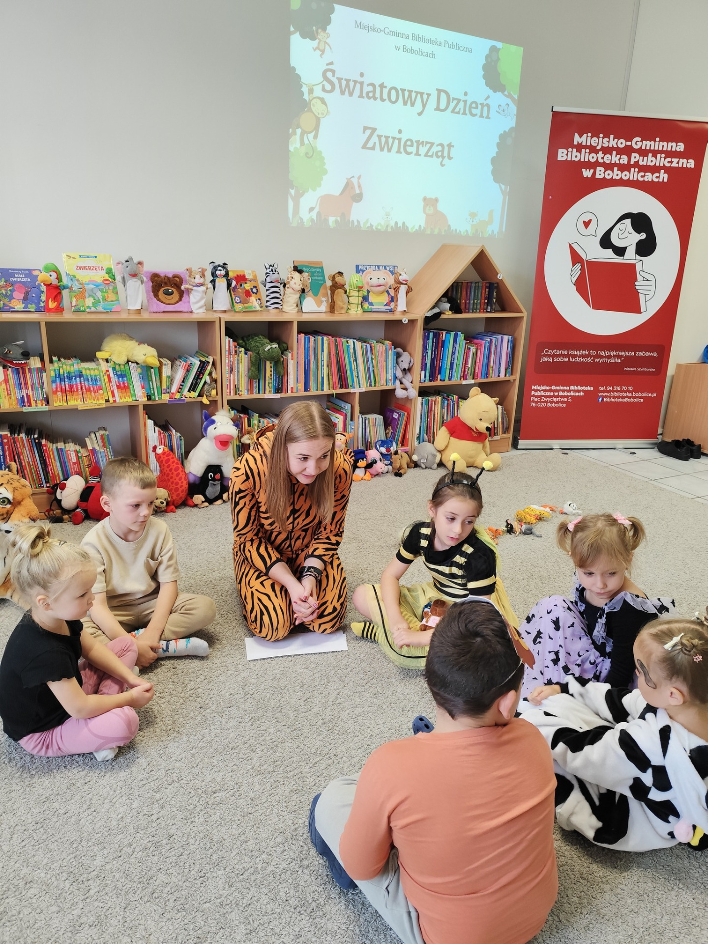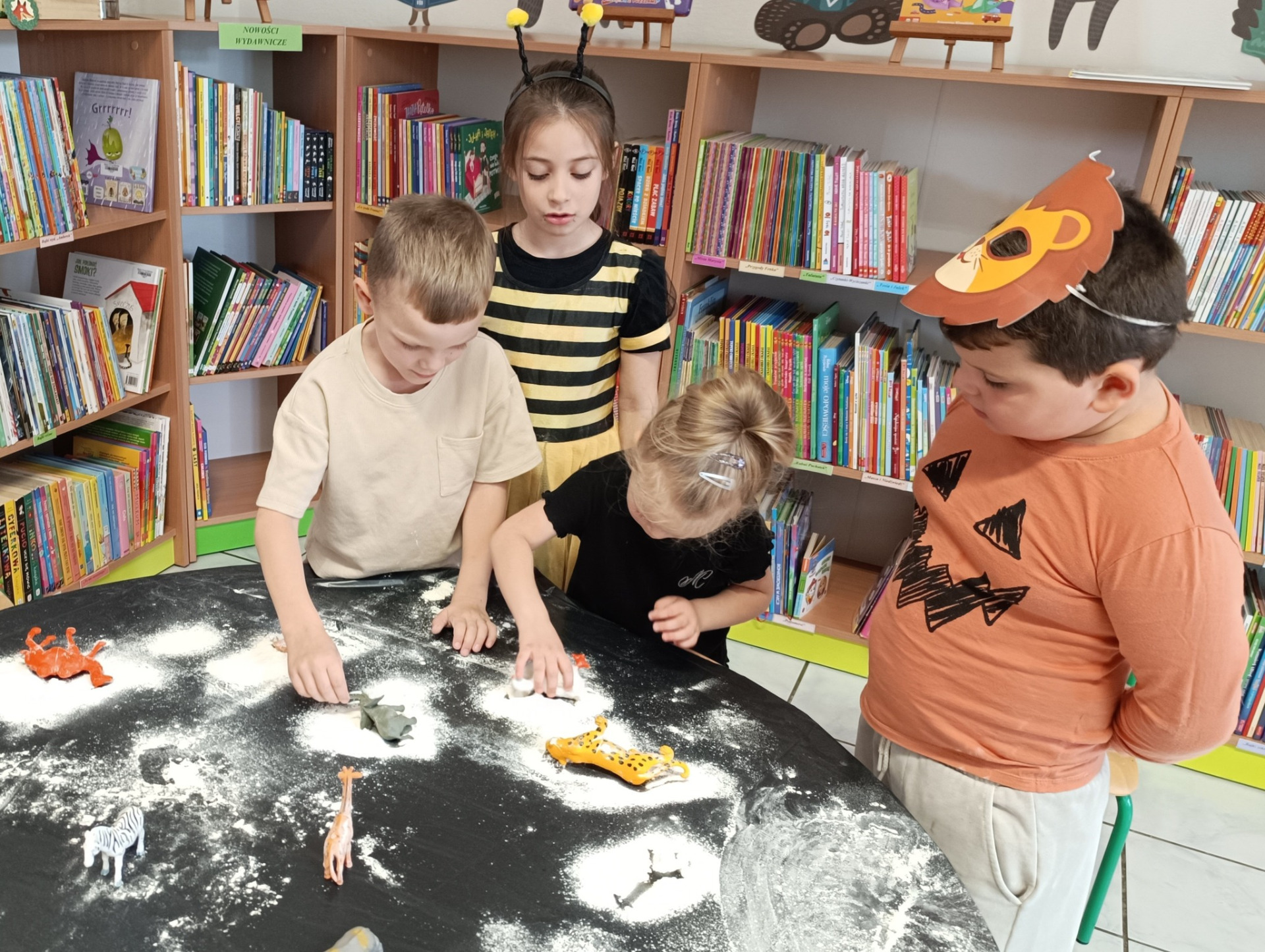 Światowy Dzień Zwierząt w naszej bibliotece! Podczas sobotniego spotkania dzieci wysłuchały opowiadania „Tycia Kicia i głośni sąsiedzi”, a następnie wzięły udział w wielu wesołych zabawach . Segregowały zwierzątka według miejsca ich zamieszkania, karmiły pieska, łapały muchy dla żabki, poznawały zwierzęta wykluwające się z jajek oraz bawiły się w „spadające małpki”!