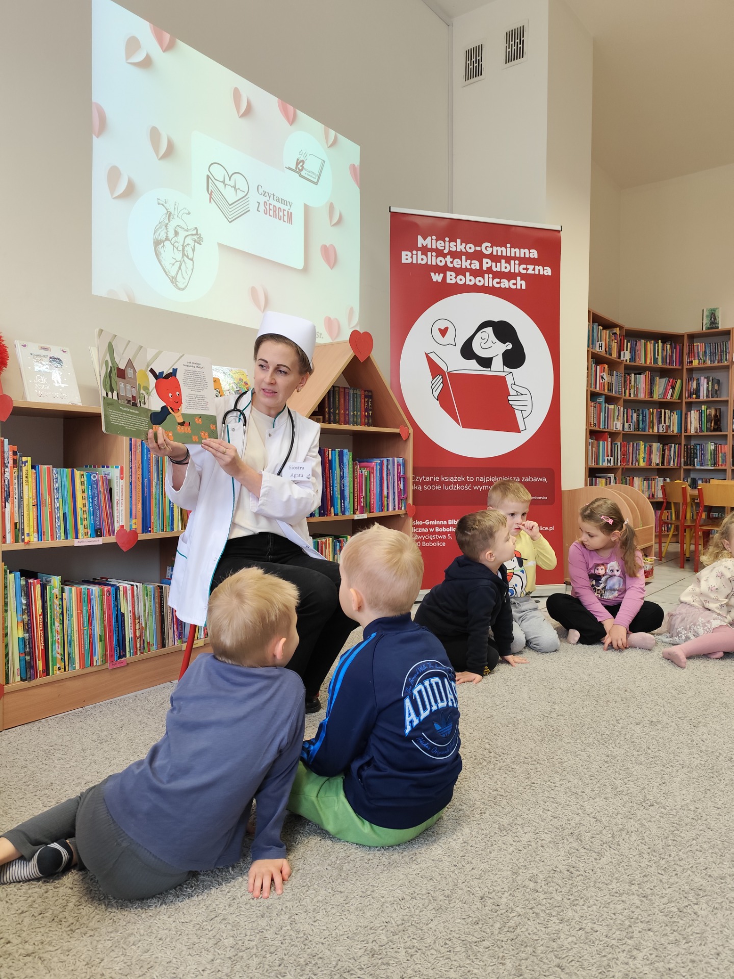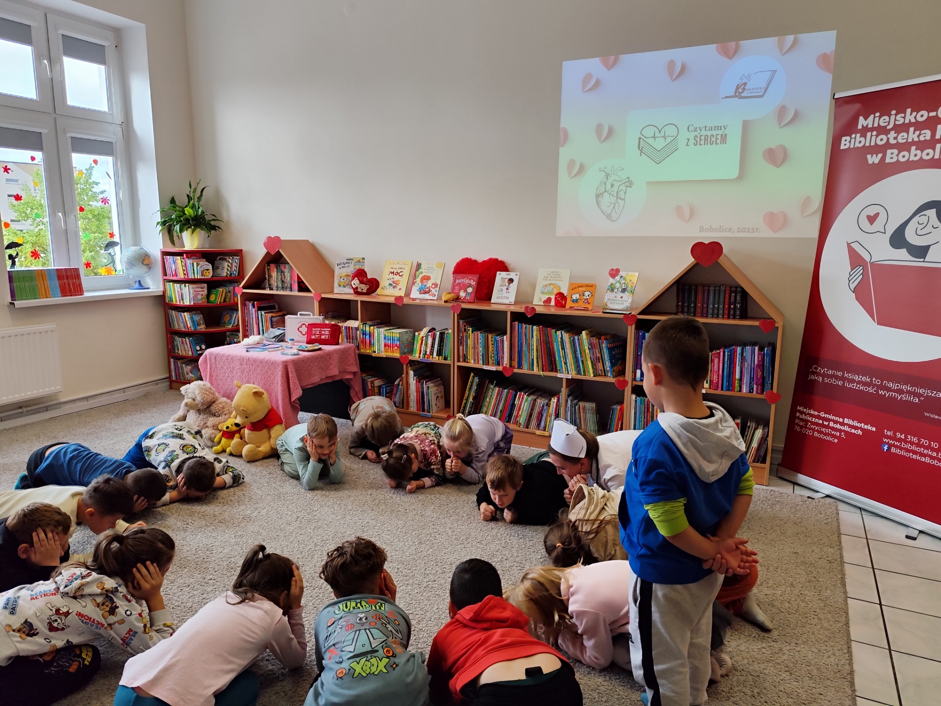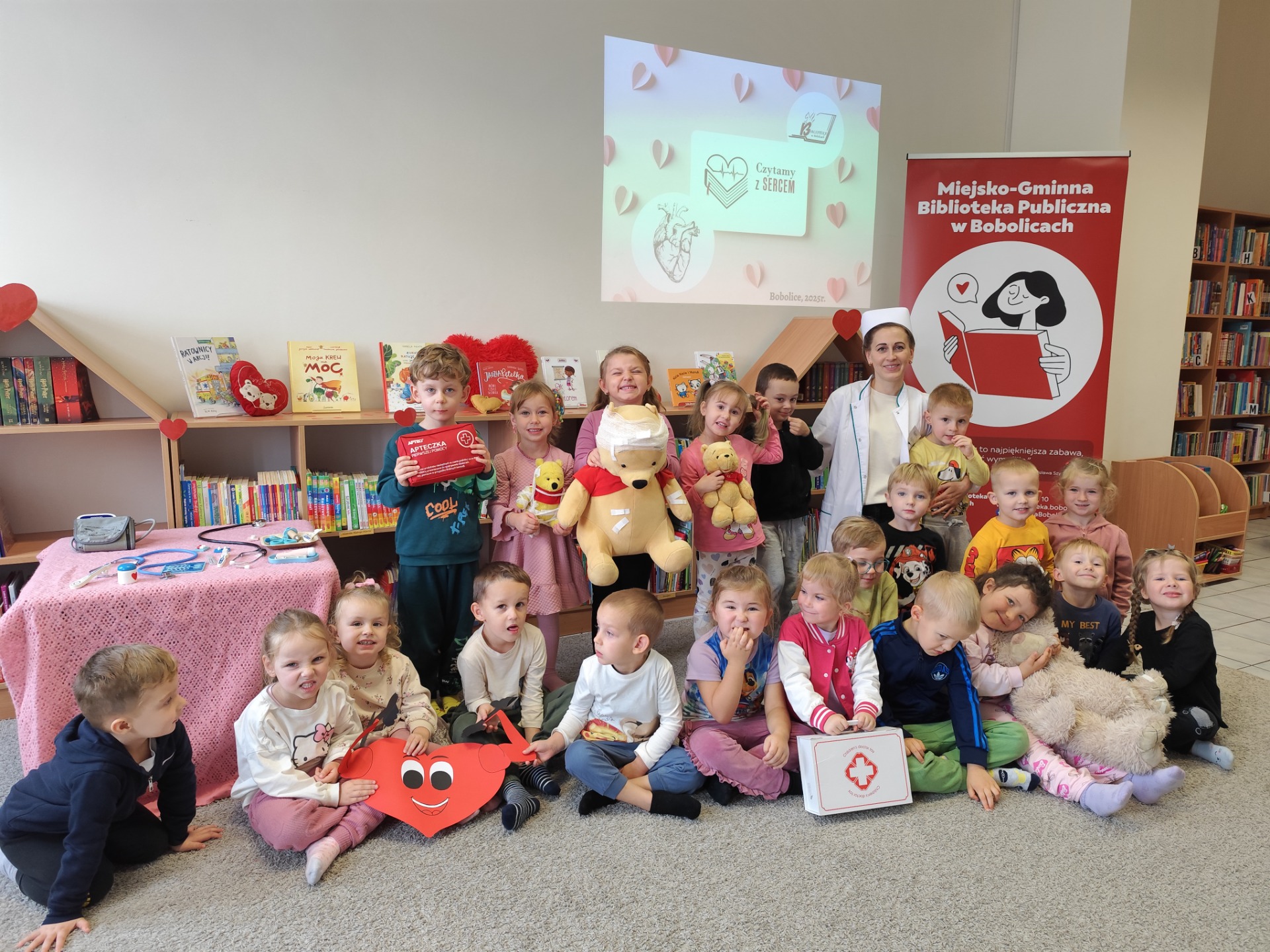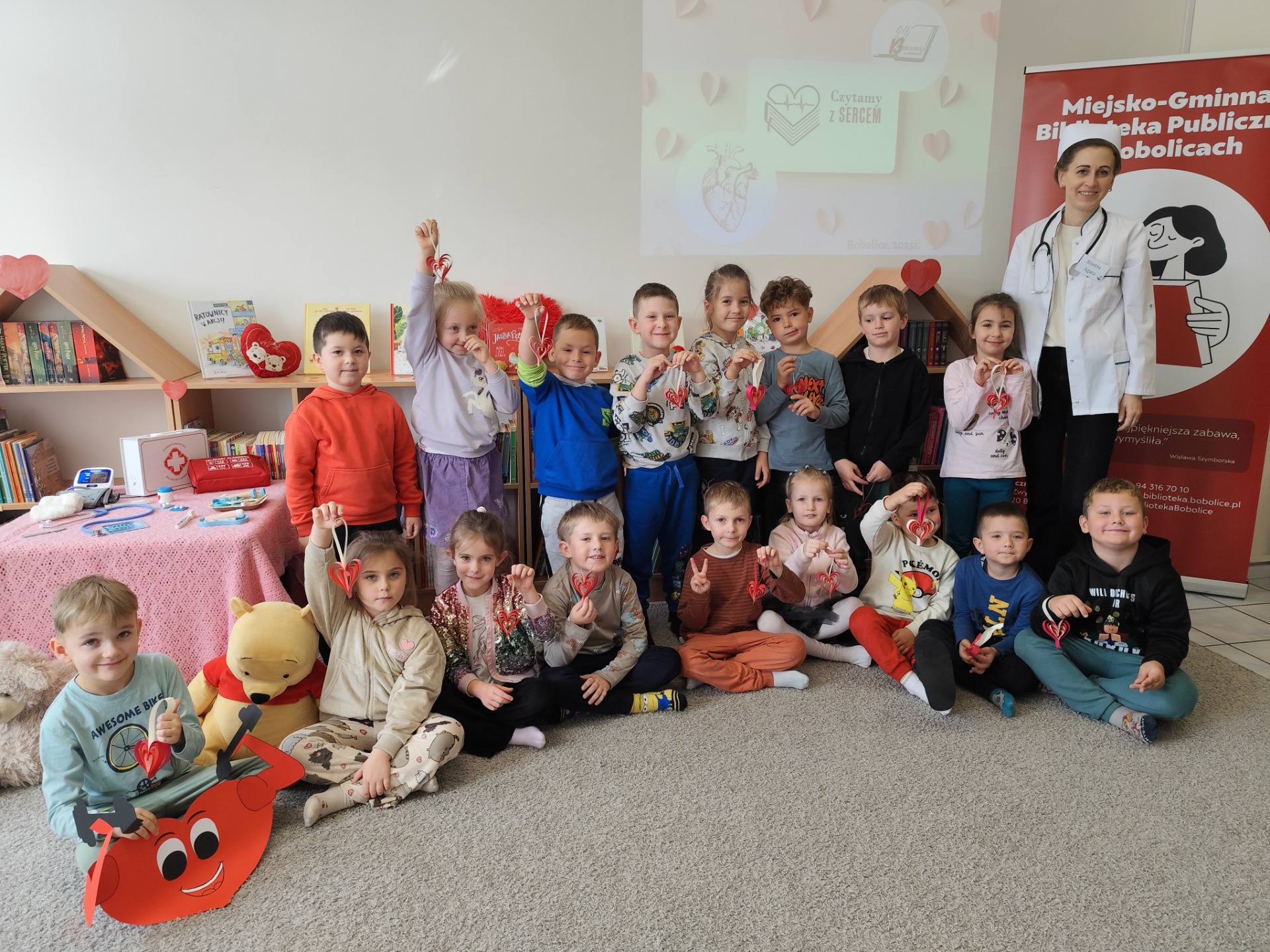 W dniu dzisiejszym odwiedziły nas "Sówki" i "Żabki" z Przedszkole "Leśne Skrzaty" w Bobolicach. Przedszkolaki uczestniczyły w zajęciach edukacyjnych w ramach V edycji Ogólnopolskiej Akcji Edukacyjnej Czytamy z Sercem: