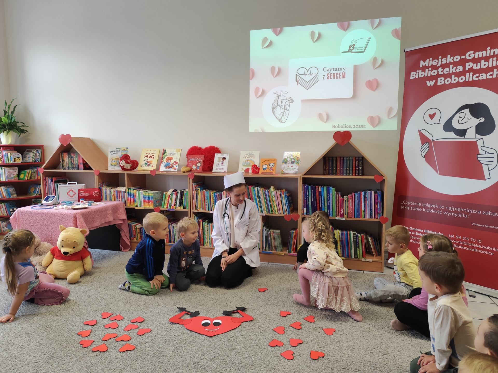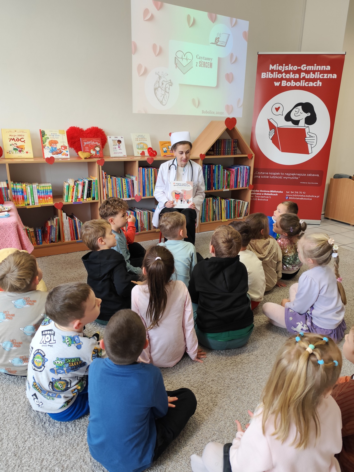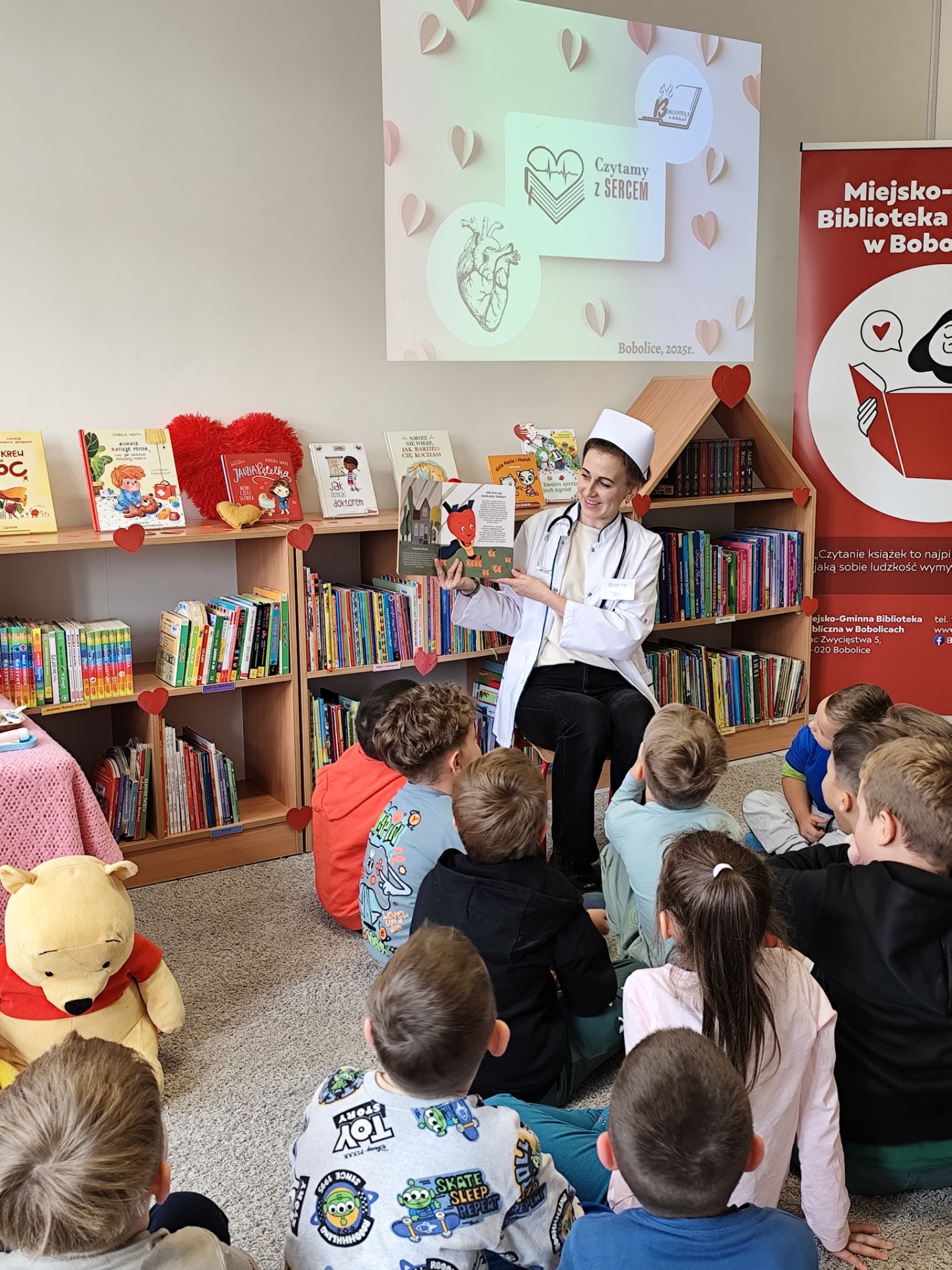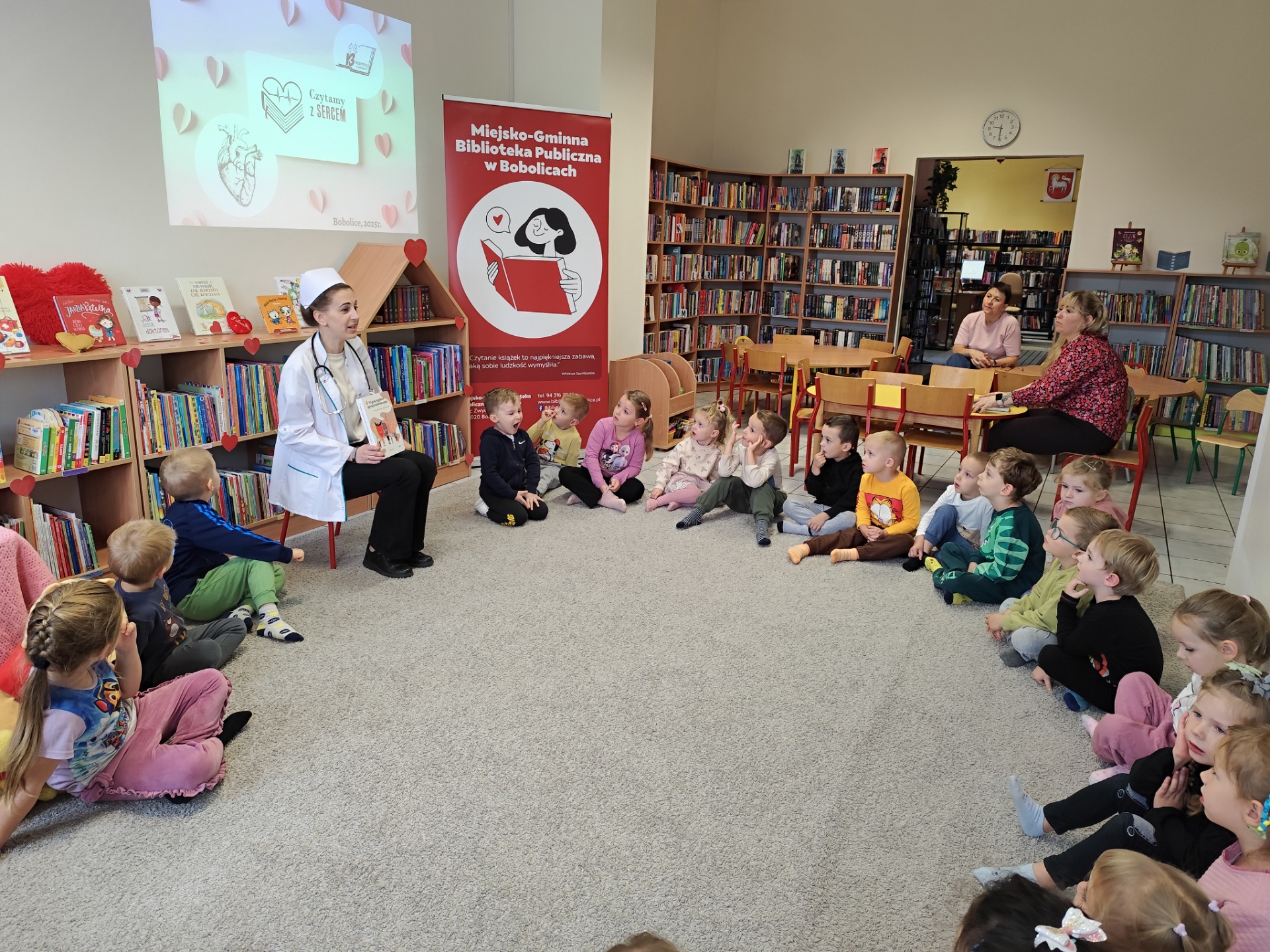 W dniu dzisiejszym odwiedziły nas "Sówki" i "Żabki" z Przedszkole "Leśne Skrzaty" w Bobolicach. Przedszkolaki uczestniczyły w zajęciach edukacyjnych w ramach V edycji Ogólnopolskiej Akcji Edukacyjnej Czytamy z Sercem: