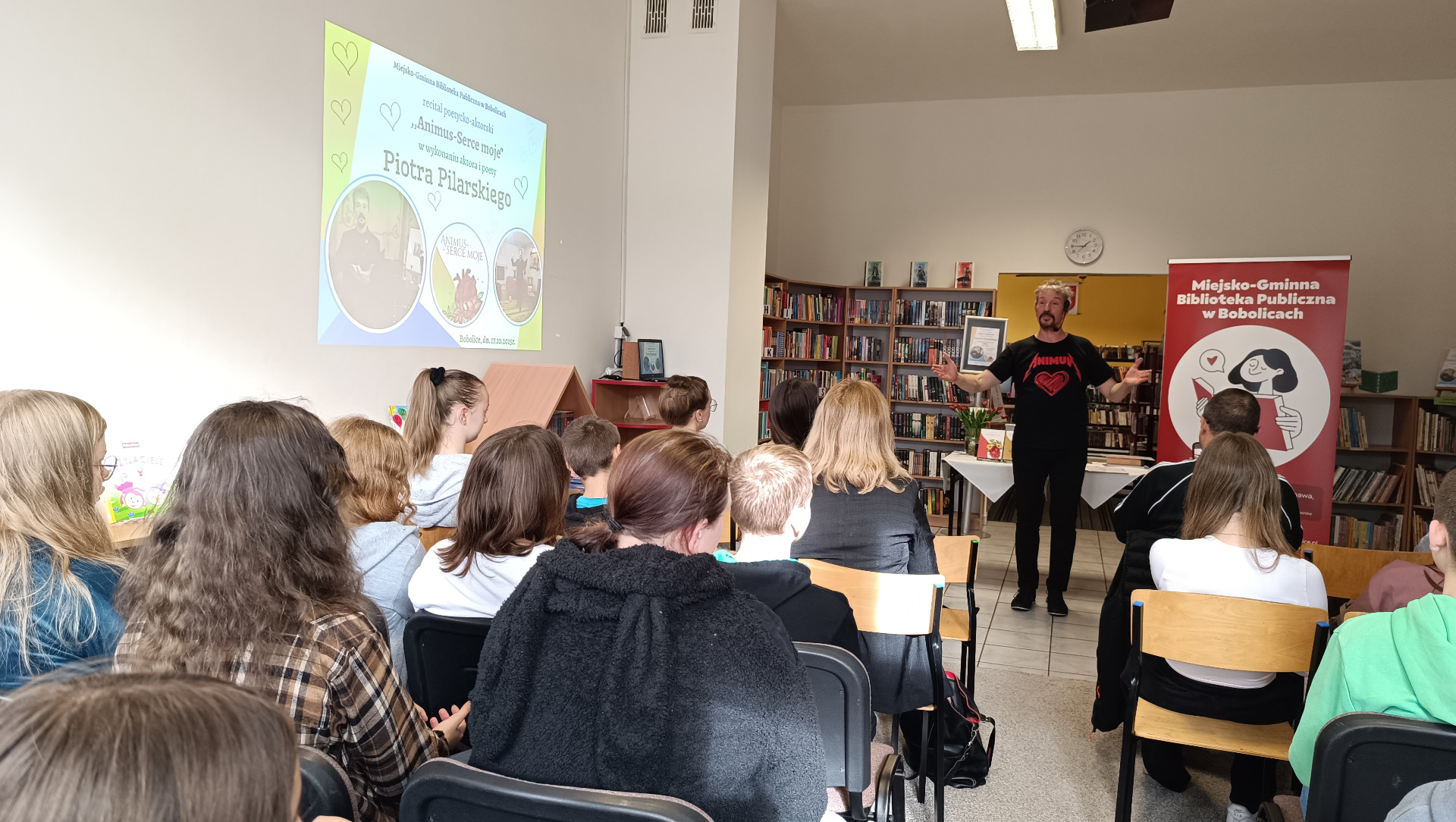 W spotkaniu uczestniczyli uczniowie klas ósmych ze Szkoły Podstawowej im. Henryka Sienkiewicza w Bobolicach, którzy mieli okazję wysłuchać interpretacji wierszy z dwóch tomików autorstwa pana Piotra. Artysta z ogromną wrażliwością i pasją przedstawił swoje utwory, dzieląc się z młodzieżą refleksją nad emocjami, duchowością i miejscem poezji w codziennym życiu.